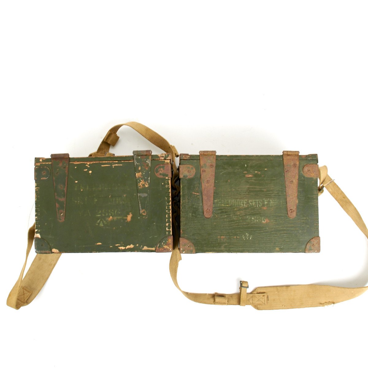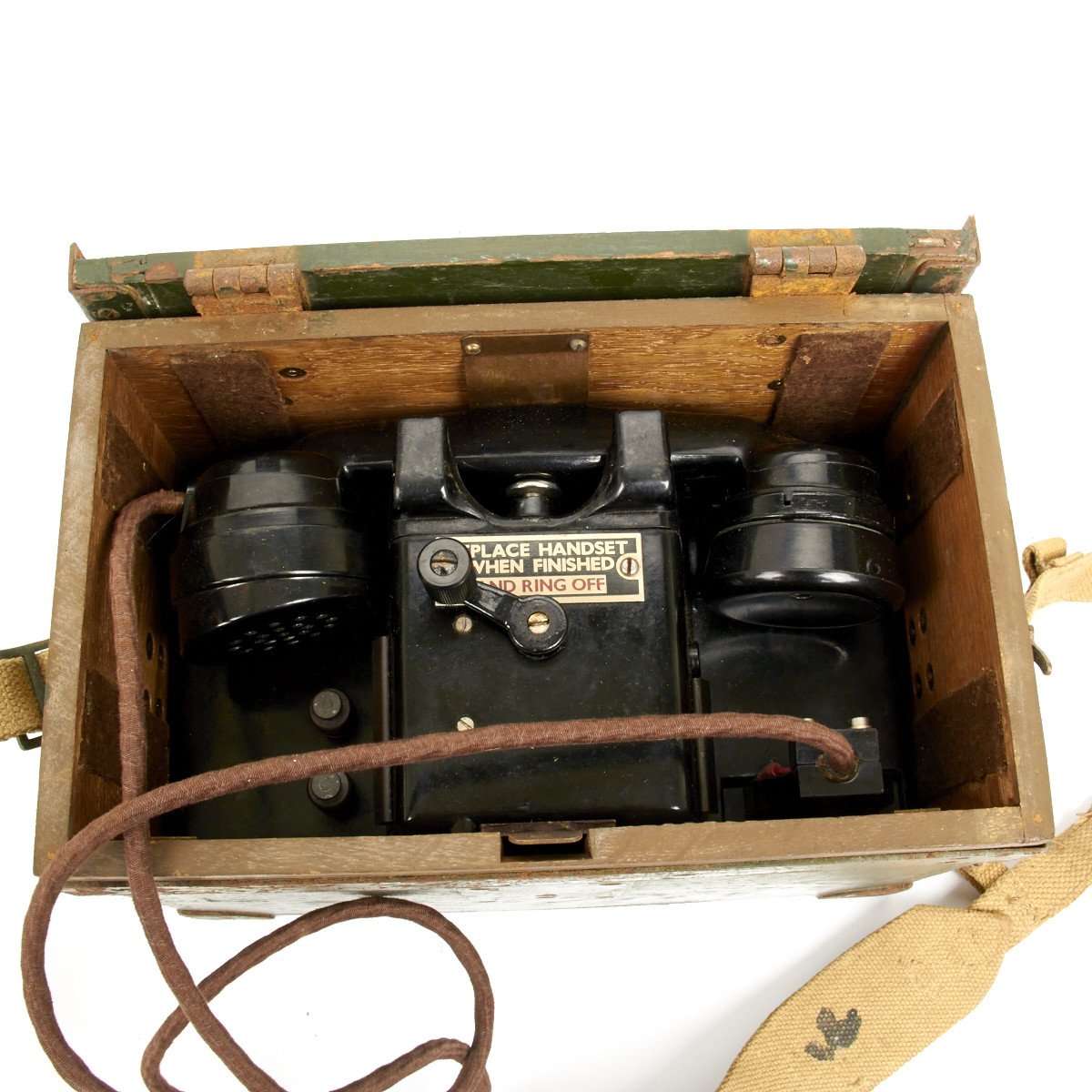 Original Items: Only One Set Available. These are a pair of genuine fully functional Type F British World War Two filed telephones constructed of bakelite in wood cases.