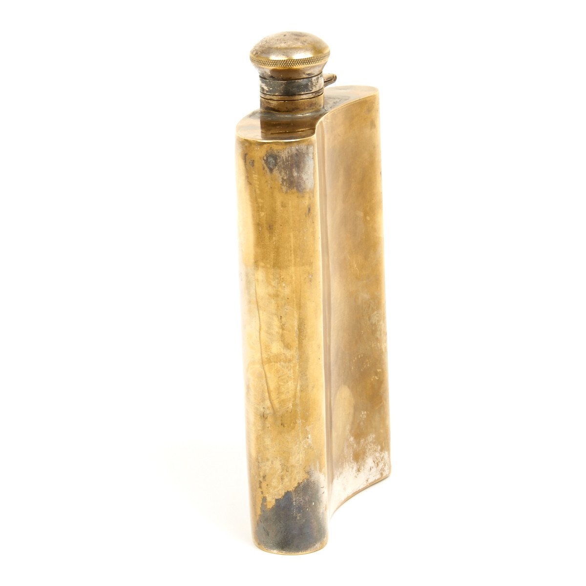 Original Item: One-of-a-kind. This is a fine nickel plated quality "hip flask" now almost all brass in appearance from years and years of use and polishing. The flask, in very nice condition, bears an inscription as follows: