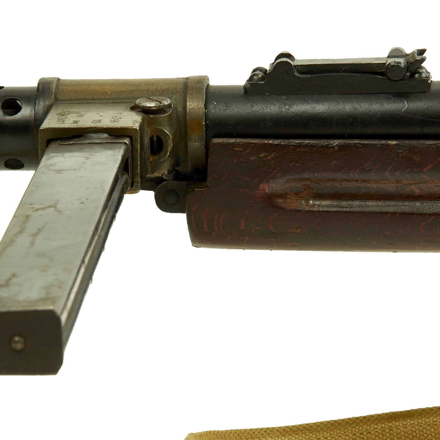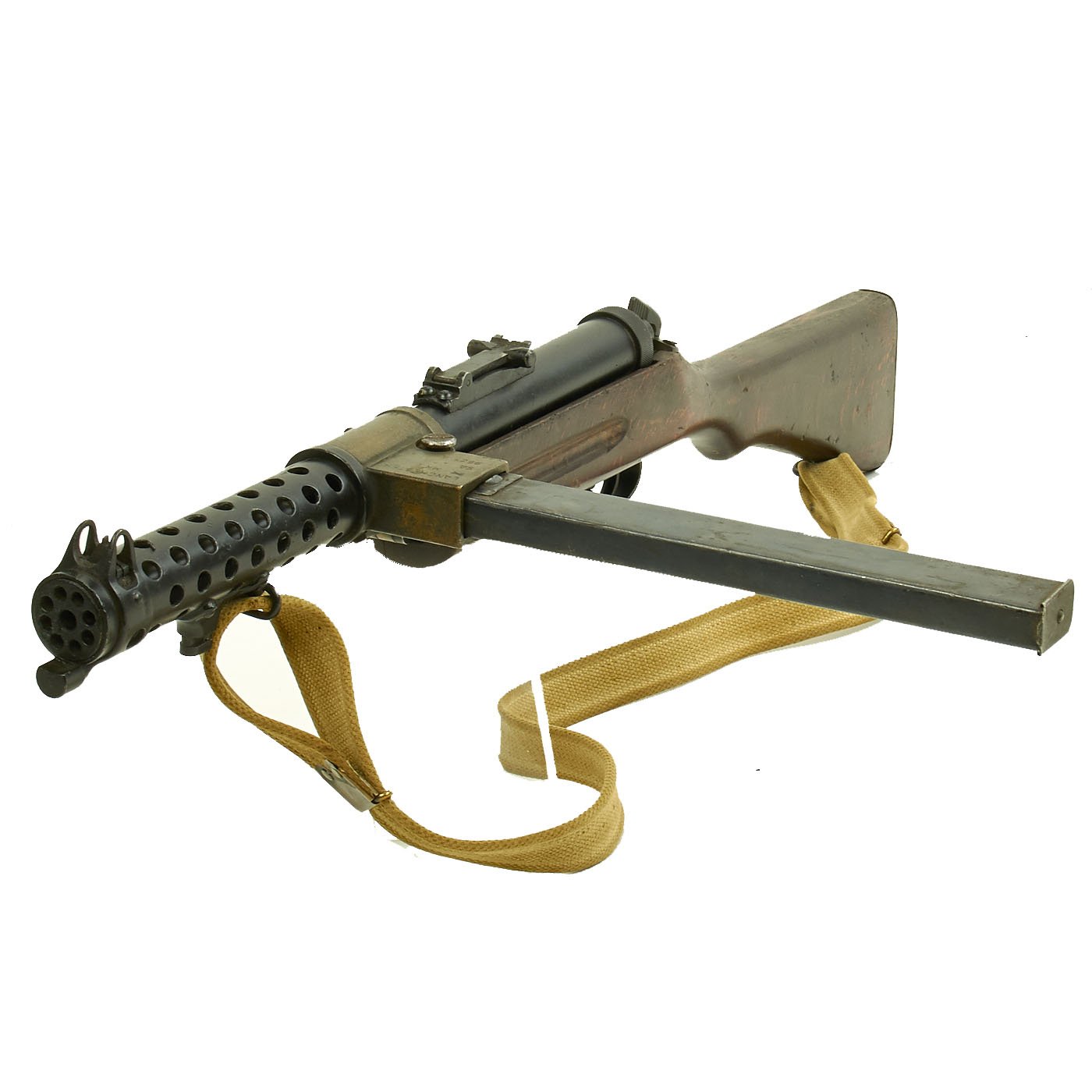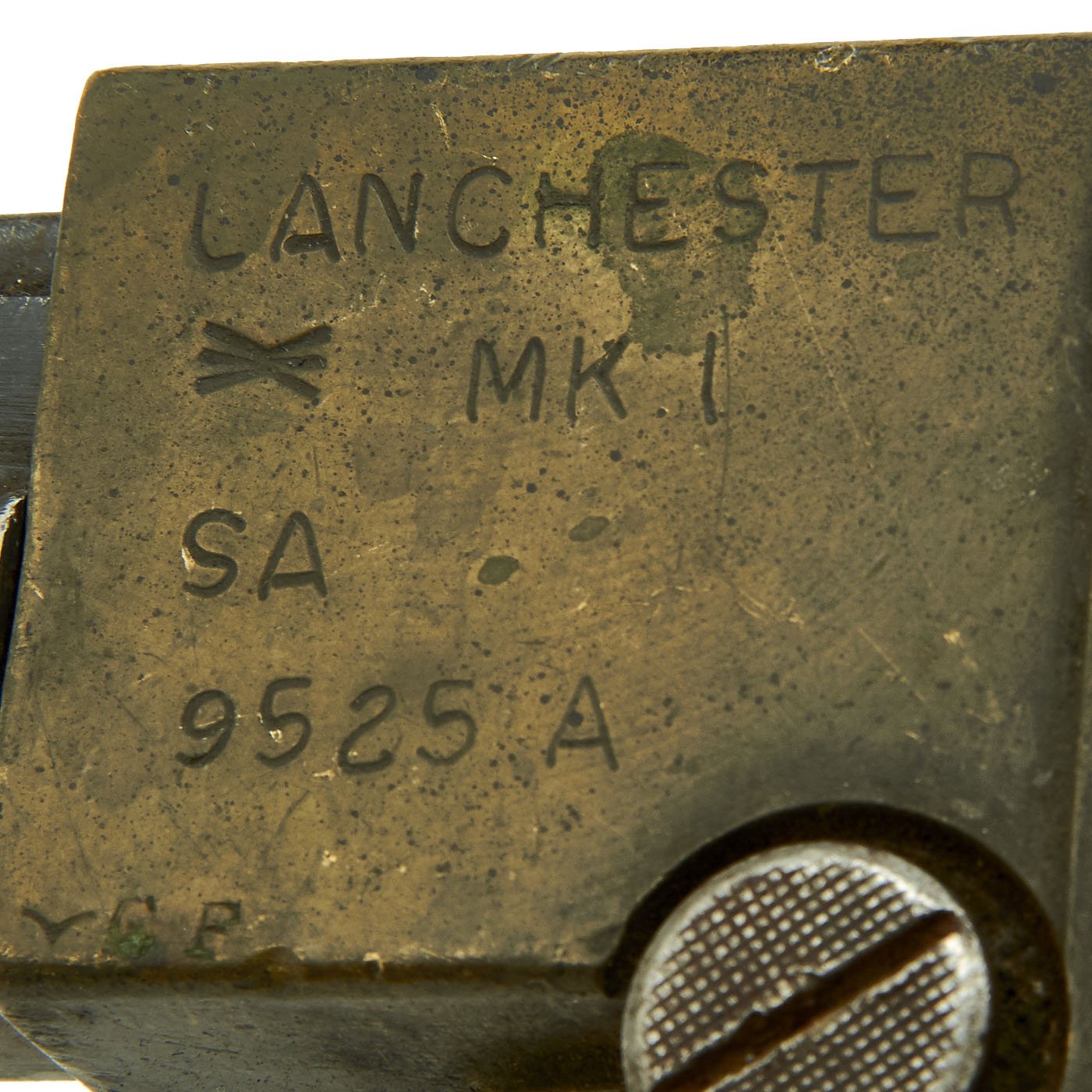 Original Item: Only One Available. One of the best quality British SMGs of WWII, the Lanchester has a full wood buttstock with brass butt plate. A heavy bronze magazine housing and ventilated barrel jacket complete with bayonet lug and support. (Takes Enfield 1907, 1943/44 series bayonets, advertised separately.)