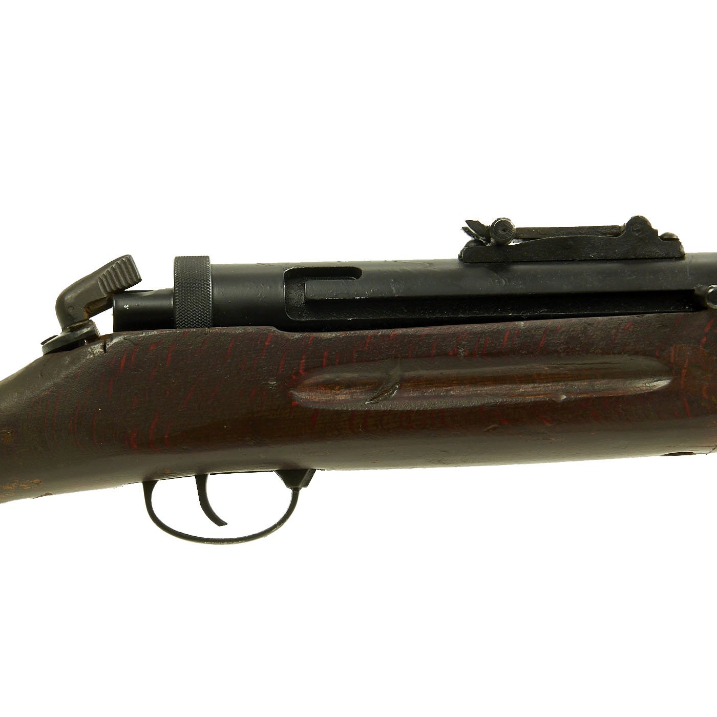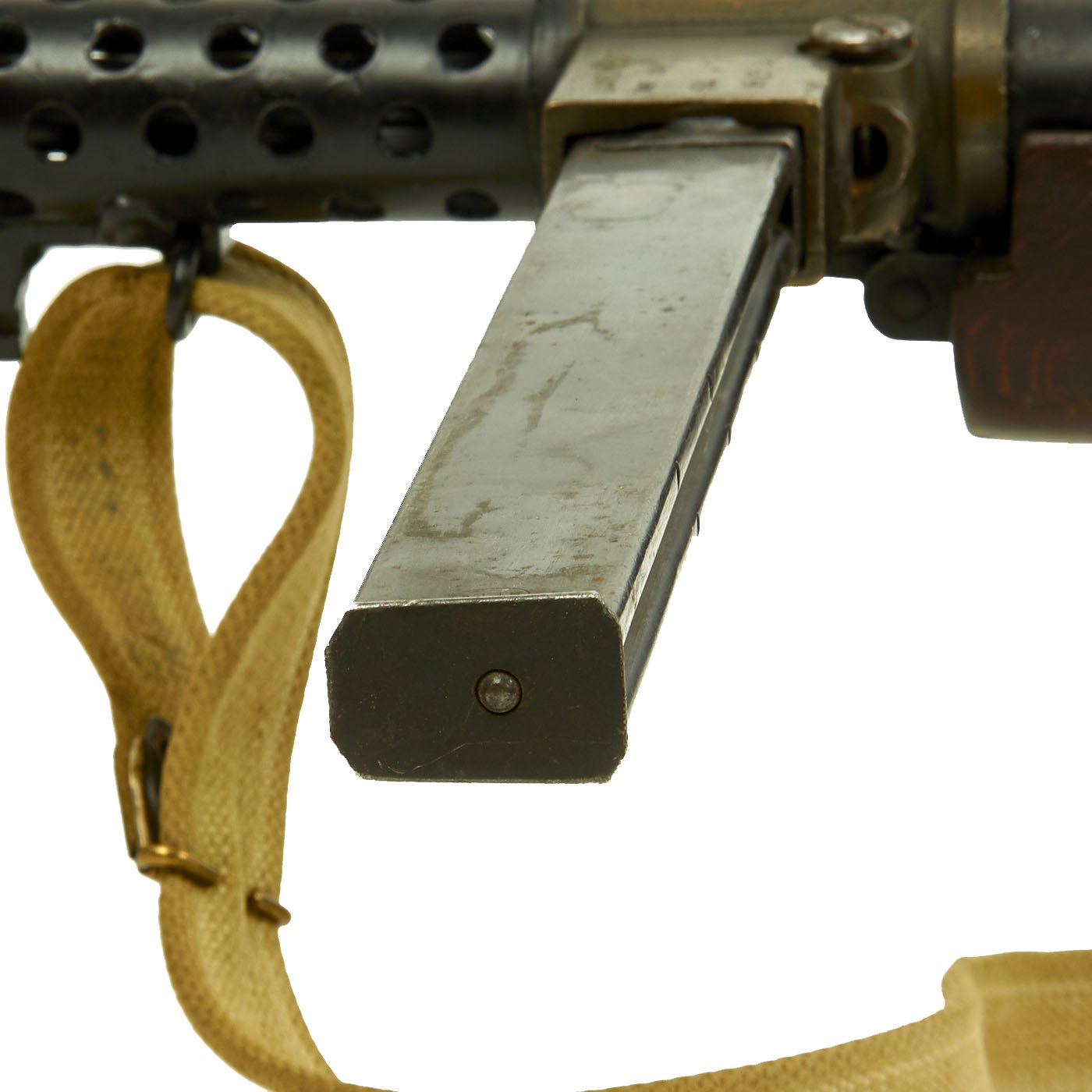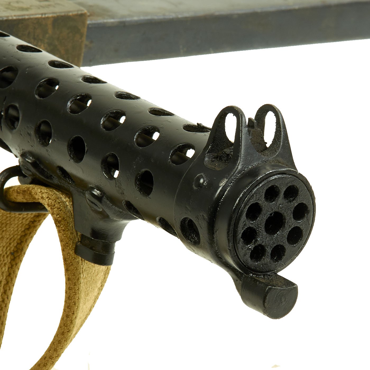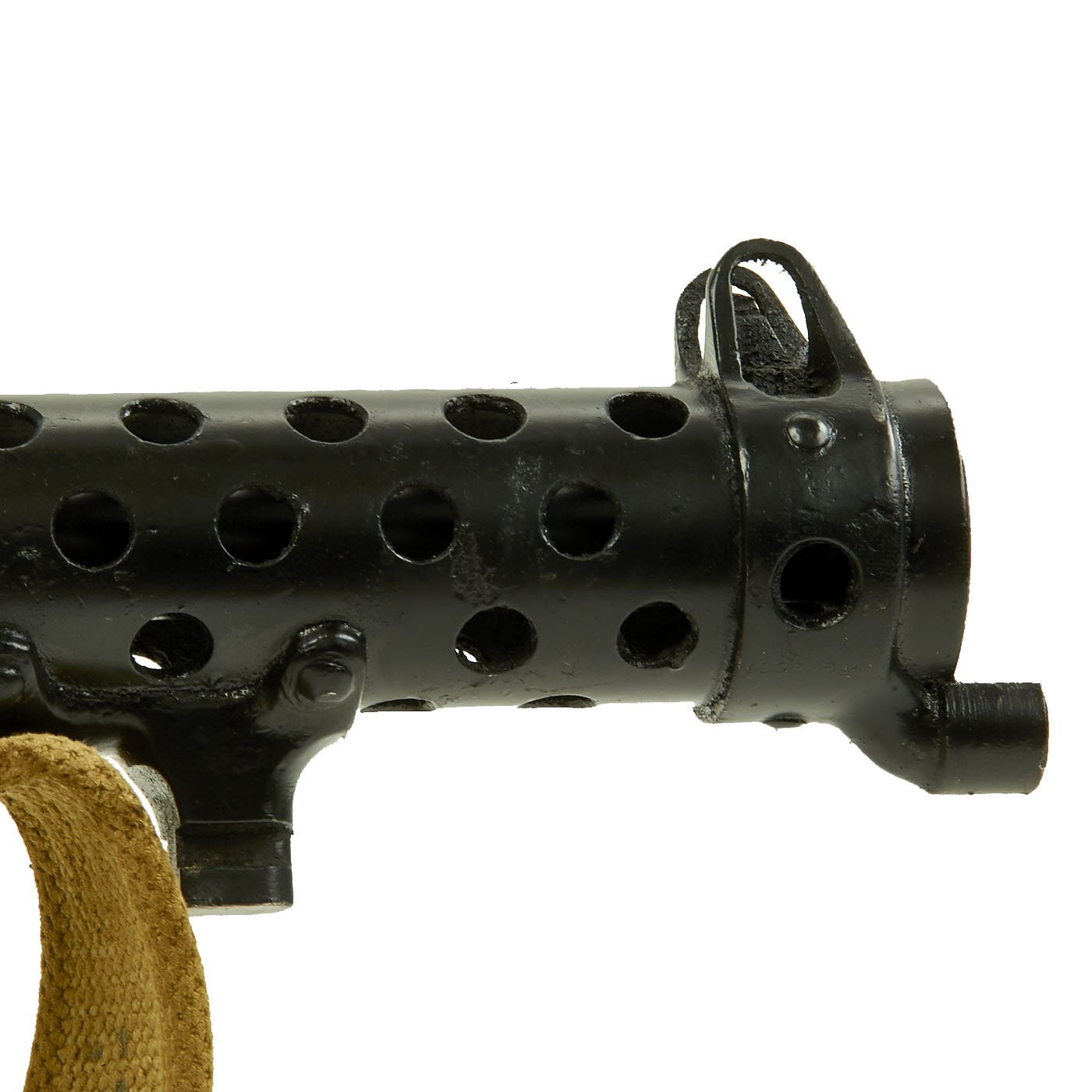 Original Item: Only One Available. One of the best quality British SMGs of WWII, the Lanchester has a full wood buttstock with brass butt plate. A heavy bronze magazine housing and ventilated barrel jacket complete with bayonet lug and support. (Takes Enfield 1907, 1943/44 series bayonets, advertised separately.)