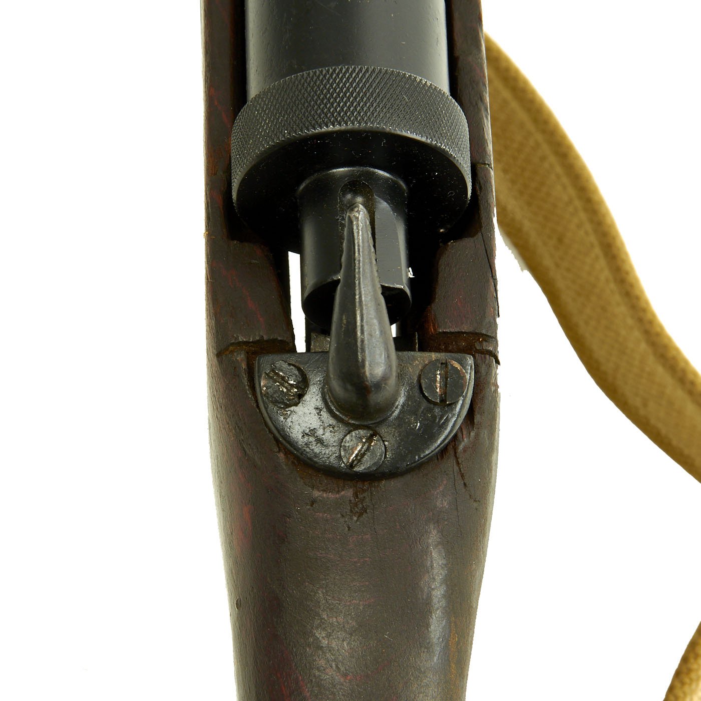 Also included is a rare 50 round magazine (deactivated where required) and a web Enfield WWII 1942 dated sling. This example, while being a Mk.I*, still retains the earlier Mk.I sight, as many were left on when converted. A very nice example, complete with sling & magazine, ready to display!
