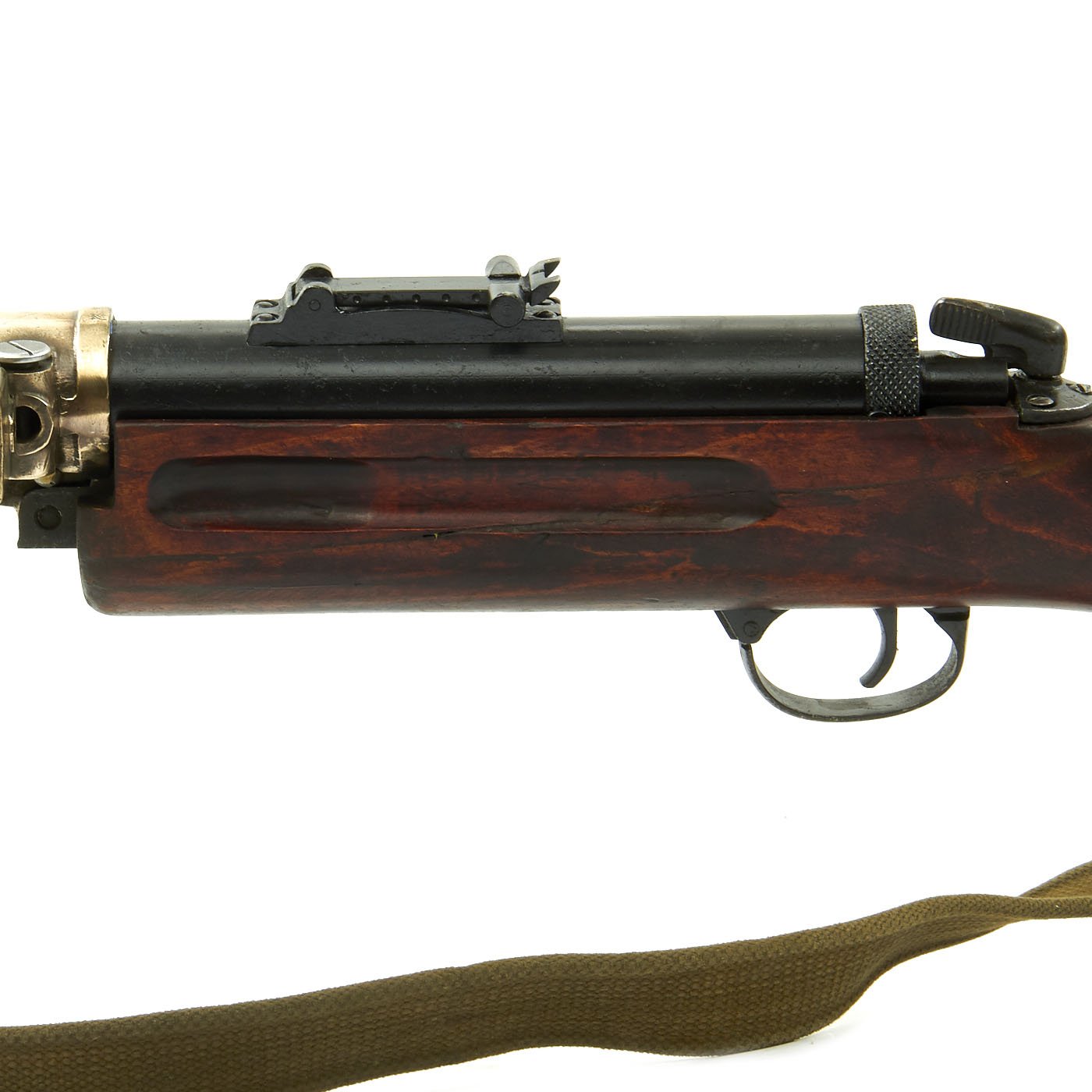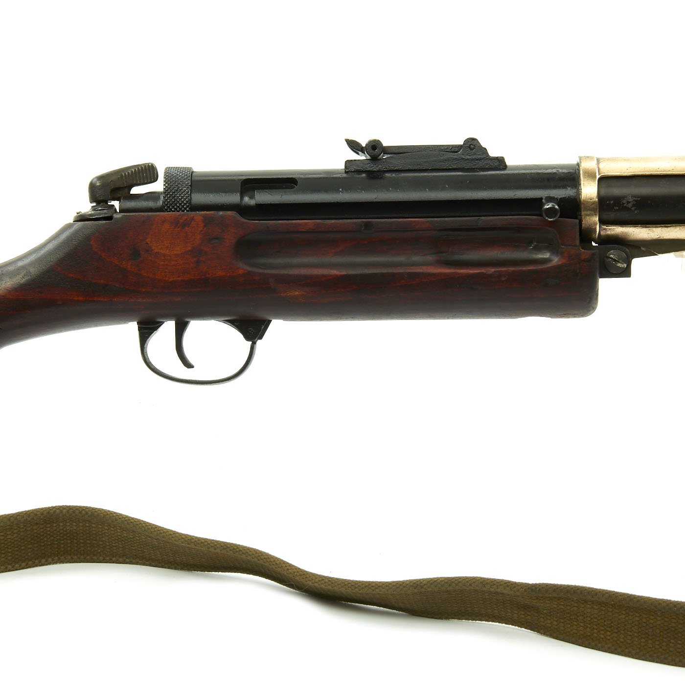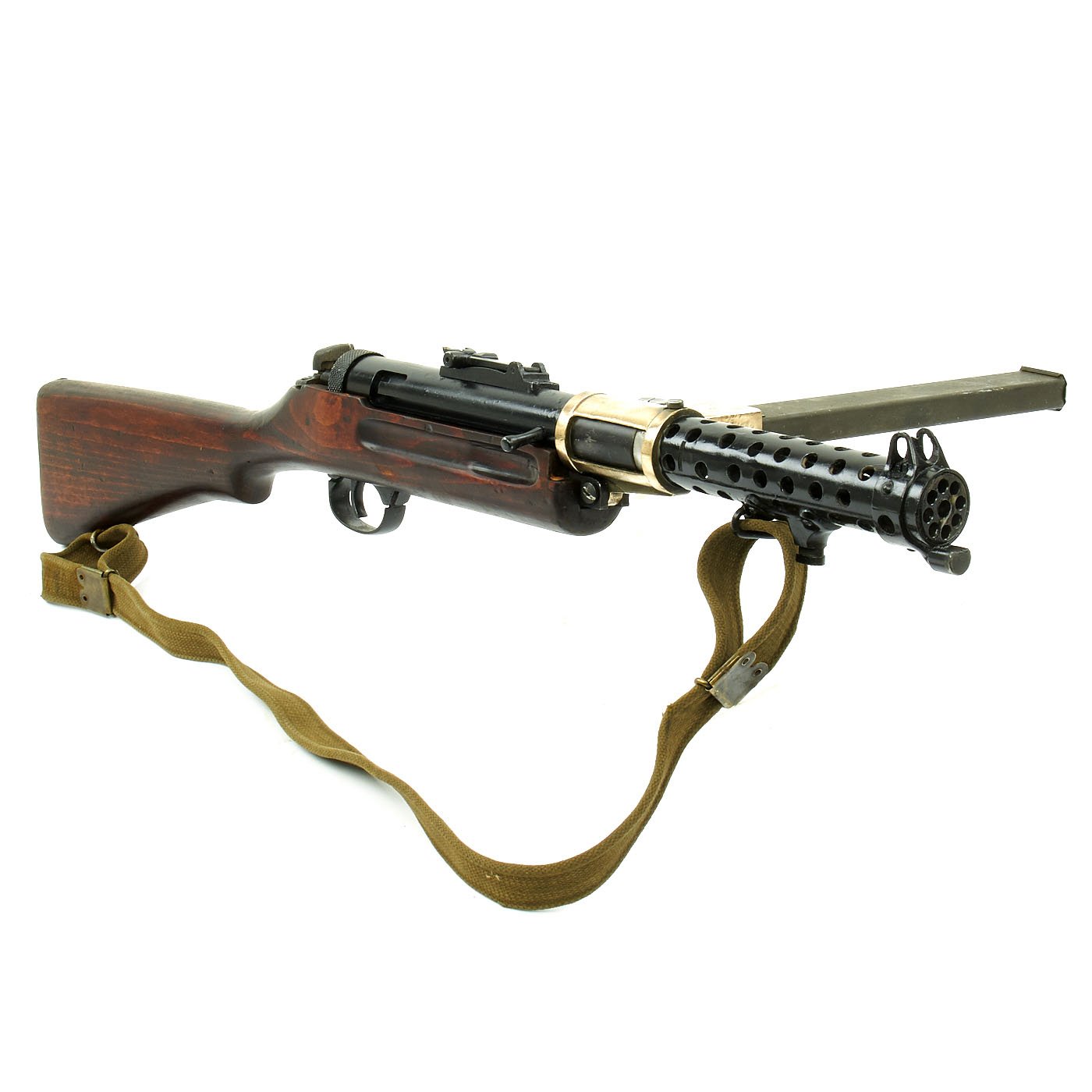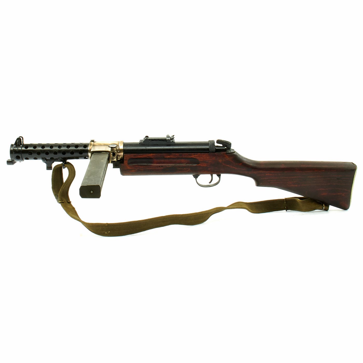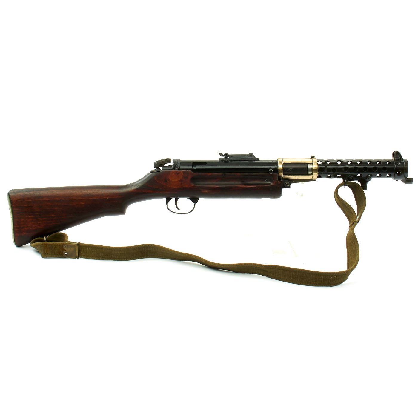 Original Item: Only One Available. One of the best quality British SMGs of WWII, the Lanchester has a full wood buttstock with brass butt plate. A heavy bronze magazine housing and ventilated barrel jacket complete with bayonet stands. (Takes Enfield 1907, 1943/44 series bayonets, advertised separately.