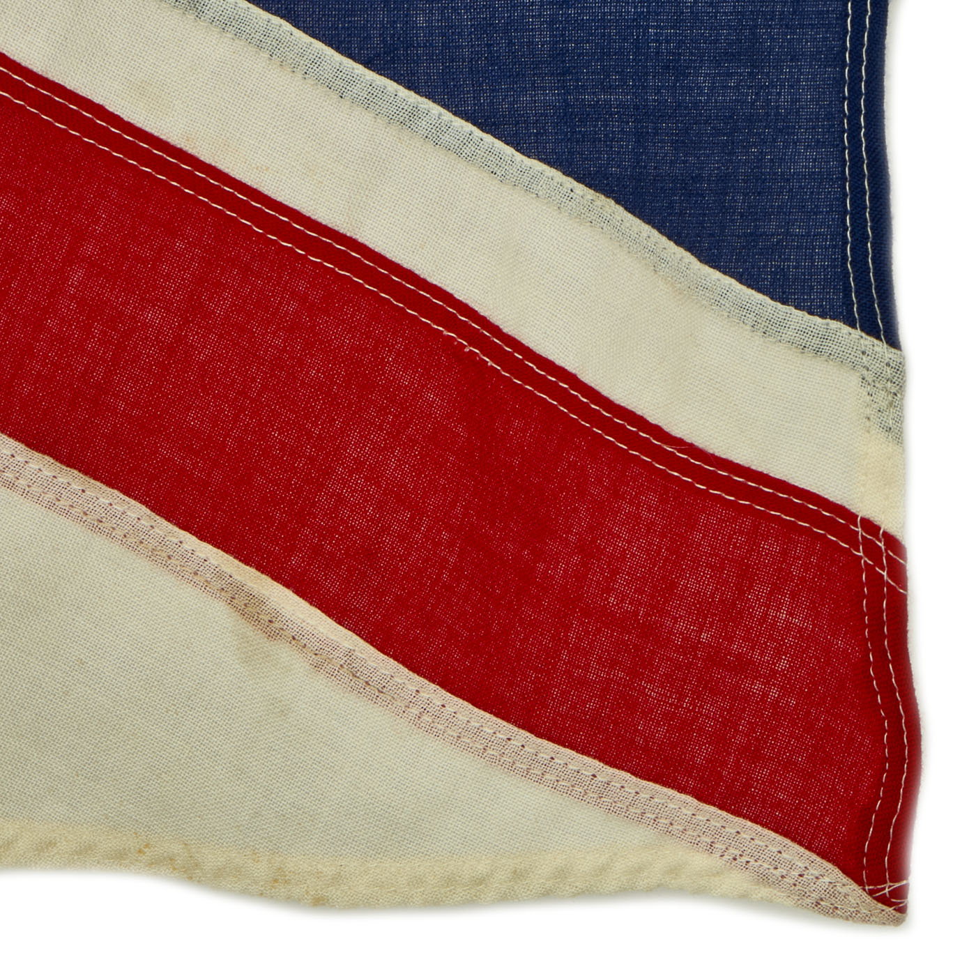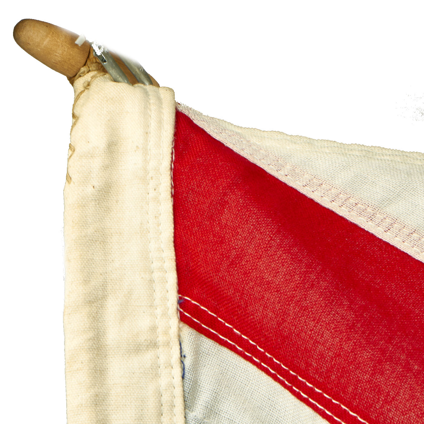The flag does show wear, and has scattered wear holes as shown. These could be from moths, but they look much more like the flag material aging and becoming somewhat delicate. It is constructed of wool, which went out of favor quickly after WWII as superior synthetics were available.