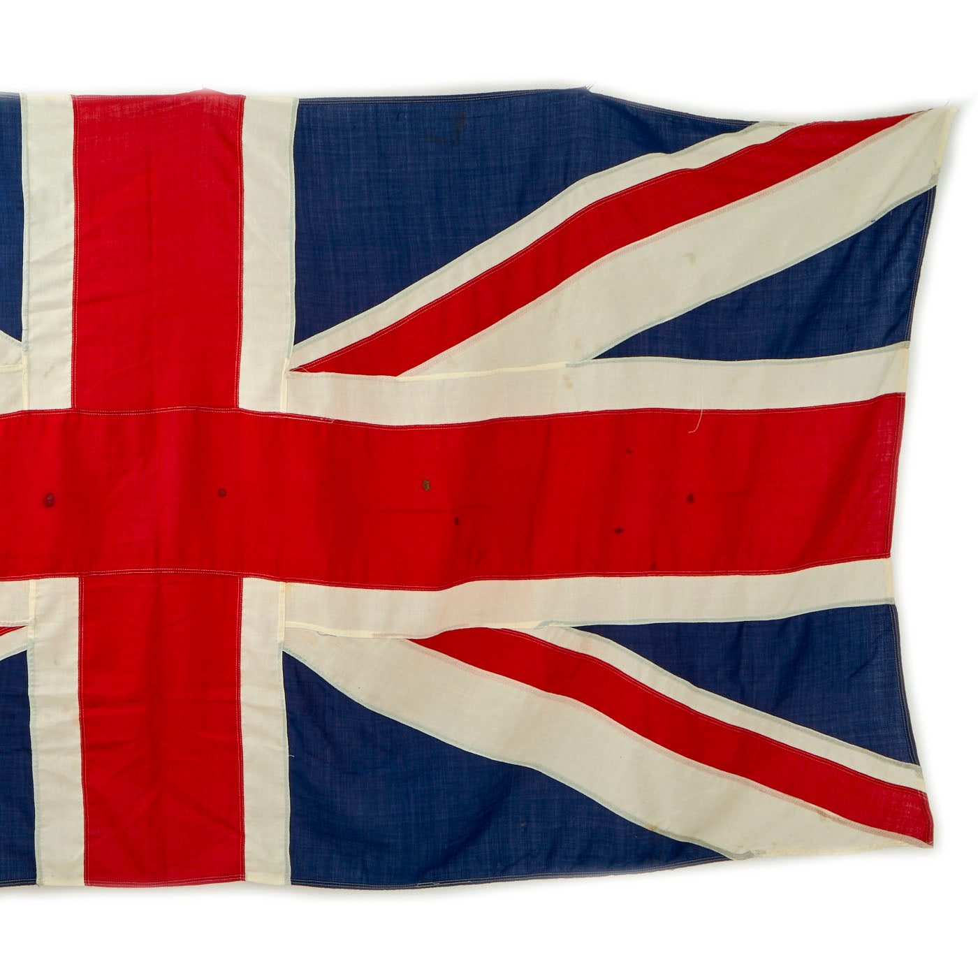 Original Item: Only One Available. This is a very nice Original British World War Two Union Jack Flag, measuring approximately 51" X 111 ½”. The flag header is marked, but this flag seems to have seen long service, so it was probably washed several times, which probably removed most of the tag, we can barely make out Benjamin Edgington.
