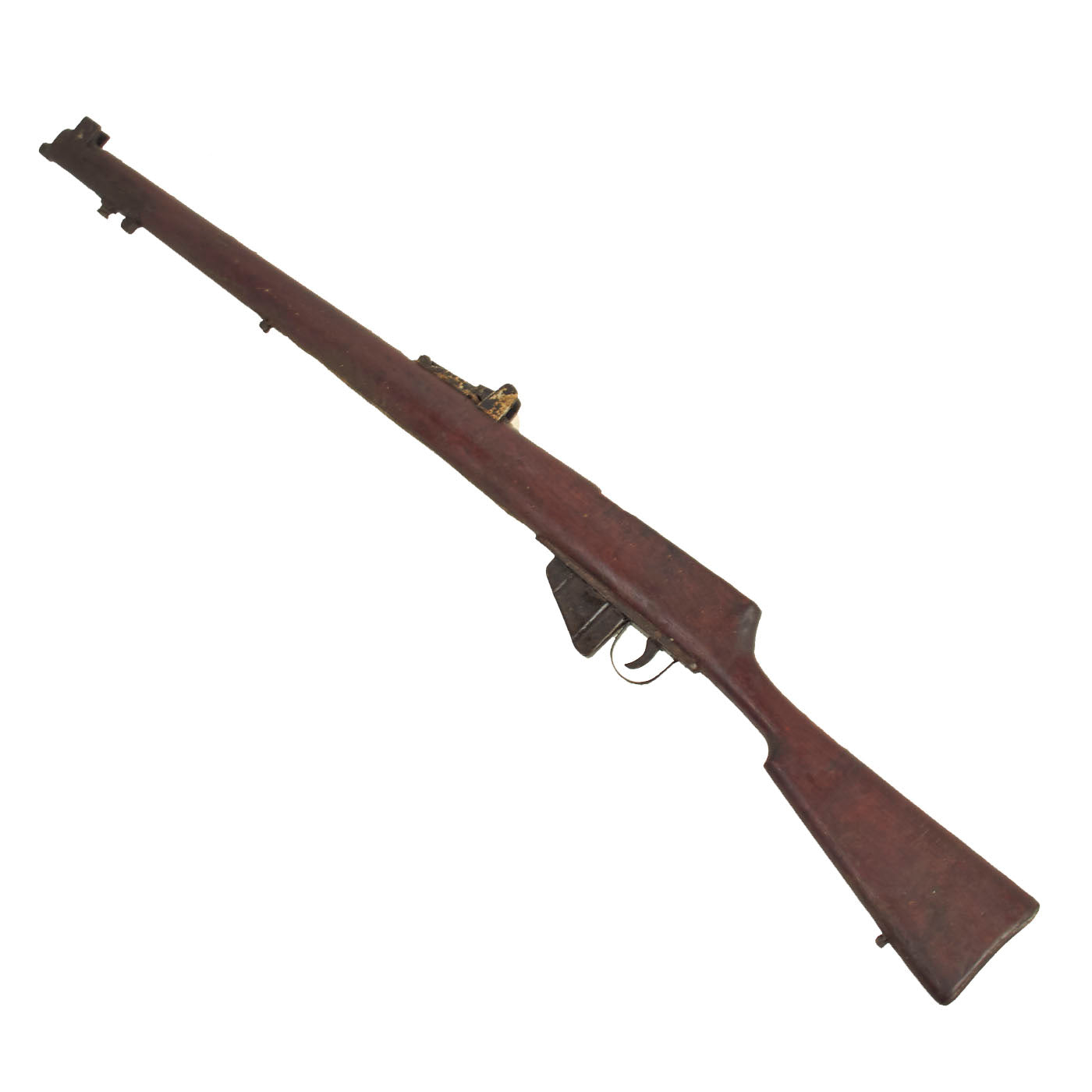 Original Item: Very Few Only. These are Original WW2 production and issue. Each practice rifle comes UN-CLEANED . These are INERT "Dummy Rifles" that accept WW1 and WW2 Pattern P-1907, P-1943 and P-1944 SMLE Sword Bayonets. Each Rifle is constructed from wood and metal. There is a substantial steel Front Sight Mount with Bayonet Stand for affixing a Bayonet yet there is No Barrel or Action, just a simulated Trigger, trigger guard and fixed magazine and simulated aluminum Standard adjustable SMLE Back Sight.
