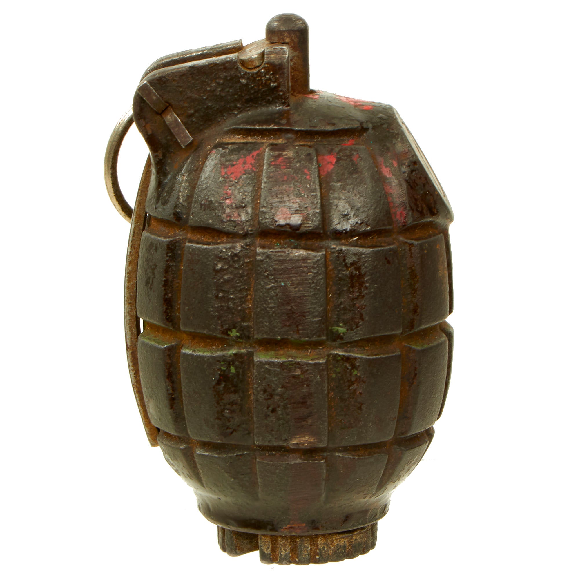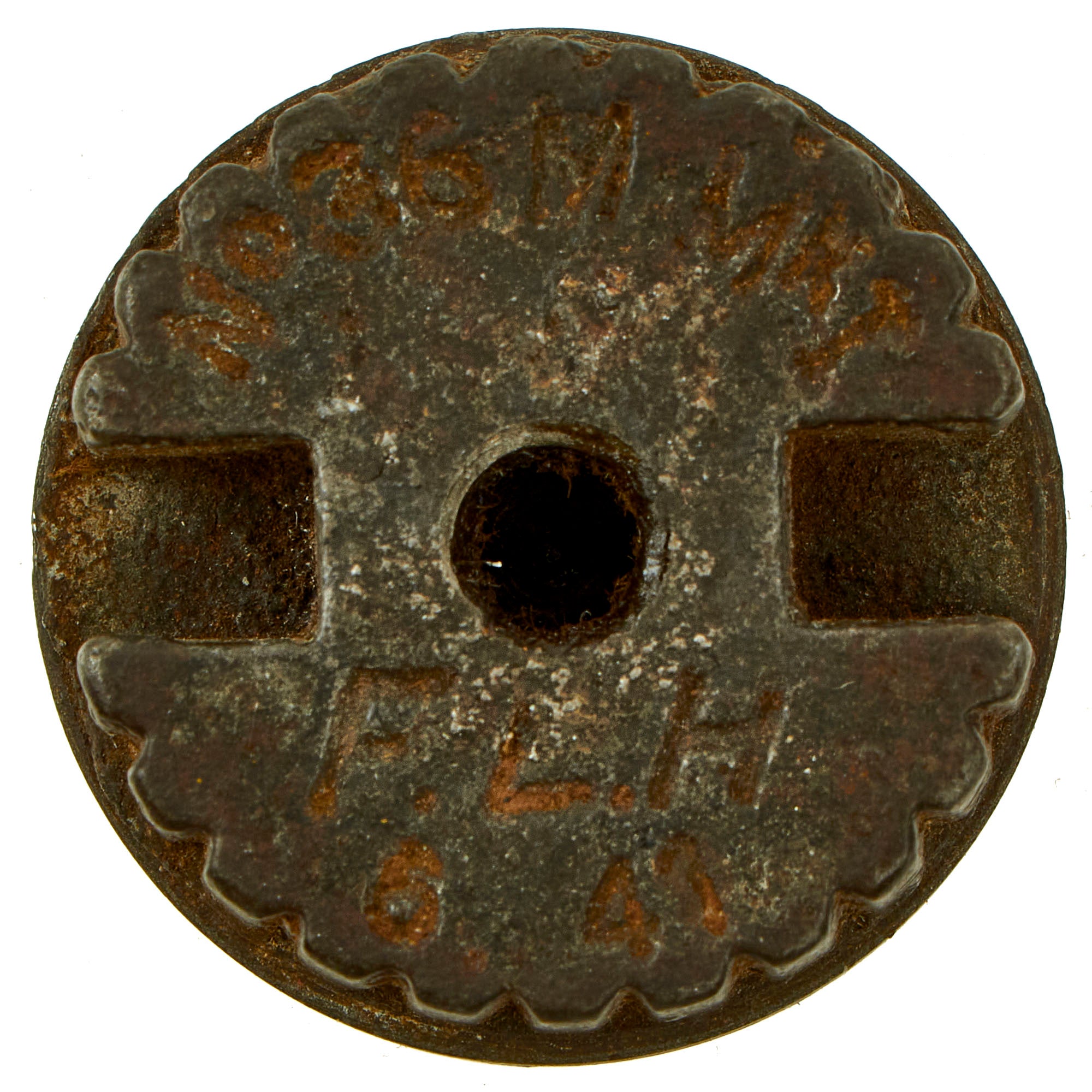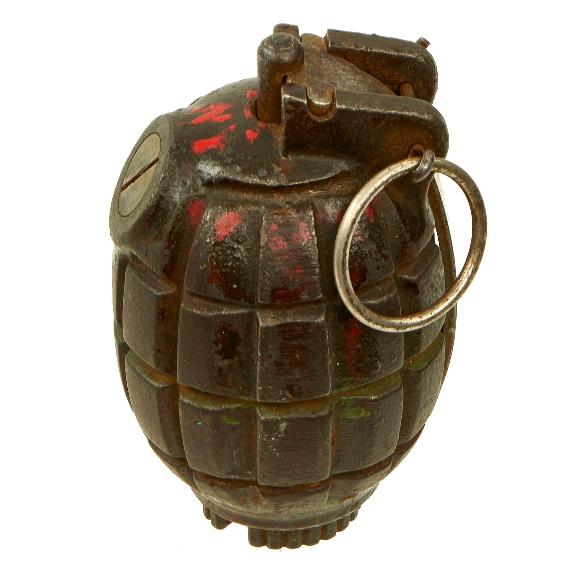 Original Item: Only One Available. This is a very nice BATF approved totally inert example of a 1942 dated No. 36M MkI Grenade. The No. 36M was the British army's standard hand-grenade during WWII, and long afterwards. This wonderful example is nearly complete with internal parts (no explosives) and much of the original paint.