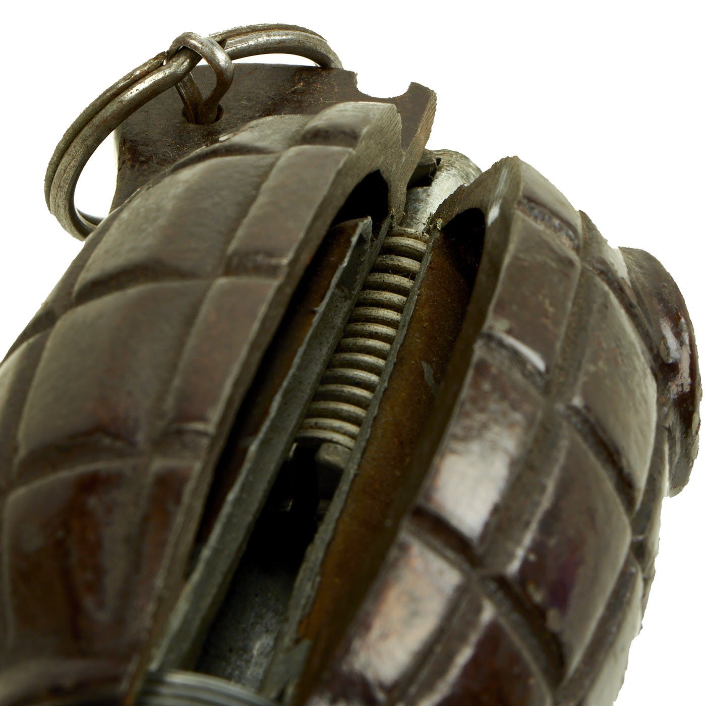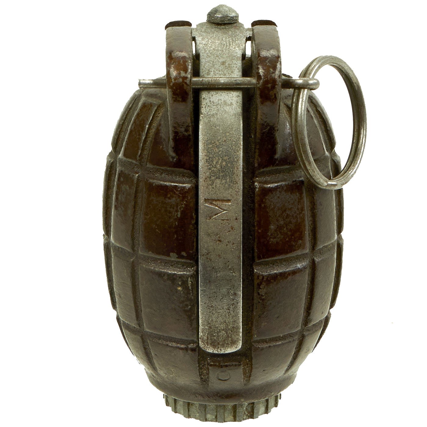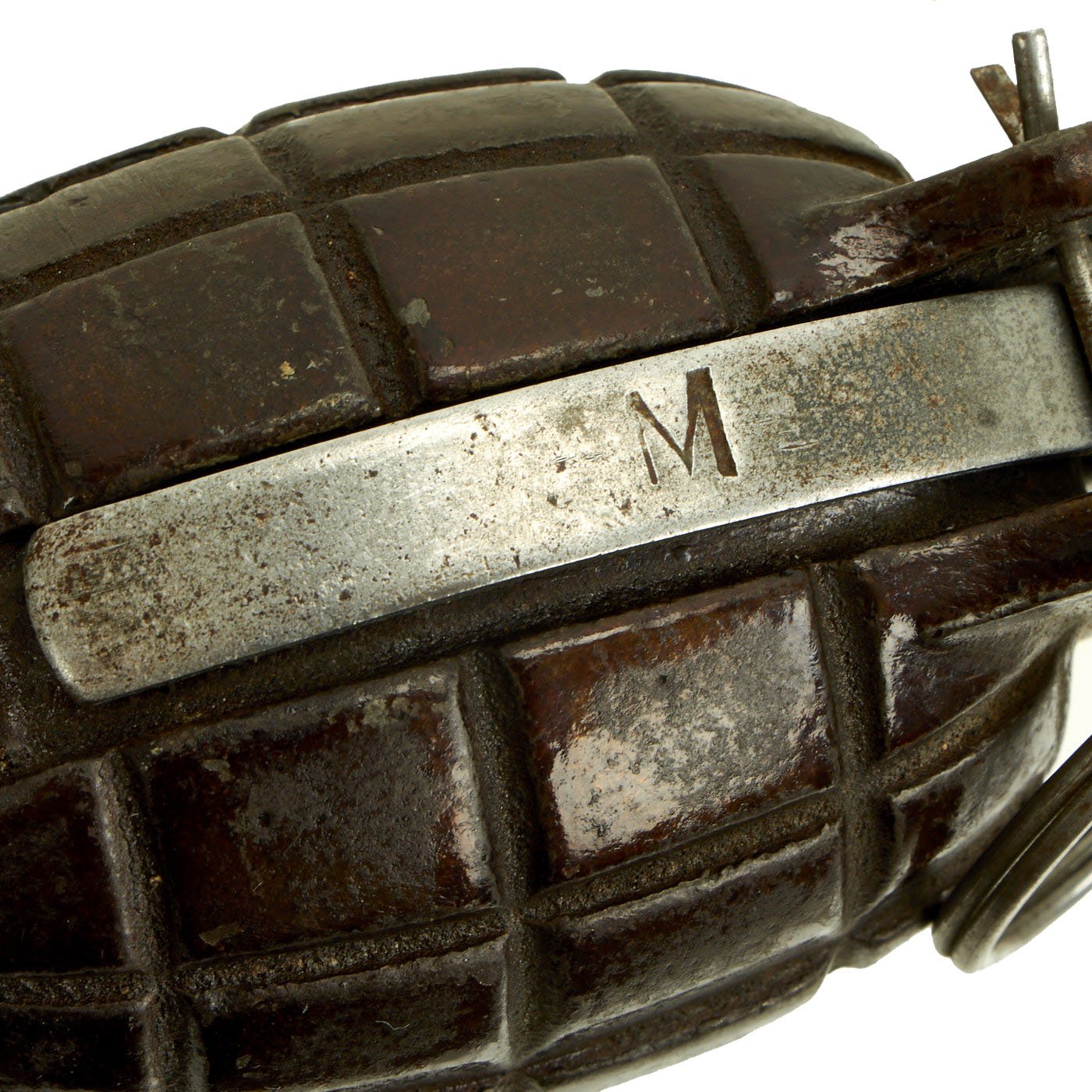 Original Item: Only One Available. This is an very nice BATF approved totally inert example of a No. 36M MkI Grenade, partly cutaway for training. This type was known as the "Mesopotamian" variant due to its shellac-coating which was designed to keep moisture and humidity out of the detonator's fuse. The No. 36M was the British army's standard hand-grenade during WWII, and long afterwards.