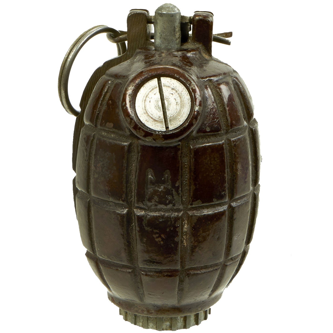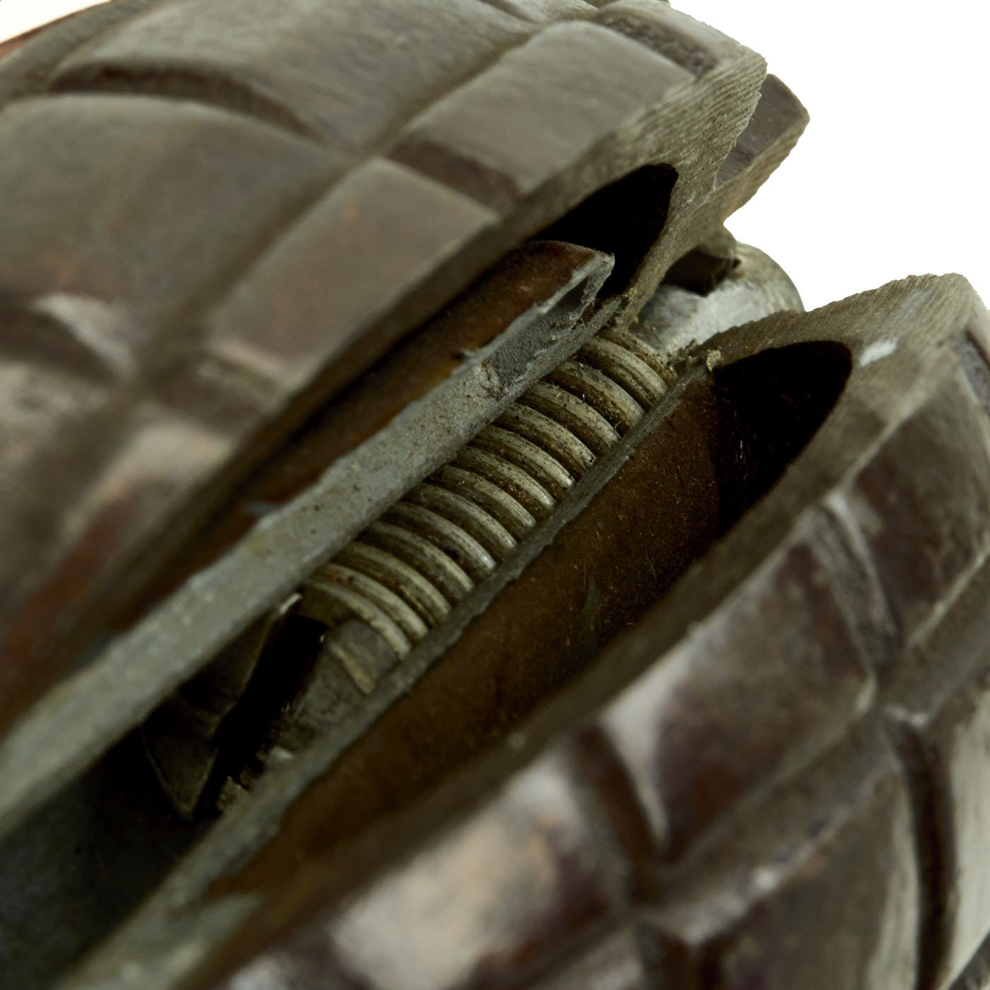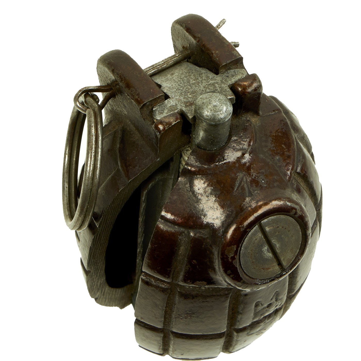 Original Item: Only One Available. This is an very nice BATF approved totally inert example of a No. 36M MkI Grenade, partly cutaway for training. This type was known as the "Mesopotamian" variant due to its shellac-coating which was designed to keep moisture and humidity out of the detonator's fuse. The No. 36M was the British army's standard hand-grenade during WWII, and long afterwards.