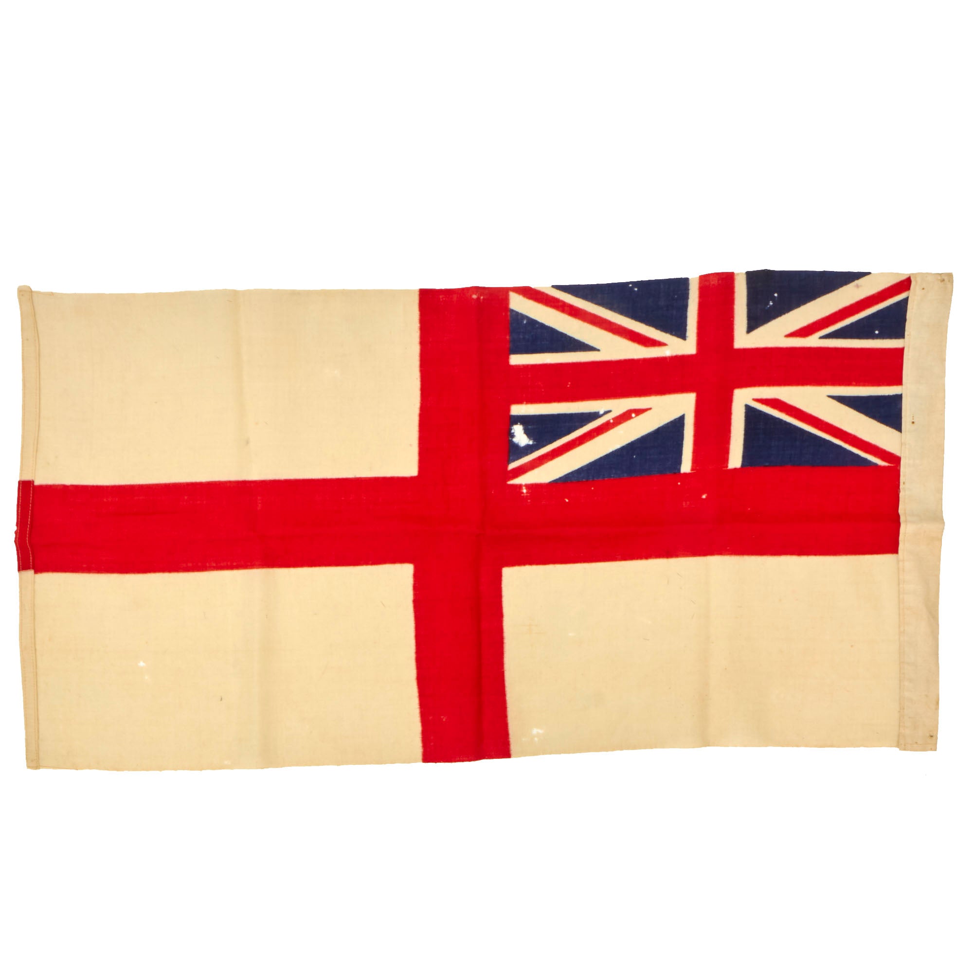 Original Item. Only One Available. The White Ensign, at one time called the St George's Ensign due to the simultaneous existence of a cross-less version of the flag, is an ensign flown on British Royal Navy ships and shore establishments. It consists of a red St George's Cross on a white field with the Union Flag in the upper canton.