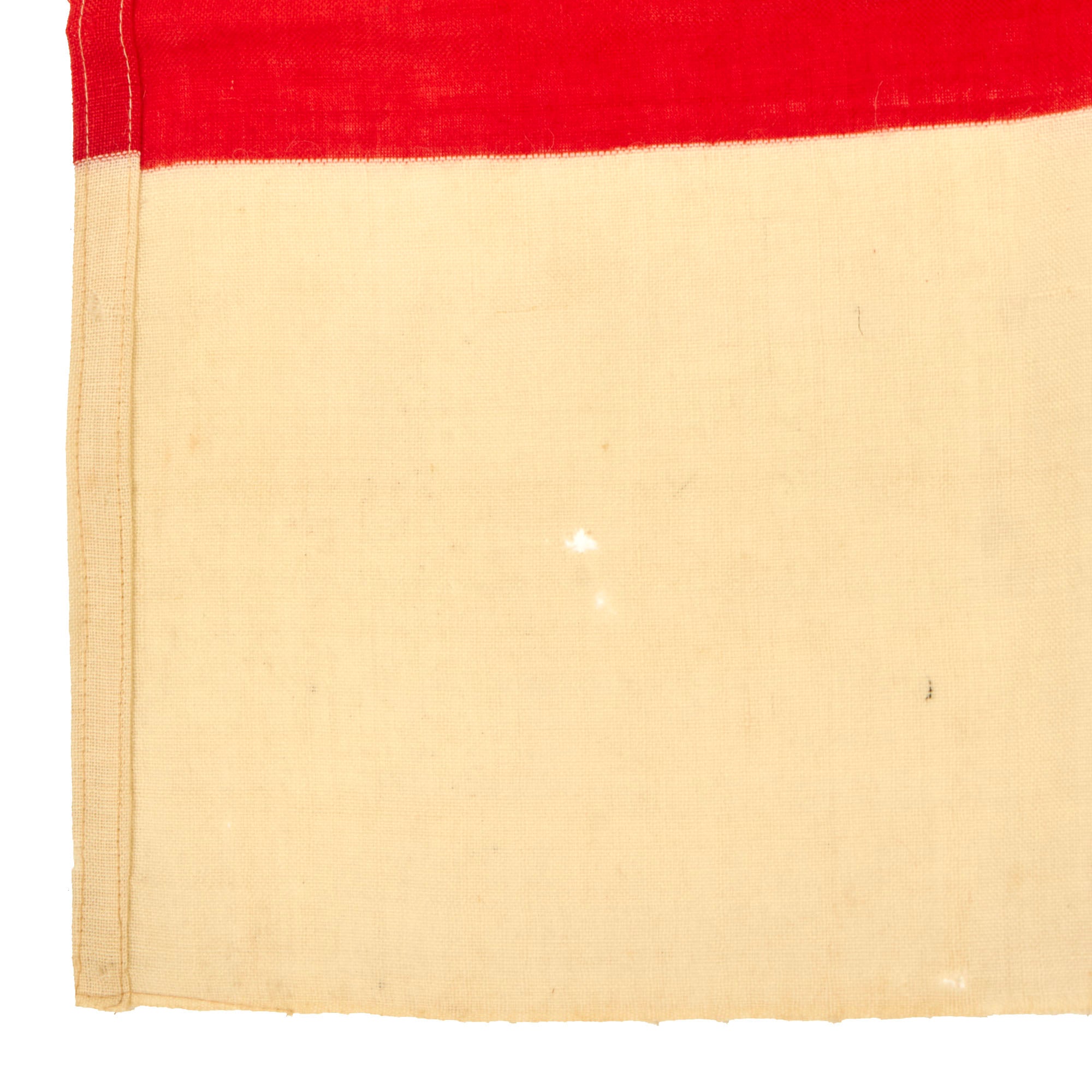 This is a nice example of a White Ensign measuring 18½ x 36”. The flag has some tears and moth nips as shown but is still in fair overall condition.
