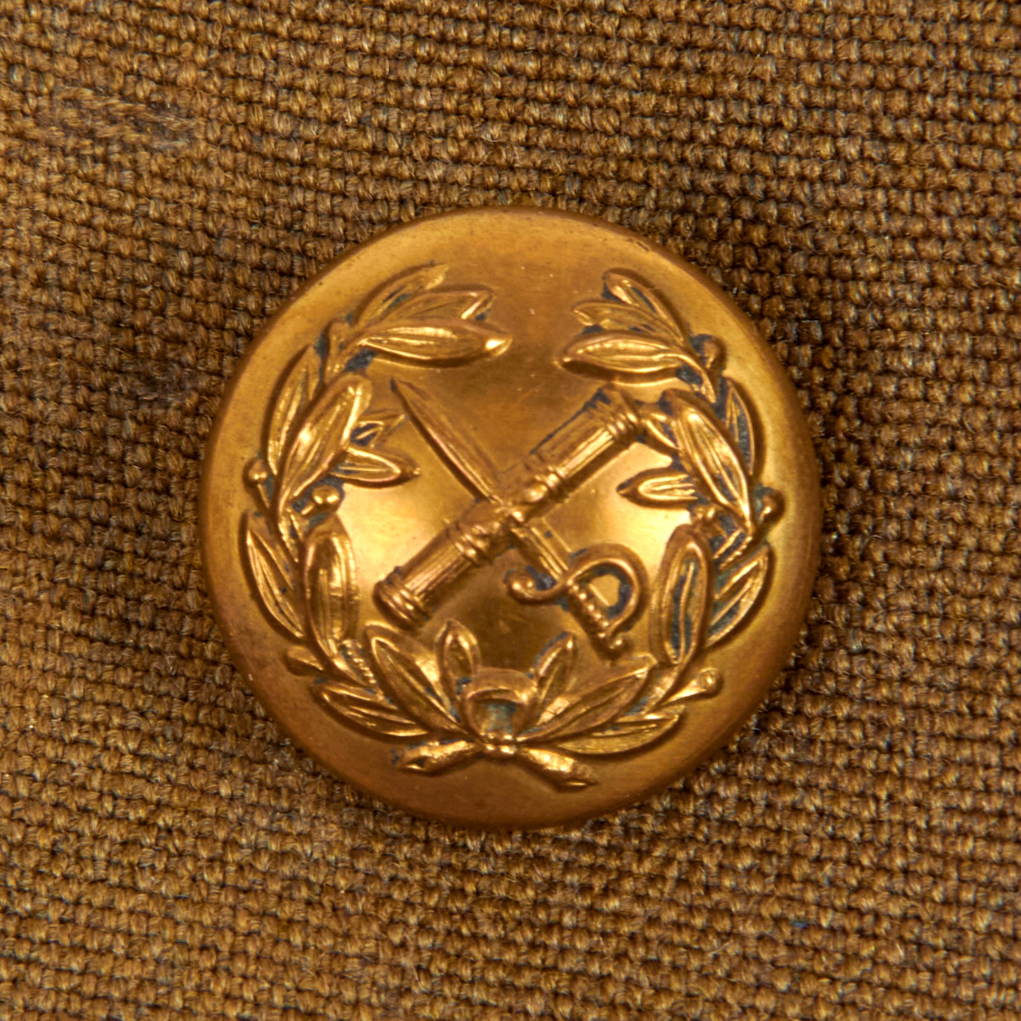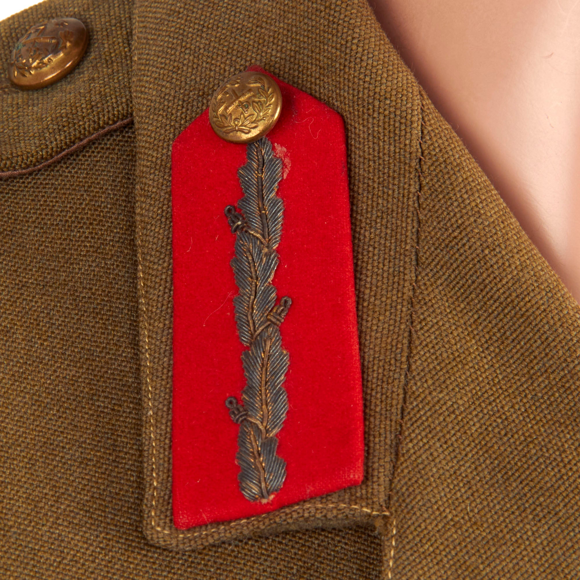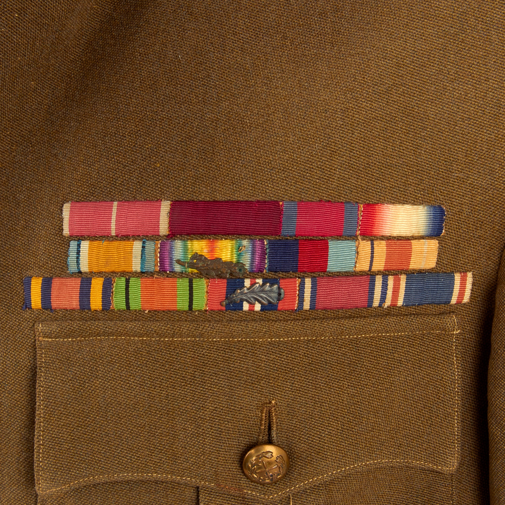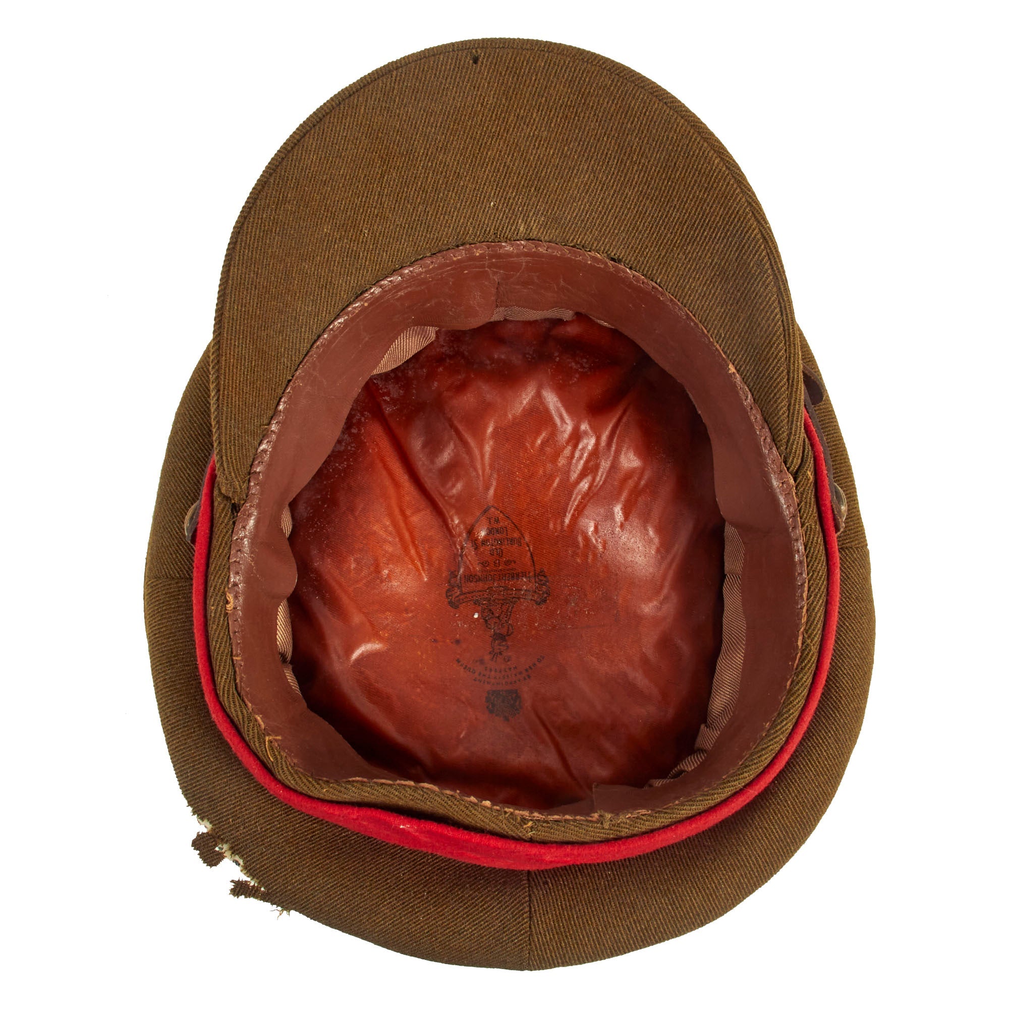 The jacket features 13 ribbons in worn/faded condition but the colors are still easily discernible making identification a breeze. The shoulder devices consist of the Crown with Crossed sword and baton, indicating the rank of Lieutenant-General with General Officer lapel devices. The shoulder sleeve insignia on both sides is a square with red over black and a bullion star in the center. This insignia is for the India Command, a command he was a part of in 1938/39 and 1945/46. The jacket and visor do show signs of use and wear but is presented without any extensive damage, and is quite a lovely display piece.