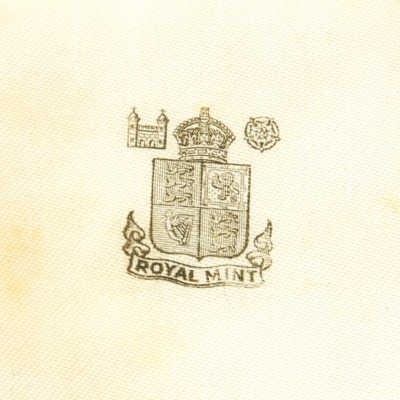 The included case measures 5 1/2" x 2 7/8", and has brass hinges and a functional catch. The interior is lined on the top with white satin, bearing the coat of arms of the ROYAL MINT, while the bottom is of white velvet, with an inset for the award.
