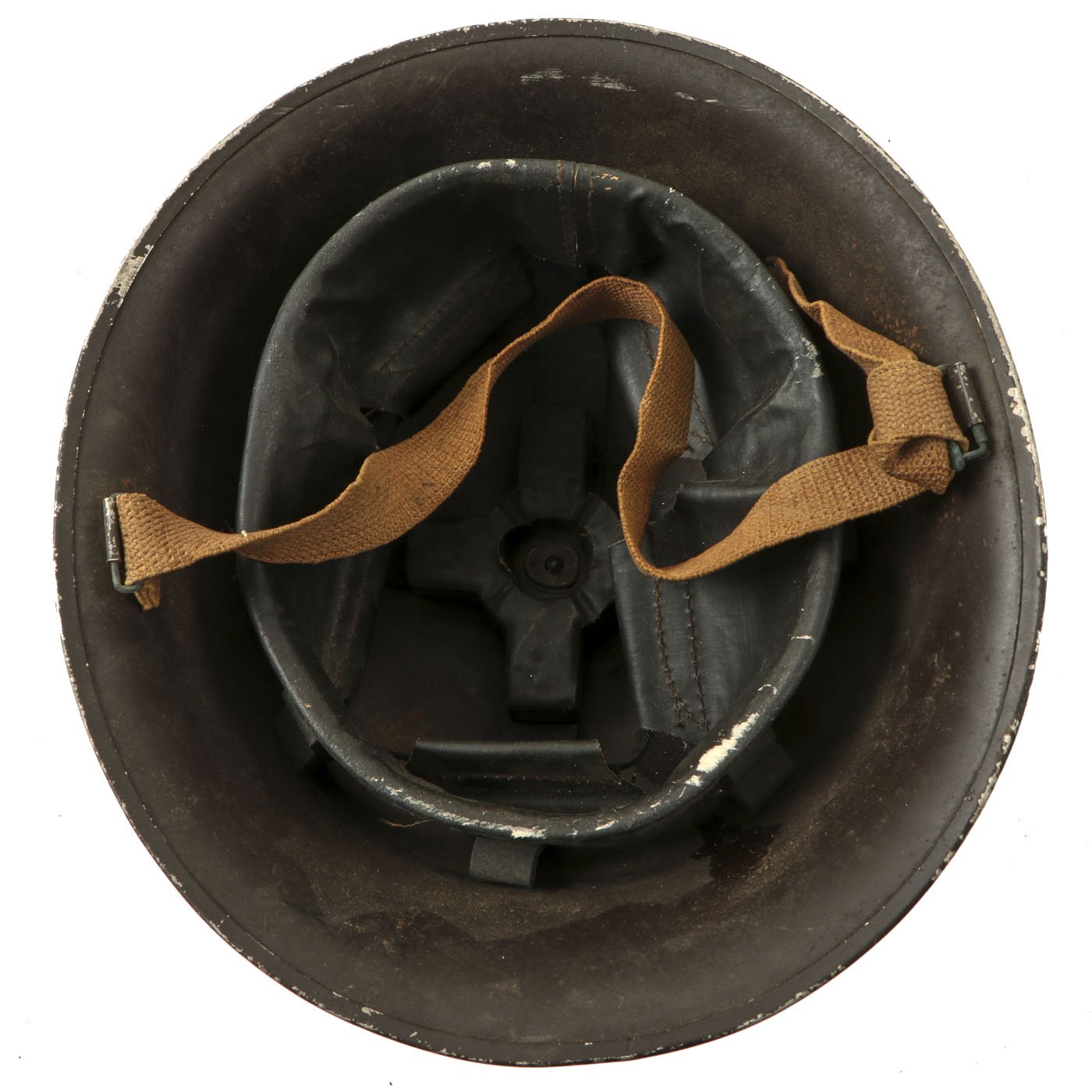 Original Item: Only One Available. As issued for use in the D-Day invasion of Europe in 1944; this is the next steel helmet pattern to be adopted by the British after the Dough Boy Brodie helmet of WWI. In use through the close of WWII and in regular use through Korea and the Falkland war. Helmets in this condition and color are extremely rare: it is the original WWII Brown color and in very good condition, with little sign of use.