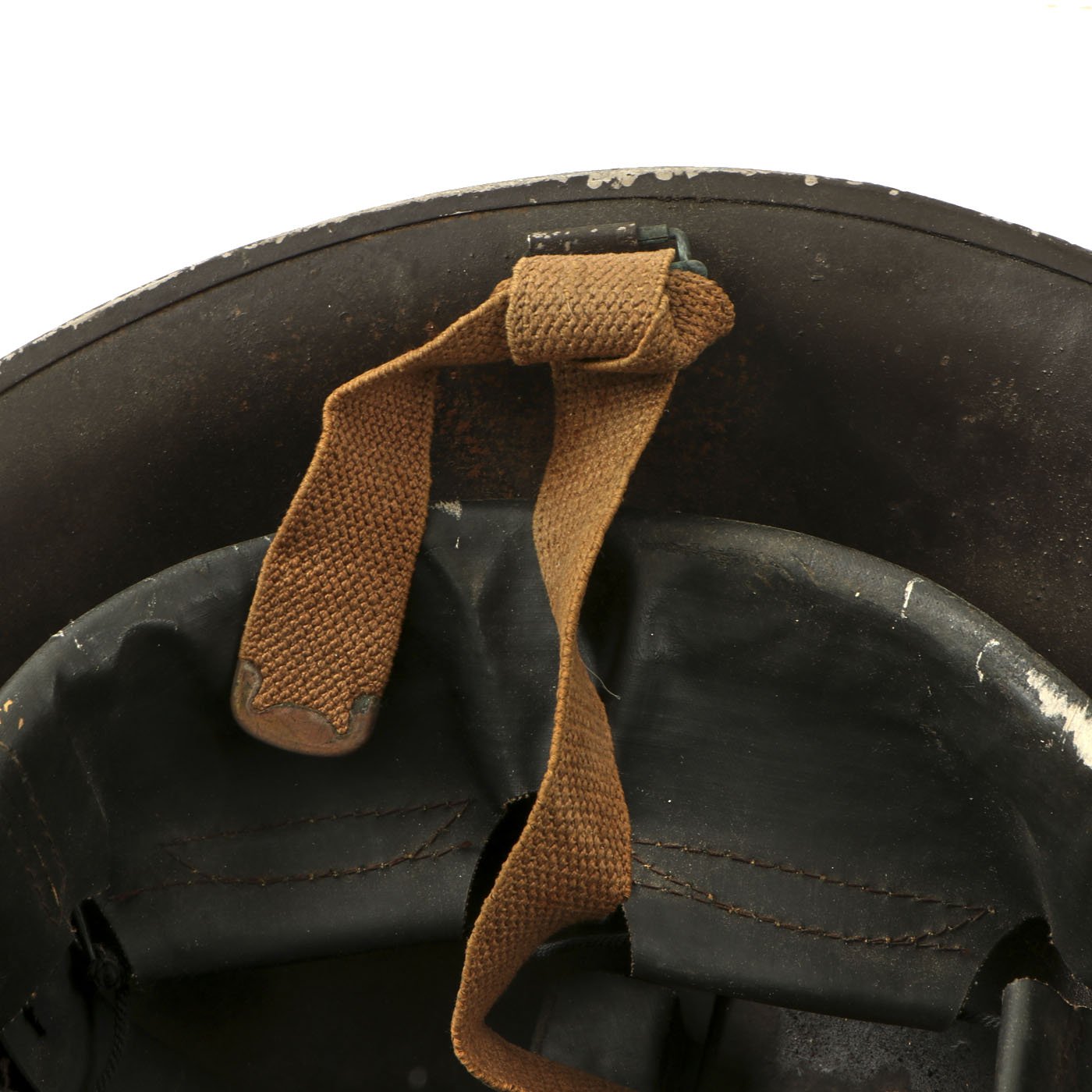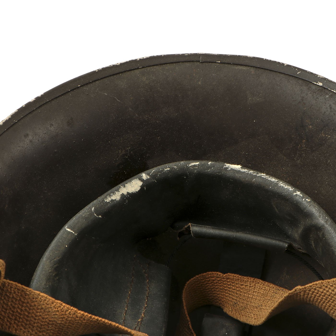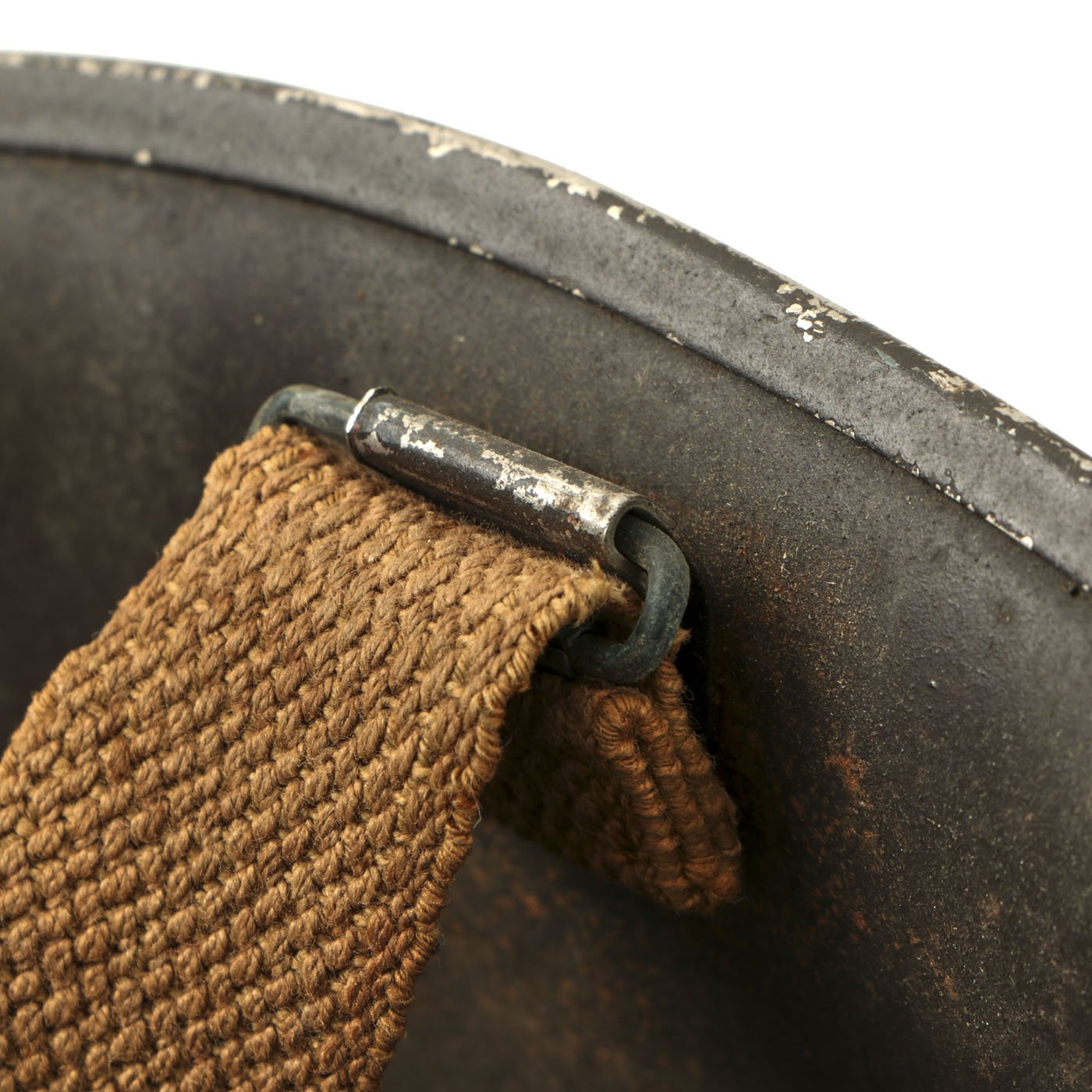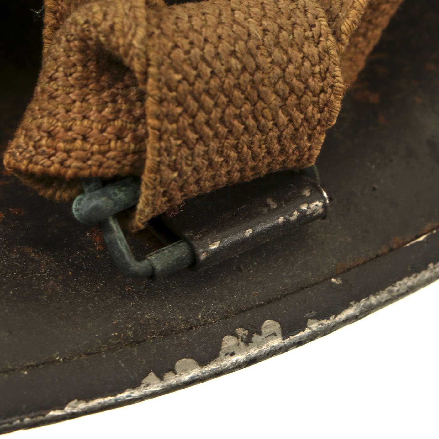 Condition is very good, and perfect for any WWII collection. The chinstrap was originally elastic, however the rubber inside is degraded, as expected for being this old. It now is quite slack. This is the first example of these that we have had in years, and possibly the last we'll have. Ready to display!