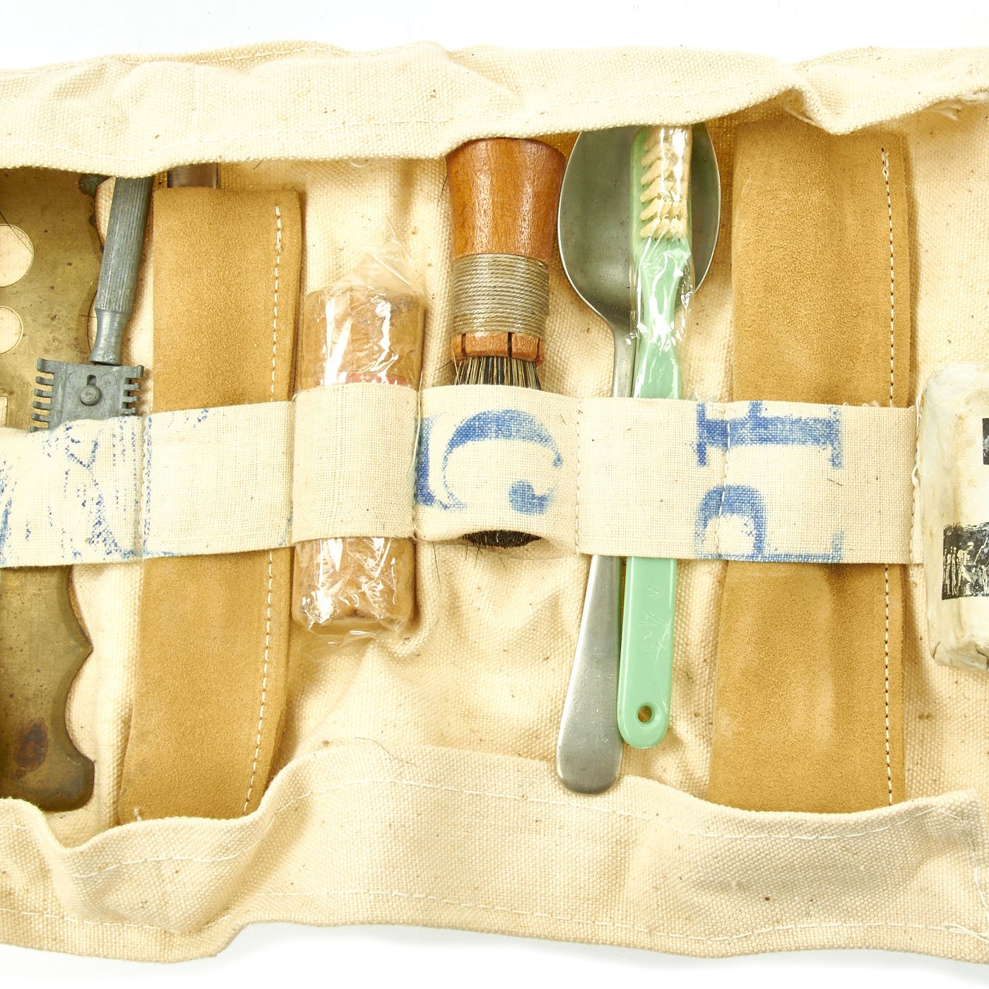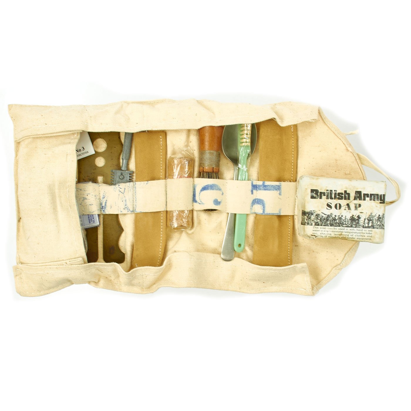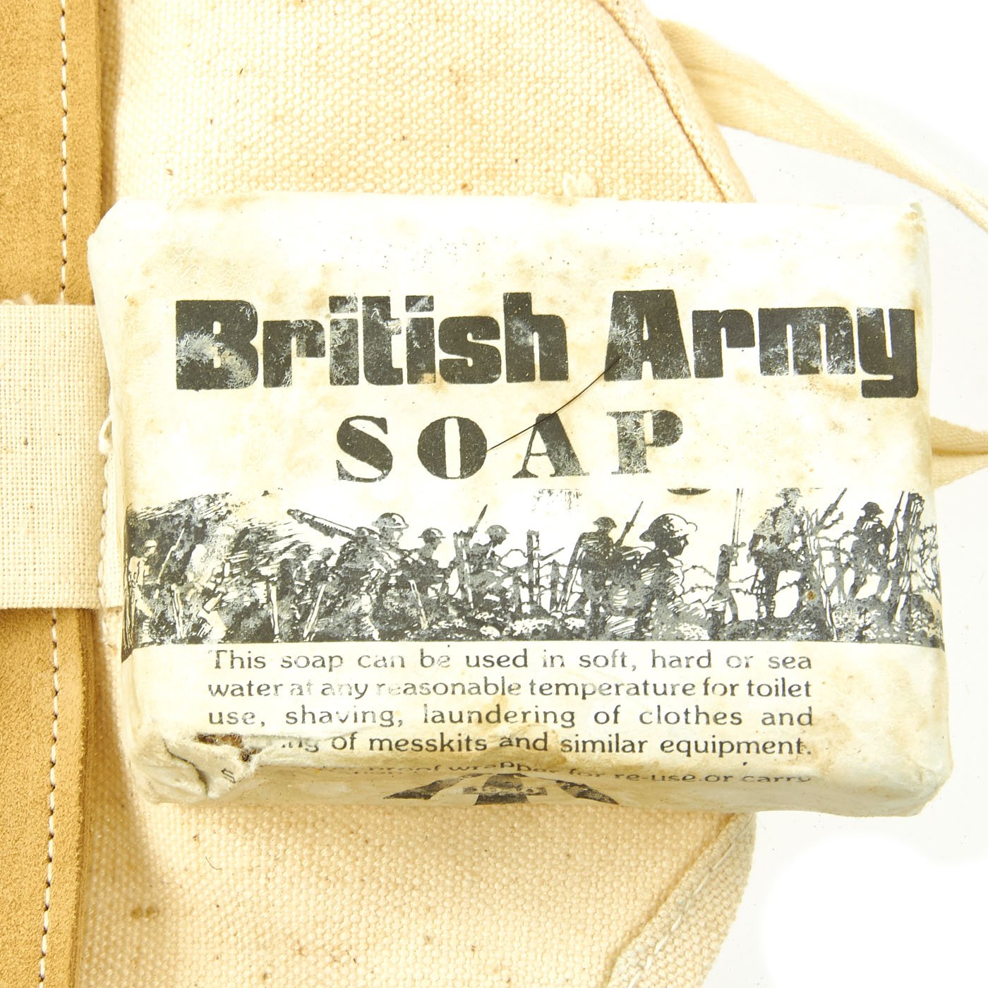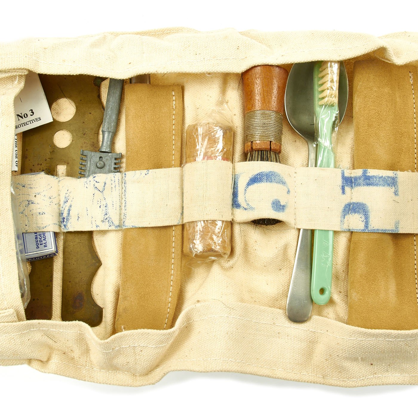 Original Item: Only One Available. This is a fantastic find! A collector's dream, in a manner of speaking. We purchased set this at a recent military show, and it is all contained in a very nice British WWII Pattern 1937 (P-37) Small Pack, in the correct Khaki Color. The collector who owned this previously apparently assembled this fine set during the late 1990s, purchasing the individual components, which are listed on a very nice hang tag, complete with details of the makers markings and dates! We assume that all of this information is correct, as some of the markings are quite faded. Please consult the photographs for condition and other details. Pack measures about 11" x 10" x 5" fully packed.