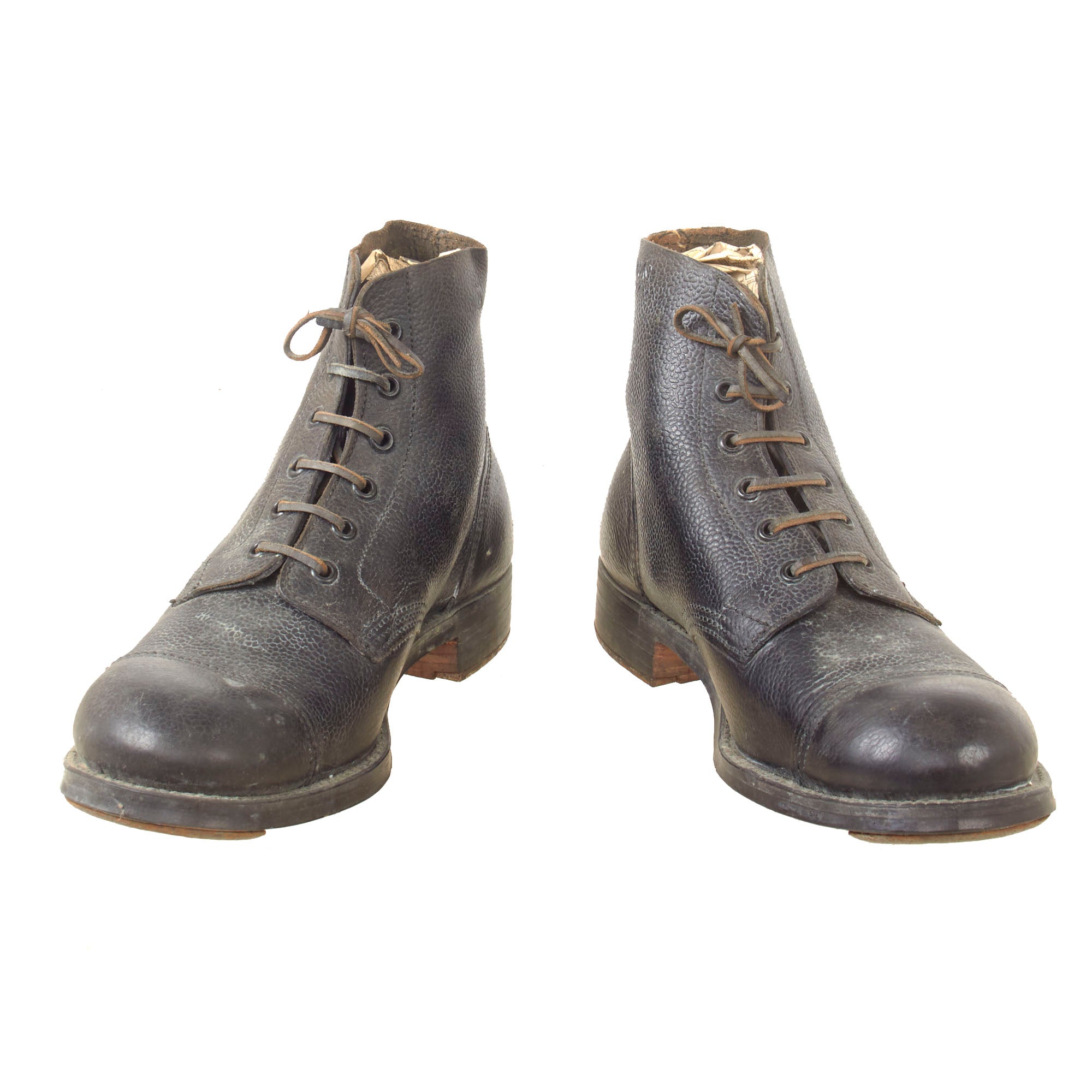 Original Items. Only One Set Available. Ammunition boots are a family of military footwear originating from the United Kingdom. They were the standard combat boot for the British Army and other affiliated forces around the British Empire and Commonwealth from at least the mid-1860s until their replacement a century later in the 1960s with the Boot, Direct Moulded Sole, essentially Ammunition boots with direct moulded soles which were ultimately replaced by the Boot, Combat High in the mid-1980s.
