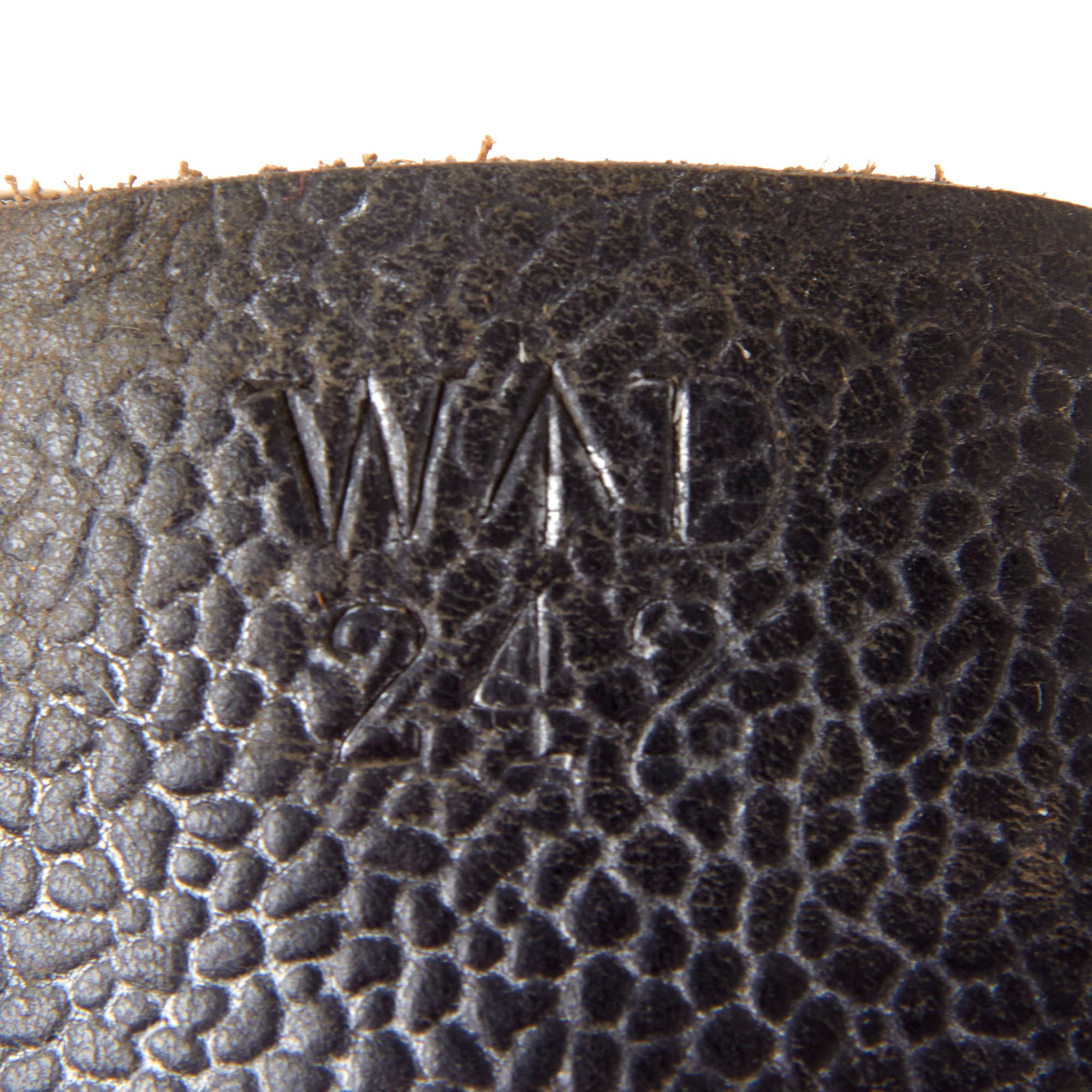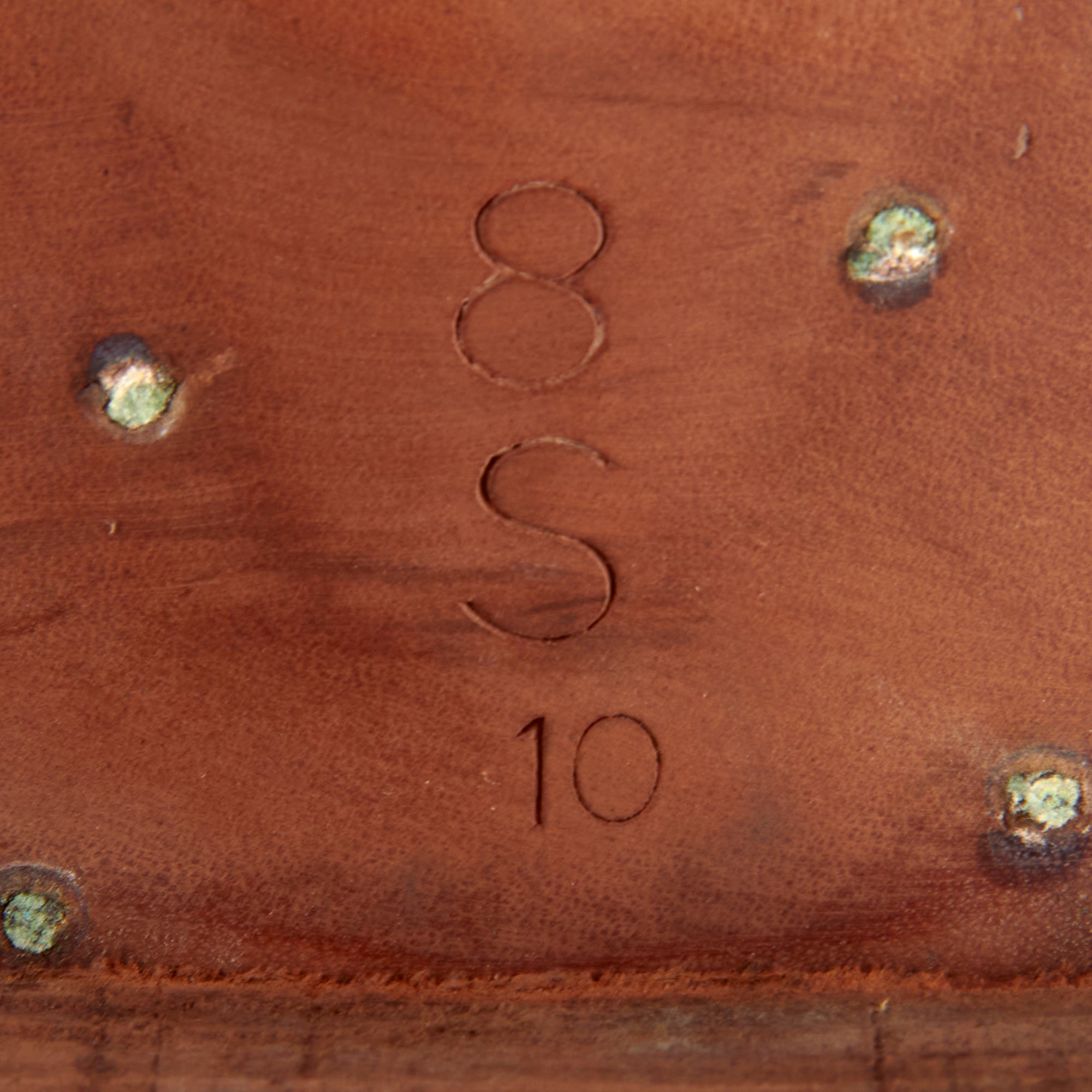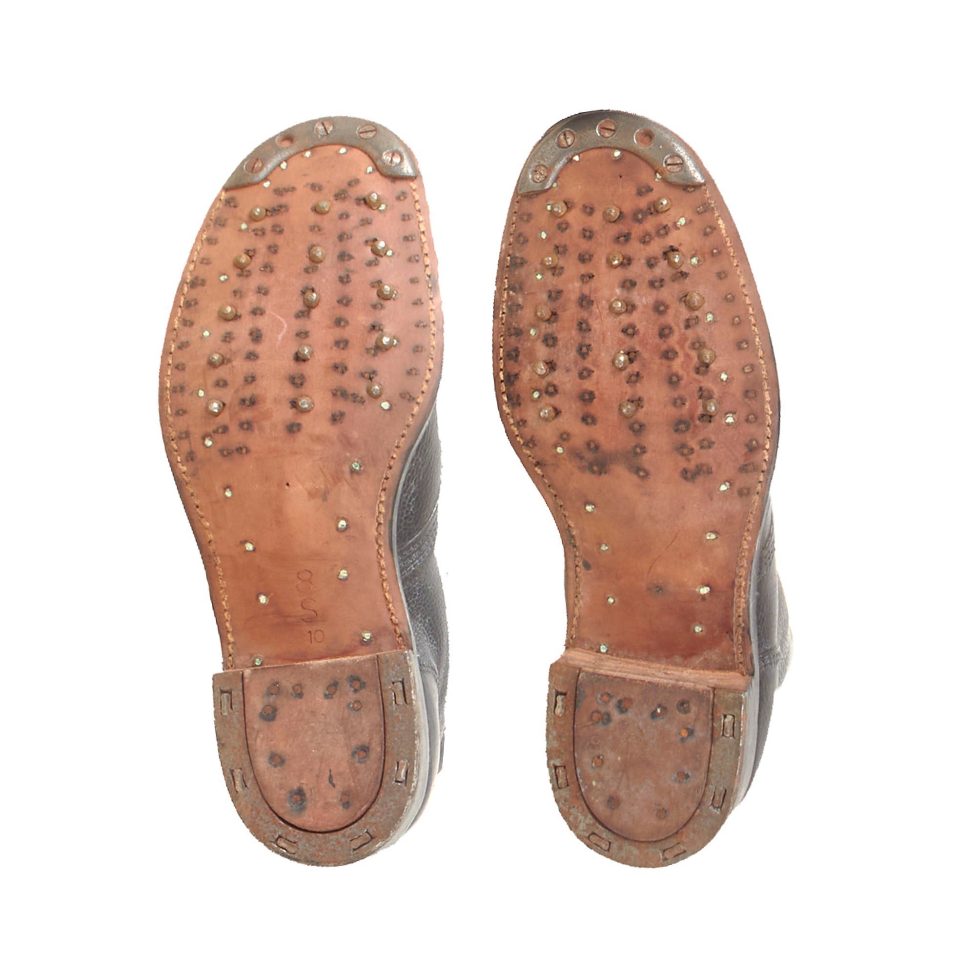 This denotes a date of 1942. Both boots retain their hobnails and toe plates, each with 4 screws despite there being 5 holes.