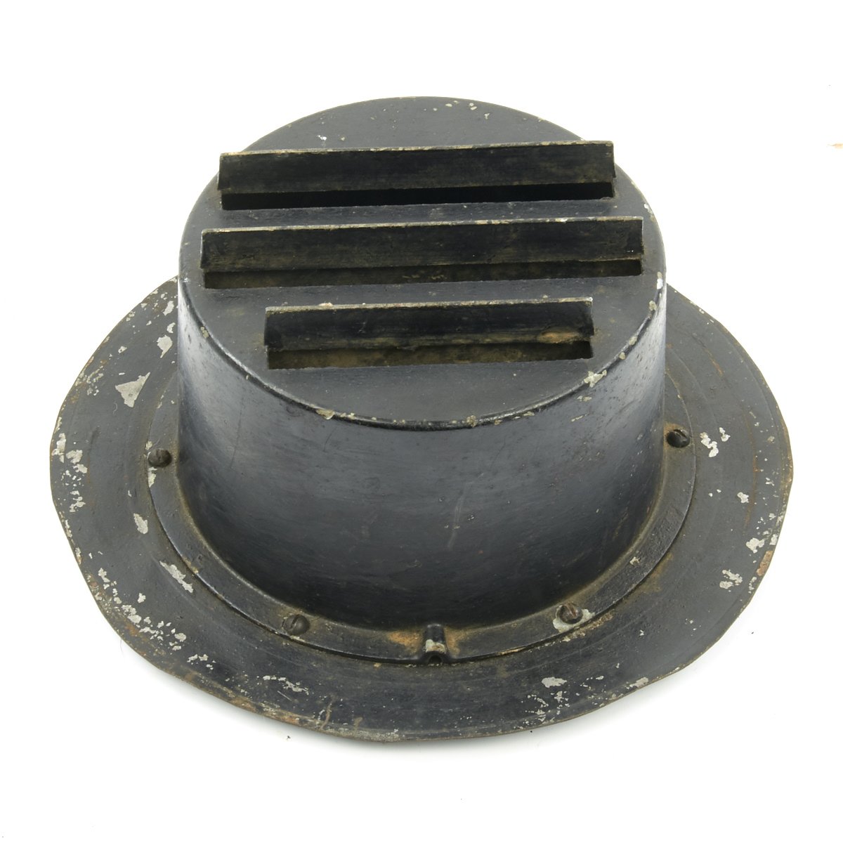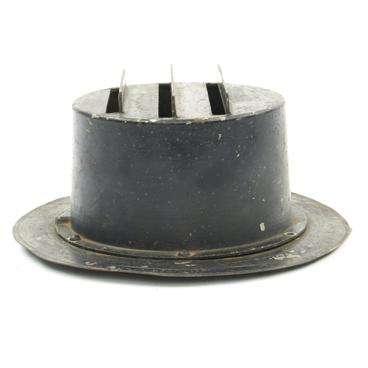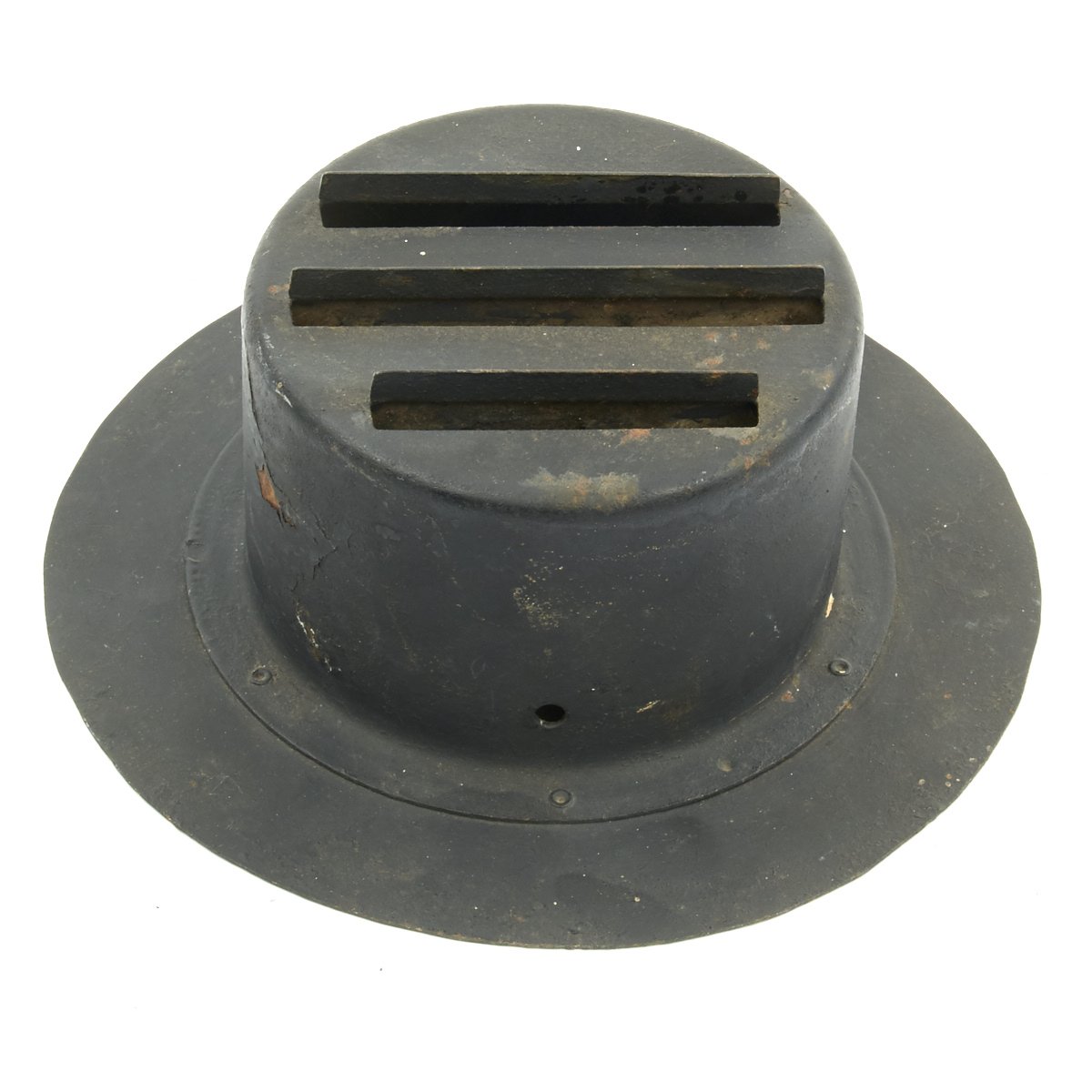 These examples blot out all light save for a three thin slivers that emerge from the hooded slots. These small slit windows ensured that minimal light was visible from above, a necessity during a night Air Raid, when any light source could become a target. While the light produced was small, it was still enough for slow speed navigation during the blackouts.