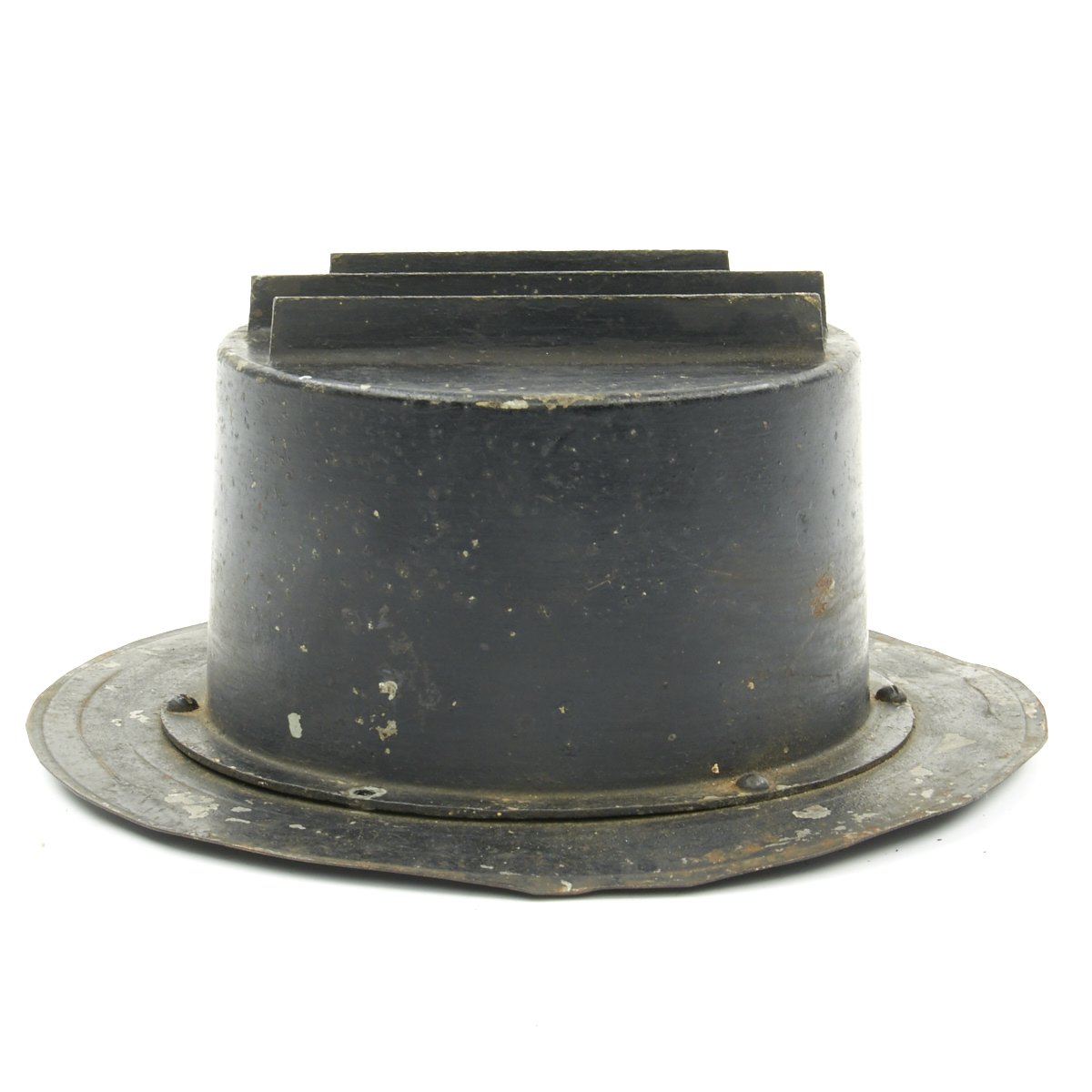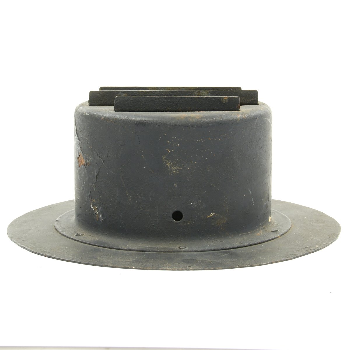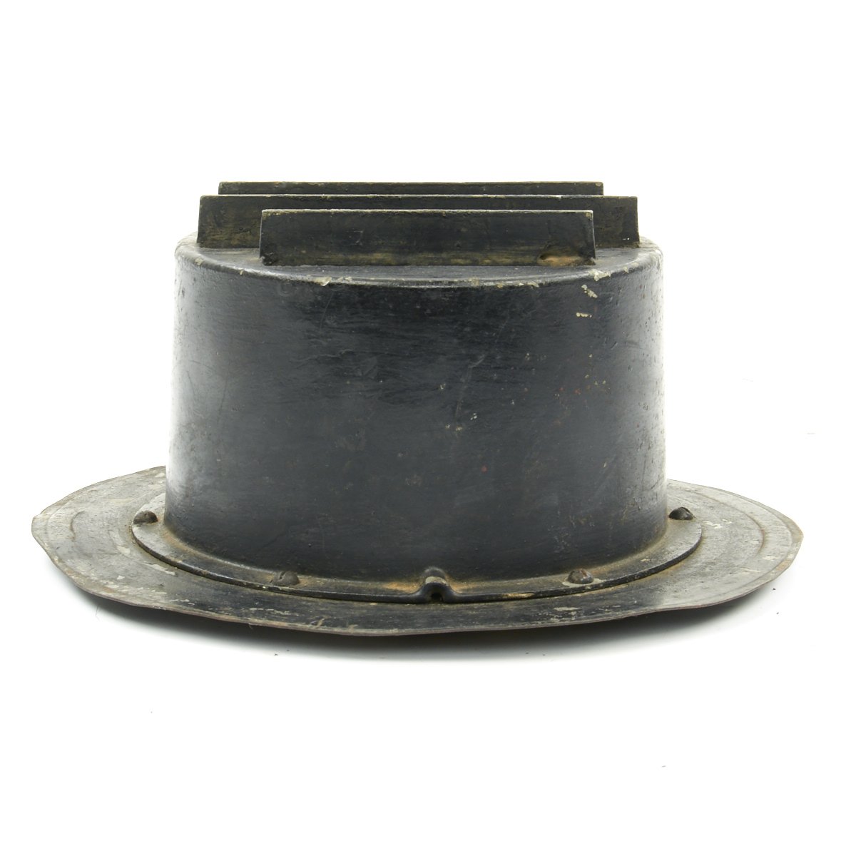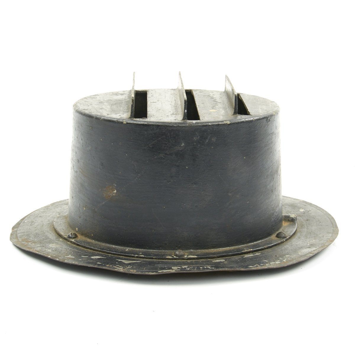 These examples blot out all light save for a three thin slivers that emerge from the hooded slots. These small slit windows ensured that minimal light was visible from above, a necessity during a night Air Raid, when any light source could become a target. While the light produced was small, it was still enough for slow speed navigation during the blackouts.