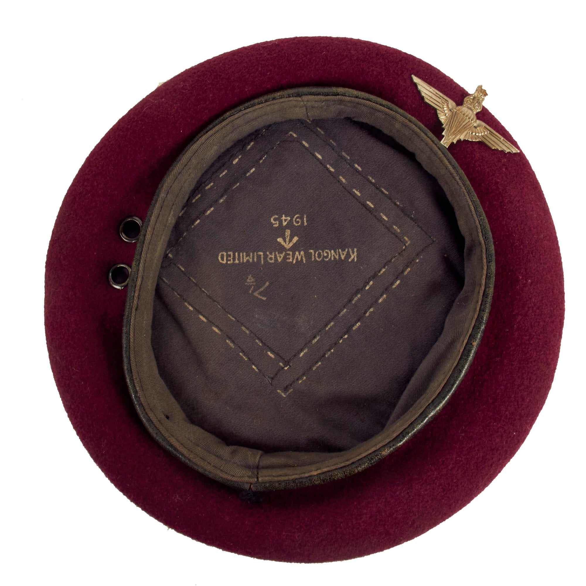 Original Item: Only One Available. This is a fantastic late war maroon beret as worn by the British Parachute Regiment “Red Devils” during WWII. The beret does show wear but nothing extensive and still retains a lovely insignia on the front and complete maker information on the top lining.