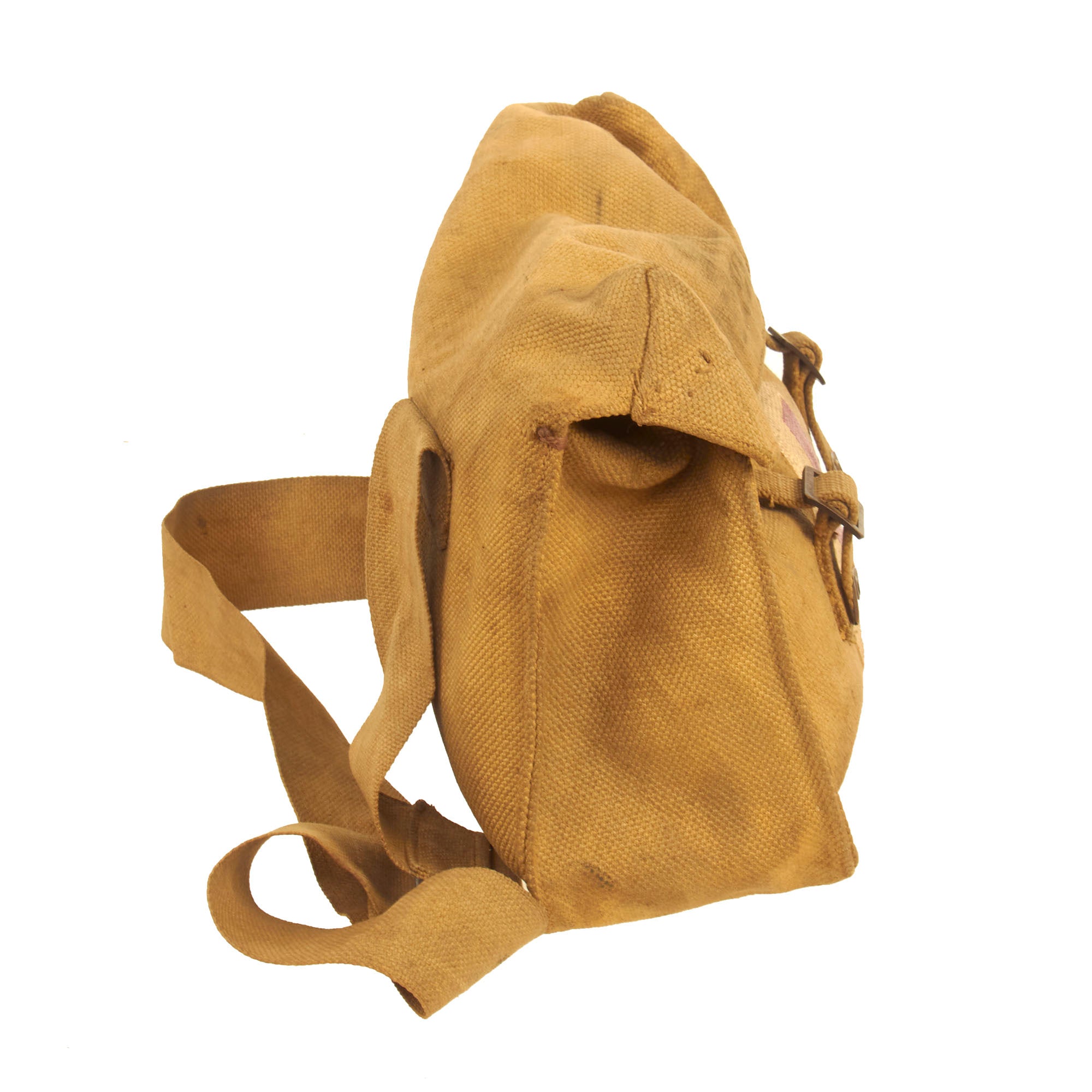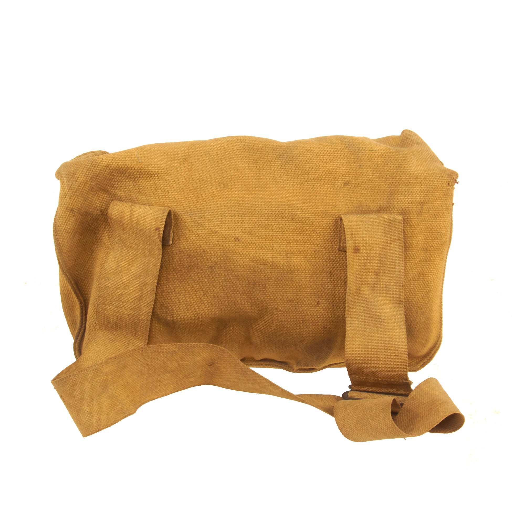 Original Item: Only One Available. This is a lovely service used condition British WWII Pattern 1937 (P-37) Medic's Shoulder Bag, which definitely looks to have seen some real use in the field. The bag measures about 12"W x 10"W x 3", though as it is flattened it is hard to get an accurate measurement. It is made of the correct P-37 Khaki Canvas, and is the uses the standard strap through buckle closure for the lid. The shoulder strap is made of somewhat finer canvas.
