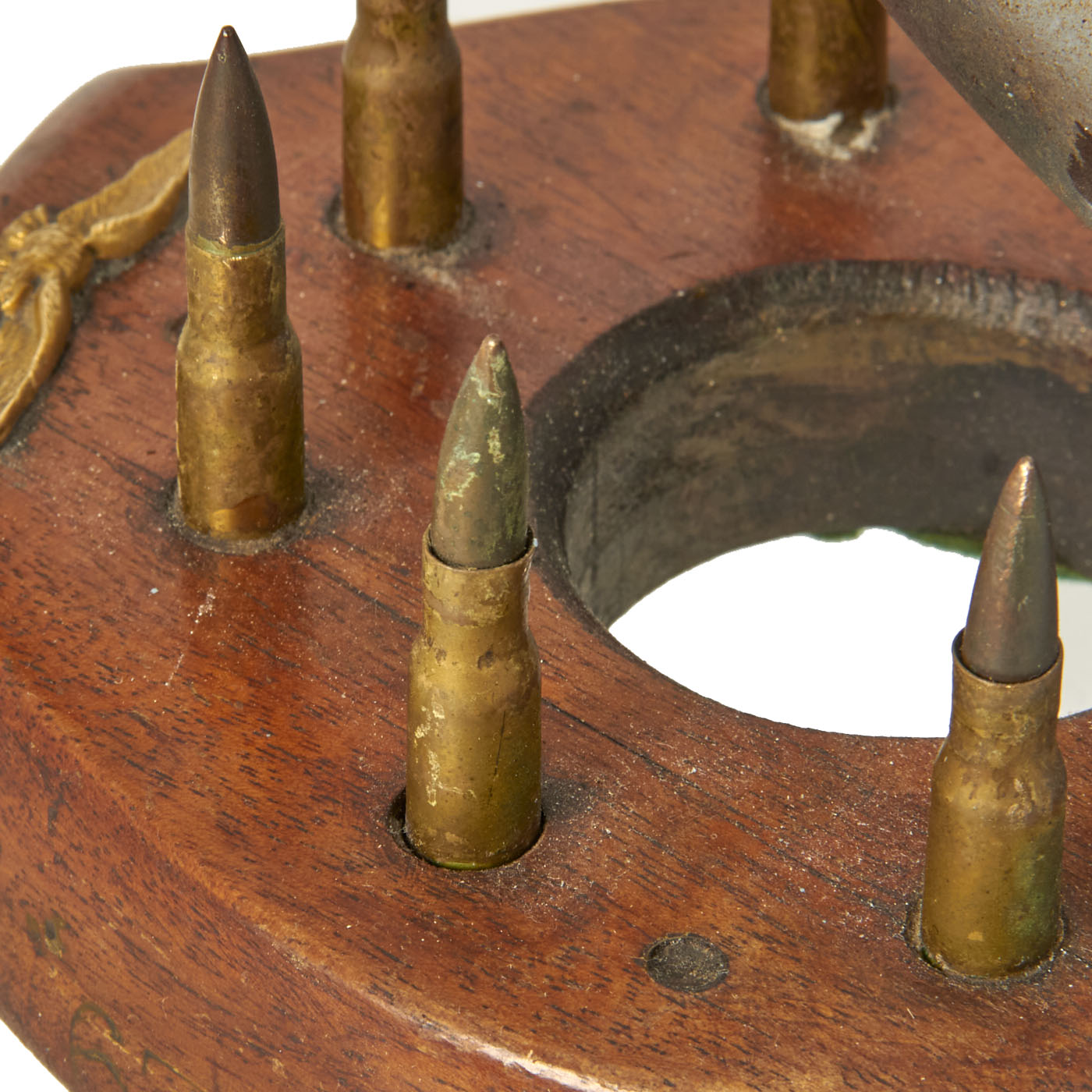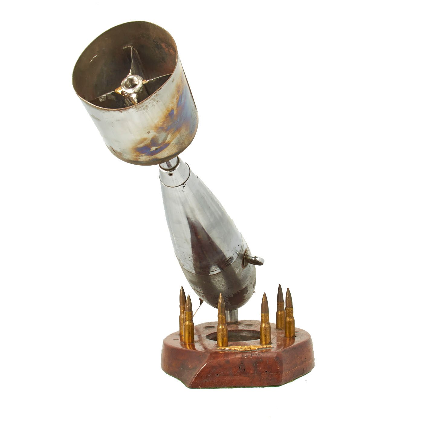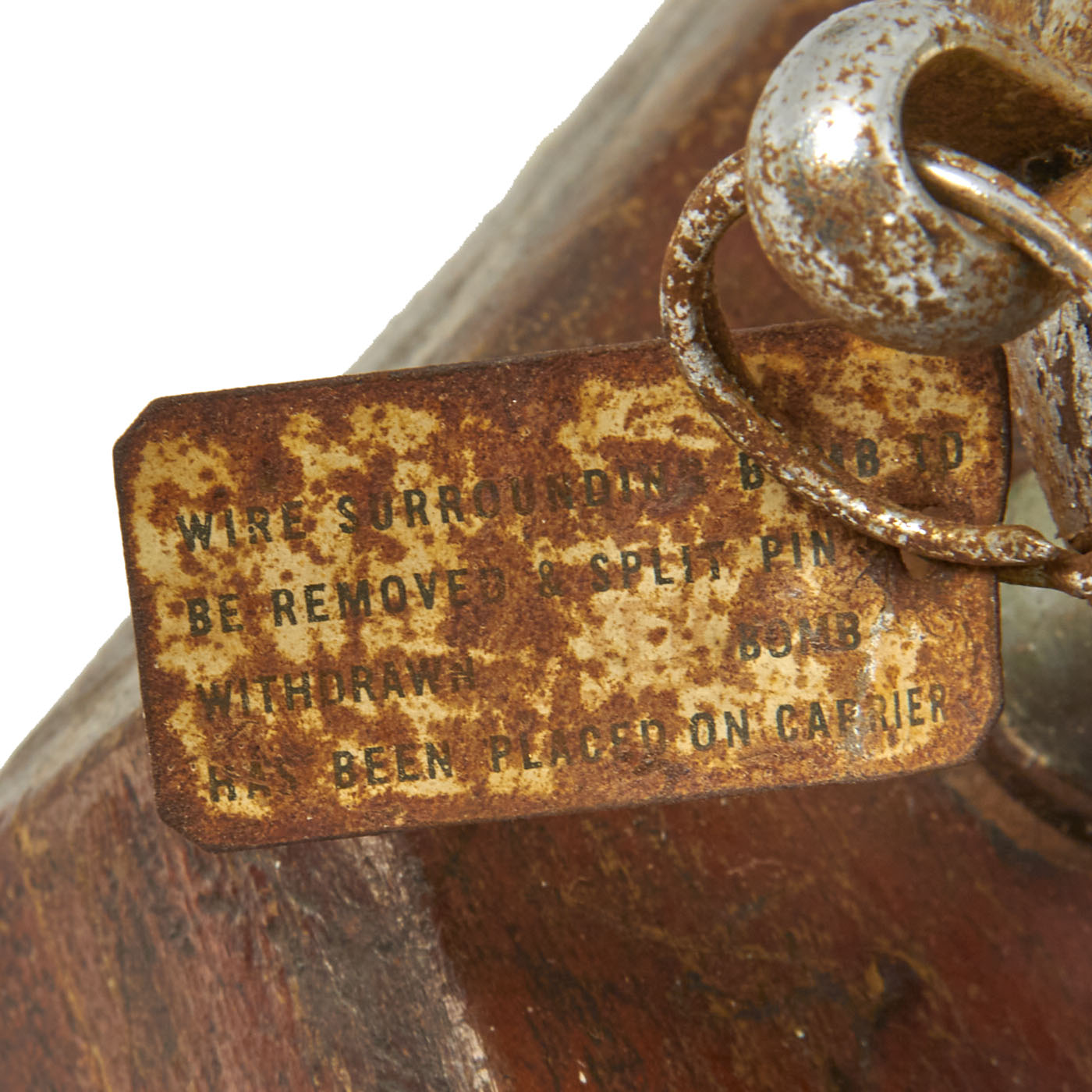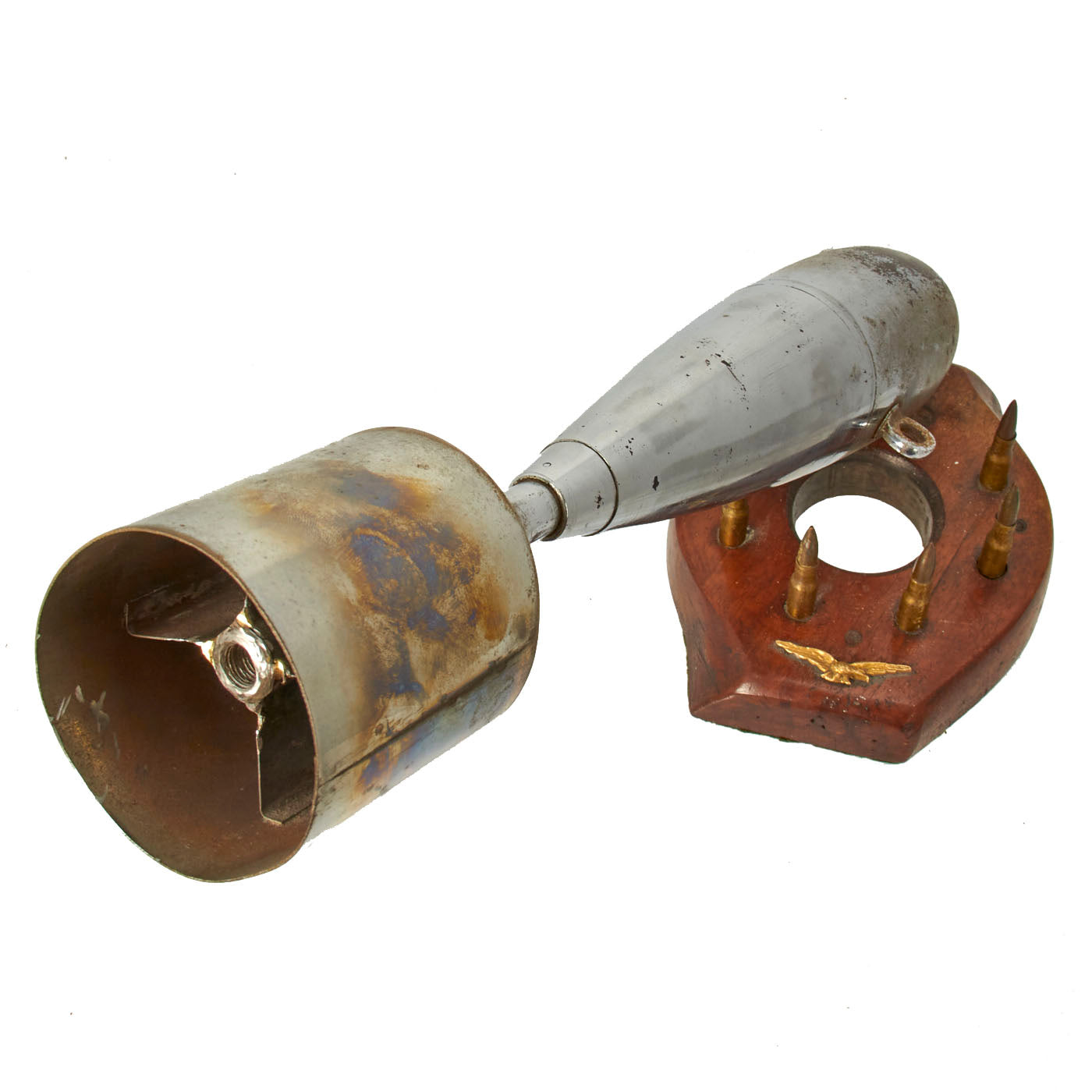 - Original Item: Only One Available. Genuine World War Two Royal Air Force 10 pouch practice bomb mounted on a cross section of a wooden propeller adorned with ammunition and a gilt RAF eagle insignia. Bomb measures 18" long. A fantastic desktop trench art display from WW2.