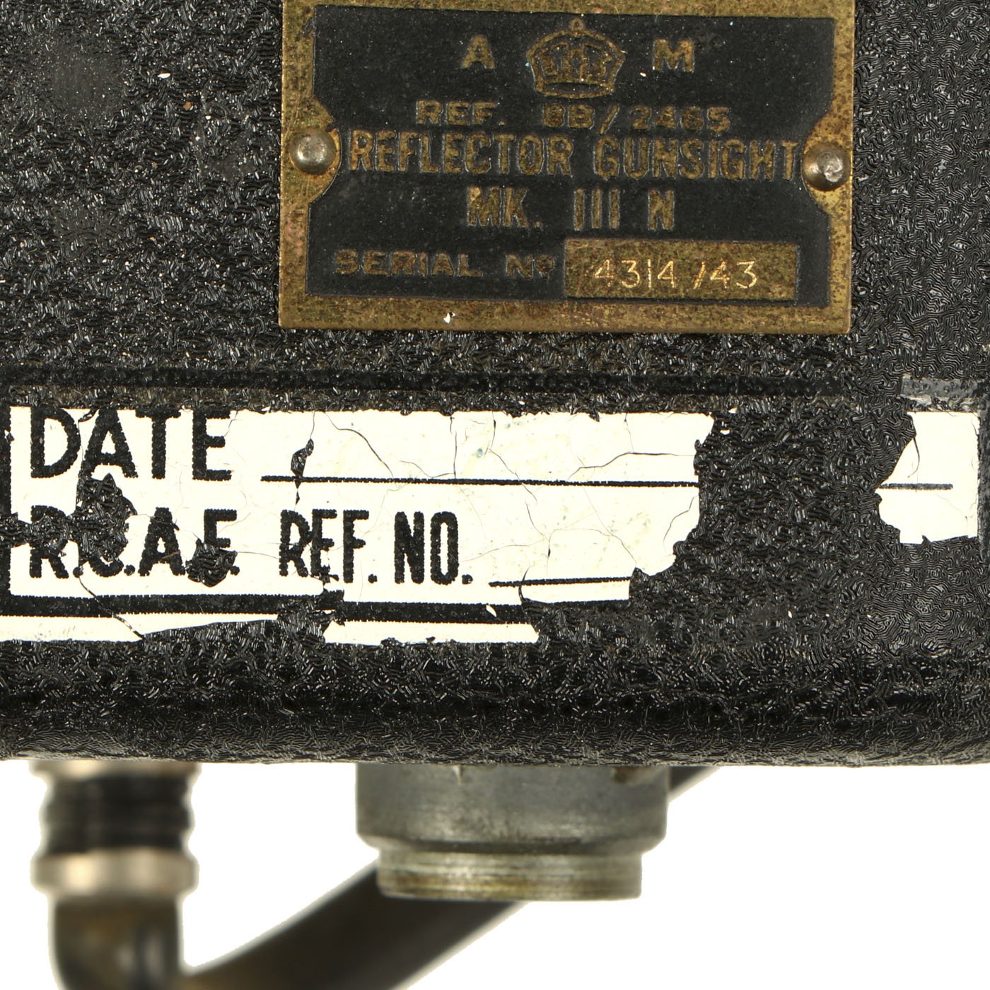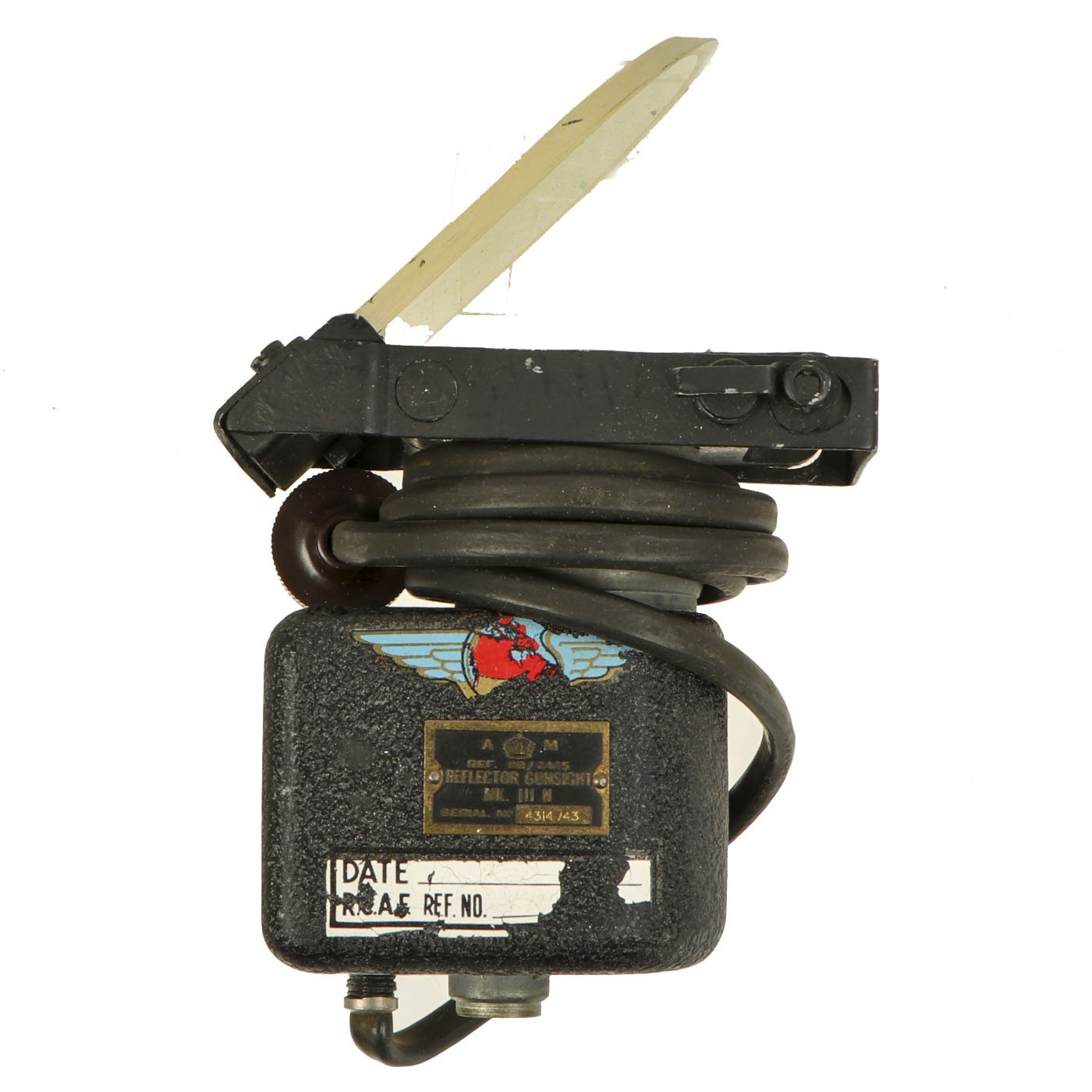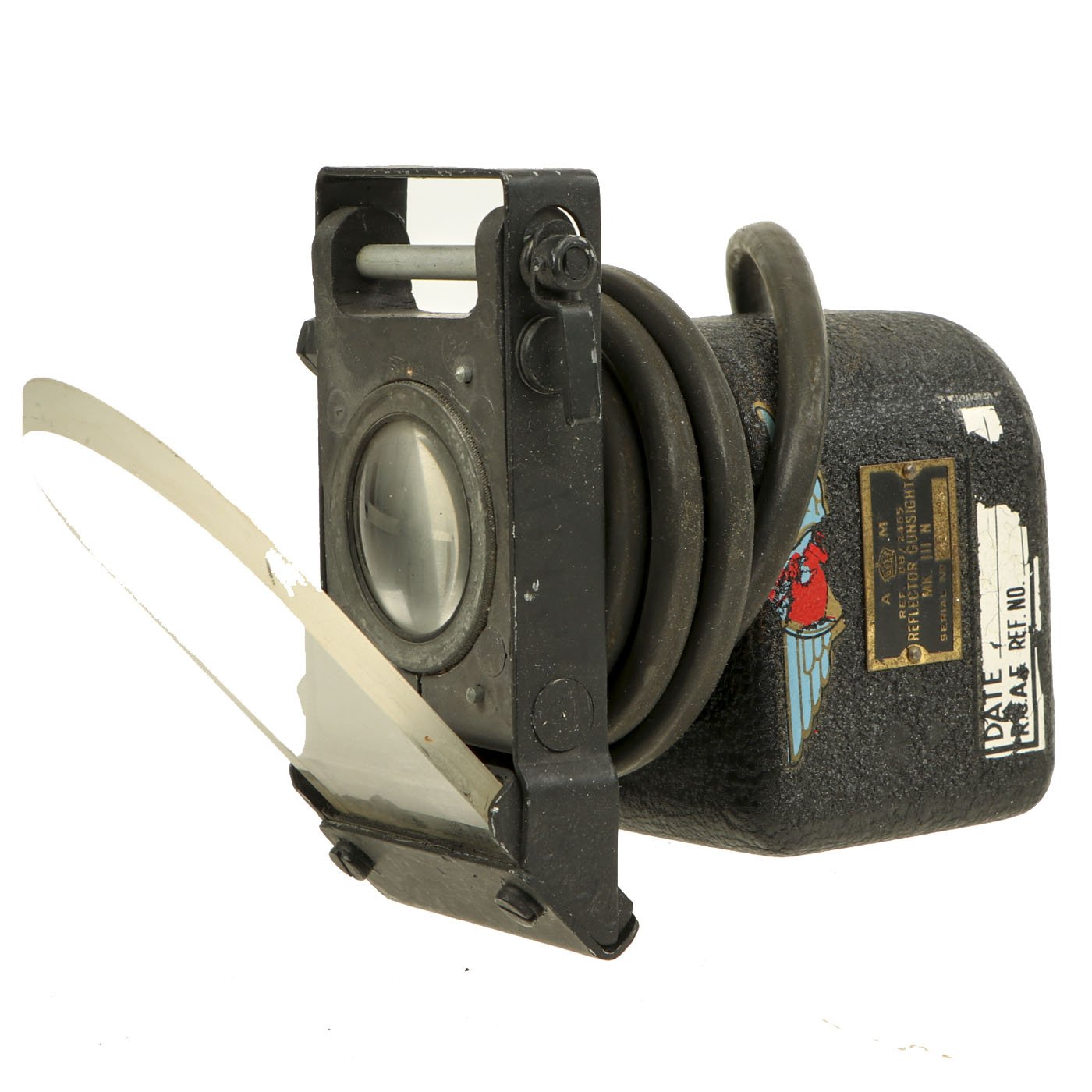 Original Item: Only One Available. This is a very nice British Air Ministry marked Royal Air Force 1943 dated reflector gun sight as used by turret gunners in RAF Bomber Command during World War Two. It is nicely marked with stat plate that reads: