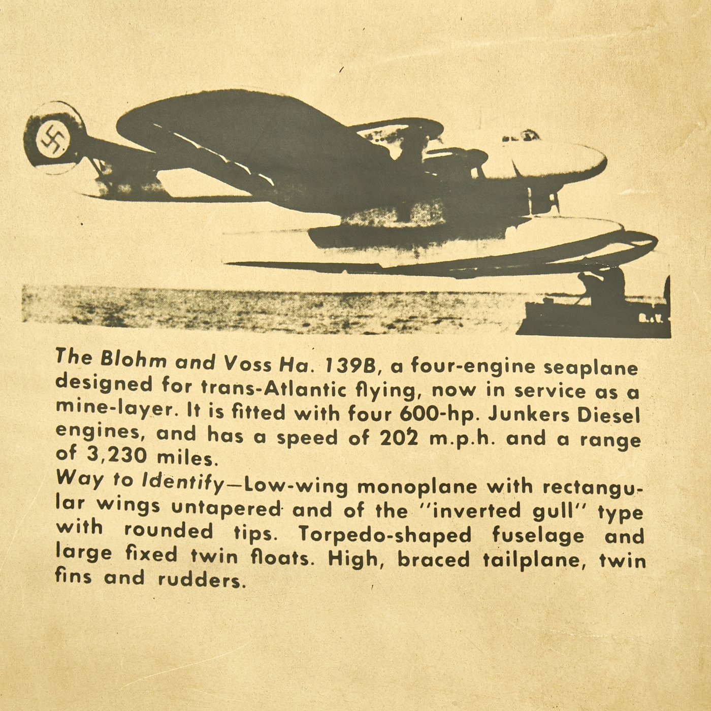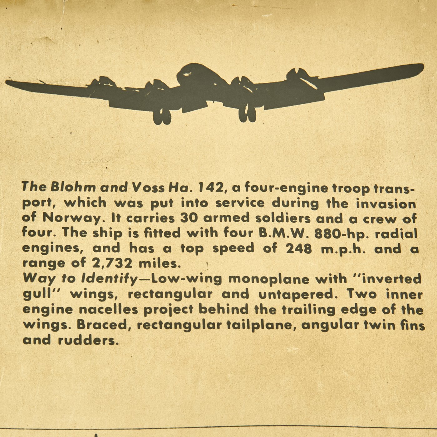 Original Items: One set of 3 Posters. During WWII, one of the biggest issues regarding the new use of Aircraft was that many look very similar. Learning to differentiate and identify the multitude of Airplanes in use was key to successful air combat. One did not want to expose any aircraft to friendly fire, and likewise did not want to let an enemy aircraft avoid detection.