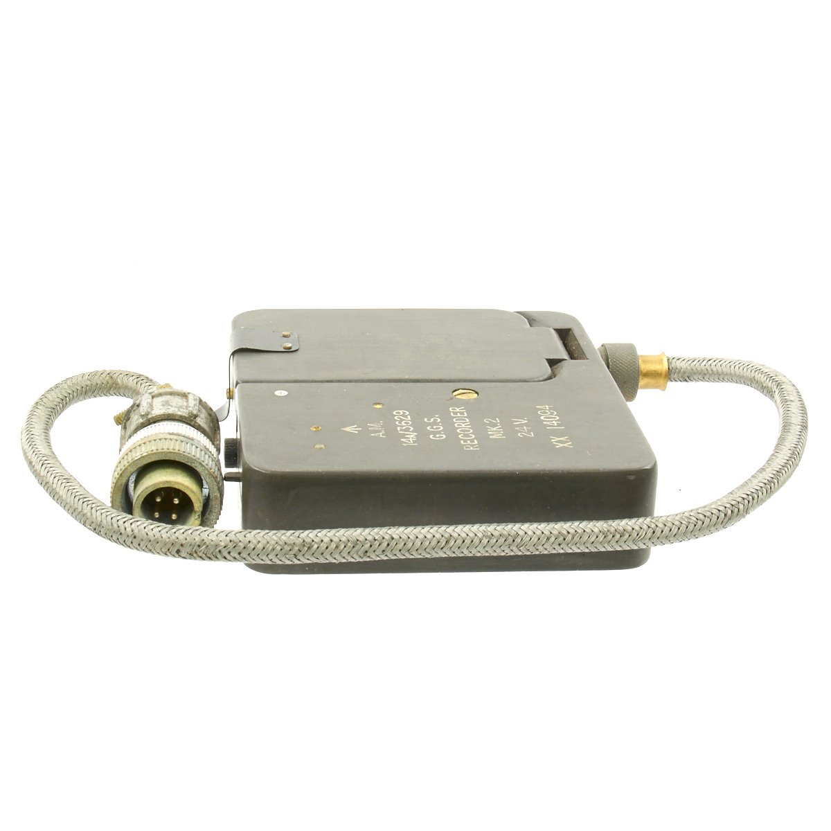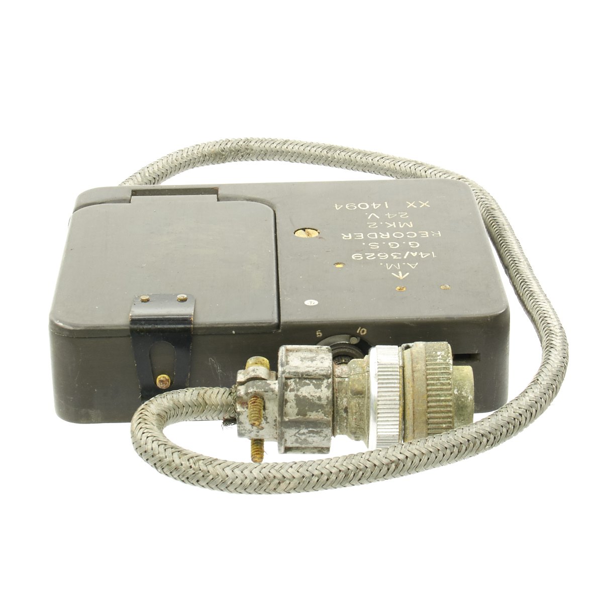 It was often useful post combat to examine how well the G.G.S and fighter pilot were tracking. The recorder clipped into the gun sight, and the small aperature on the bottom of the recorder reflects onto the lens. The recorder has a 24V power cord which plugged into side of the sight.