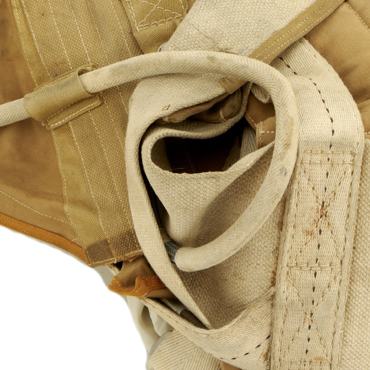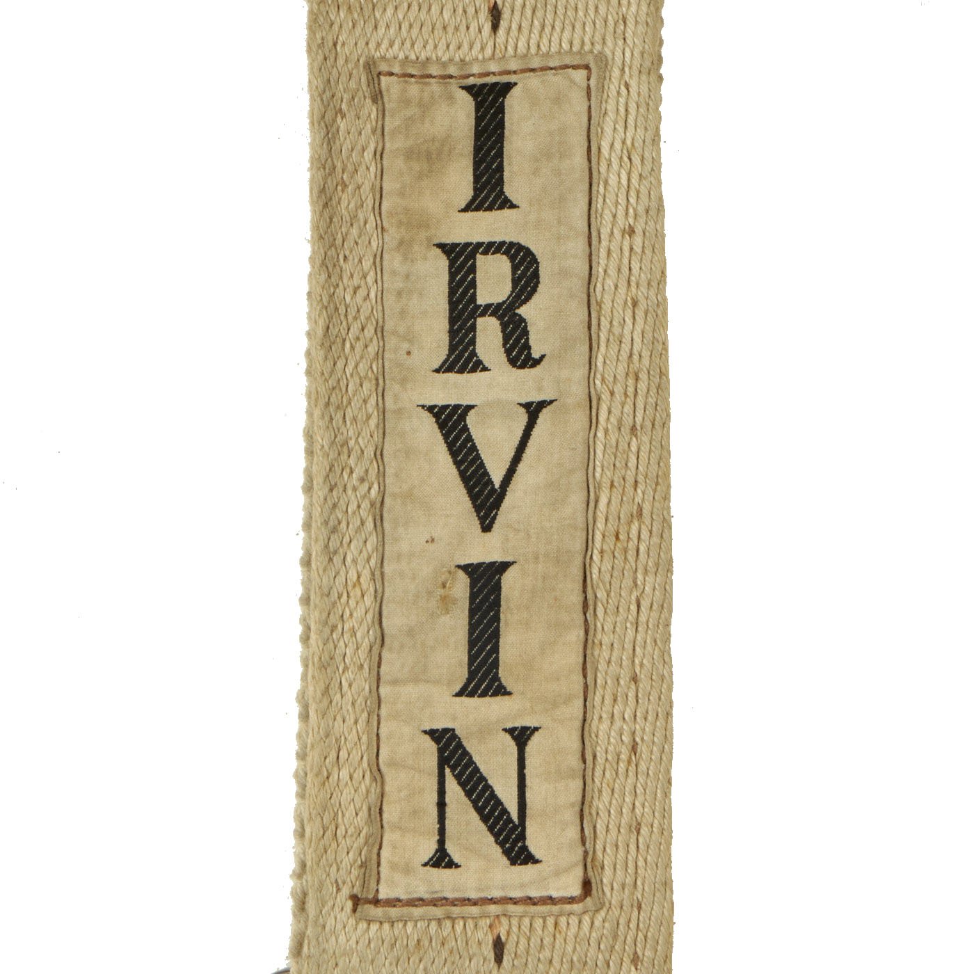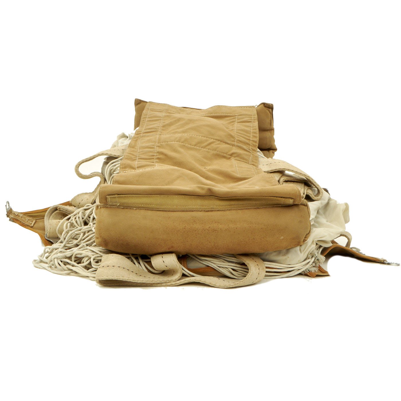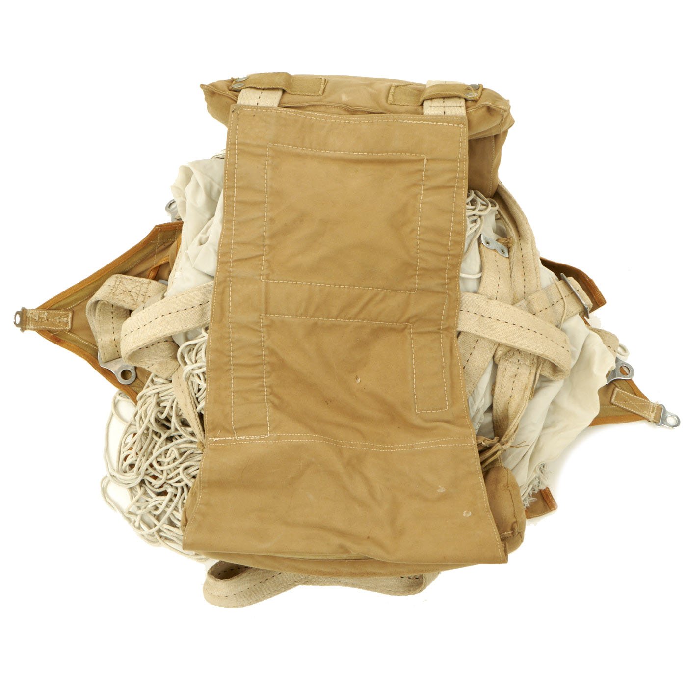 - Original Item: Only One Available. Royal Air Force Parachute, Single point, quick release. Commonly referred to as the 'pilot's parachute'. Classic white webbing with a central pale red/black fleck. Quick release (QR) box missing. The webbing harness is in very good clean condition. There is and Irvin Air Chute of Great Britain label with patent numbers. Parachute pack itself is in the usual sand colored canvas. Original Canopy is included, some parts of the pack/harness are absent but overall appears to be in very good condition.