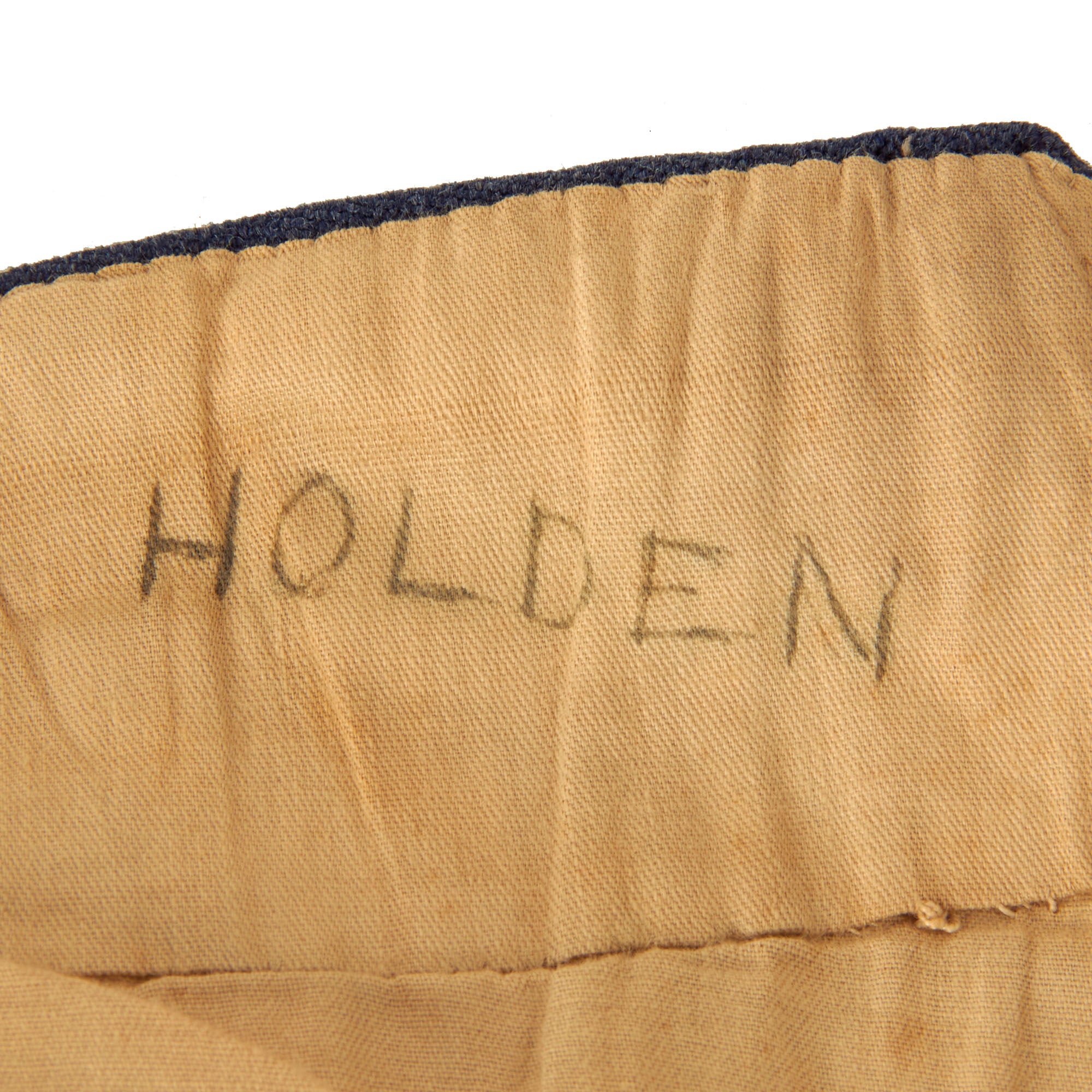 The uniform itself is in wonderful condition and does show signs of wear, but is presented without any extensive damage. There is some slight tearing to the interior lining, but nothing that takes away from the beauty of it. There are no names present in the coat, only the name HOLDEN can be found written on the inside of the trousers. All buttons are present and the ribbons and devices appear to be original to the uniform.