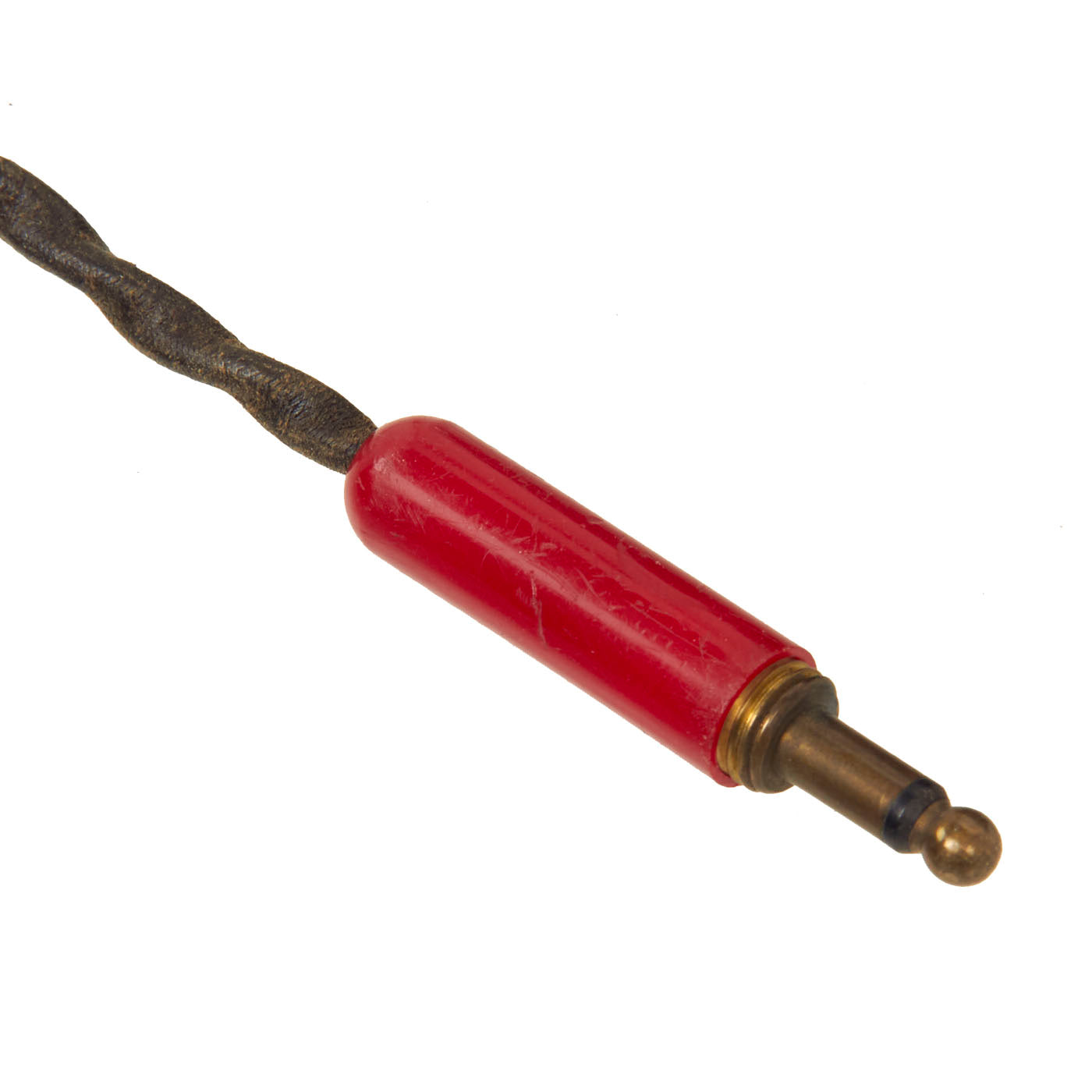 Overall condition is nice, though it does show wear from use and age, especially on the interior. The elastic in the chin strap still works. There are markings in the left ear interior, though they are difficult to read. Exterior leather is in good service worn condition.
