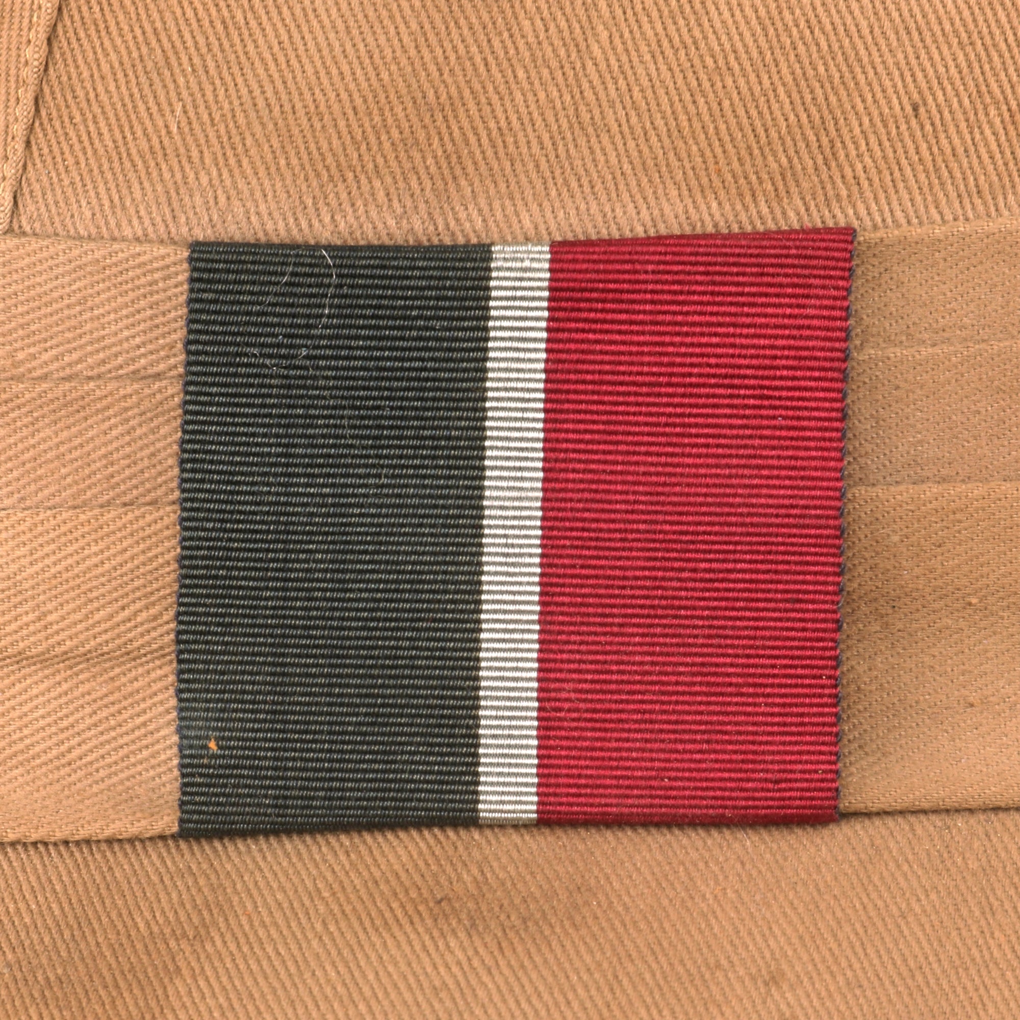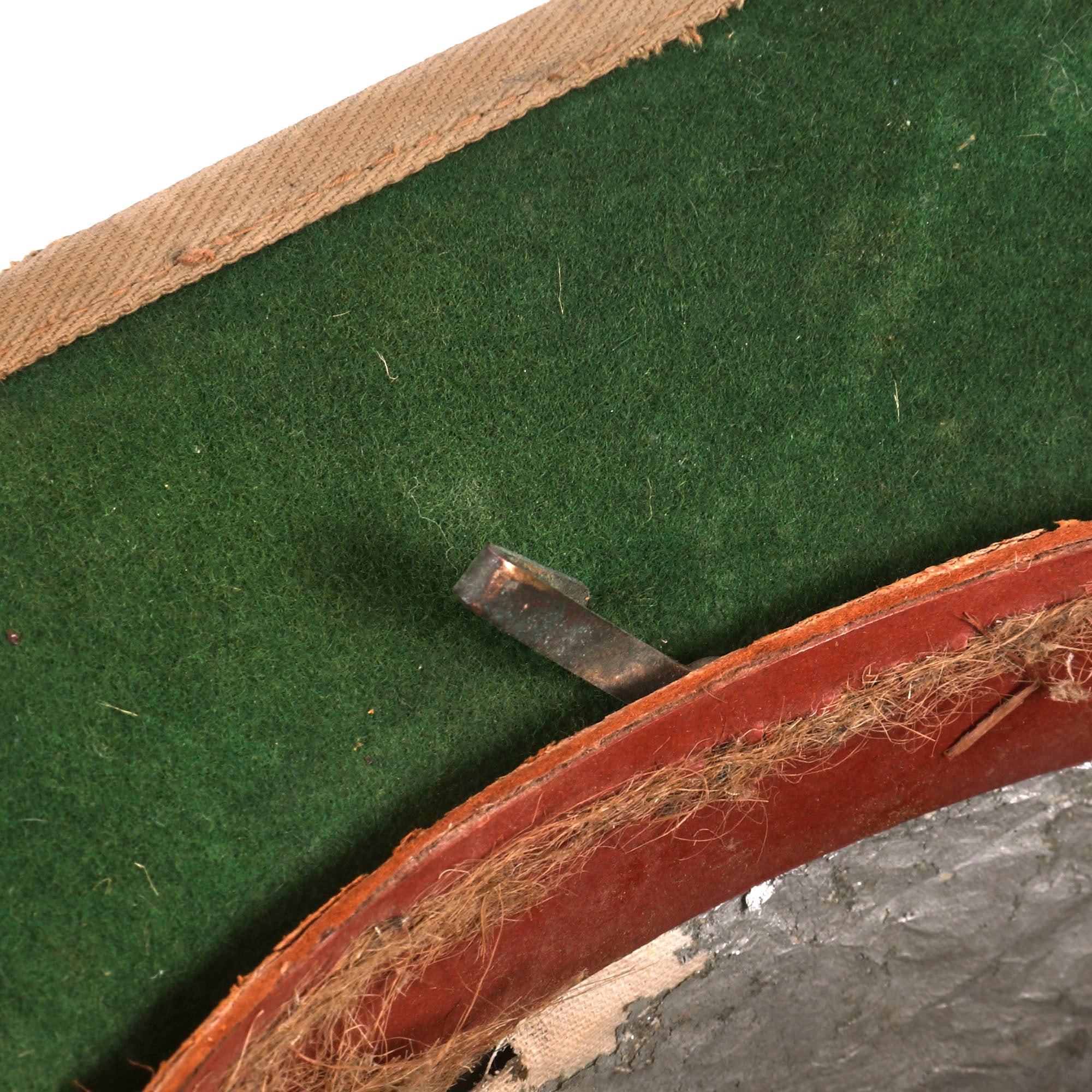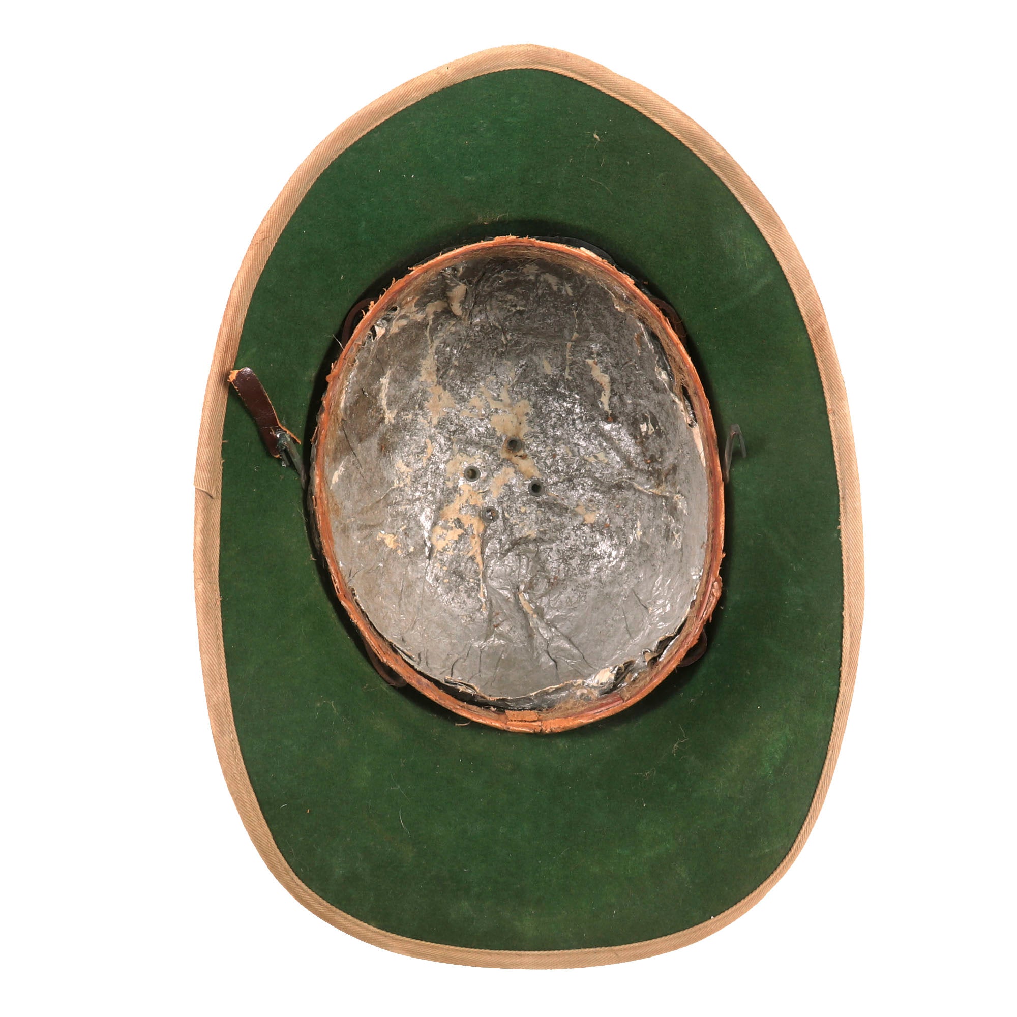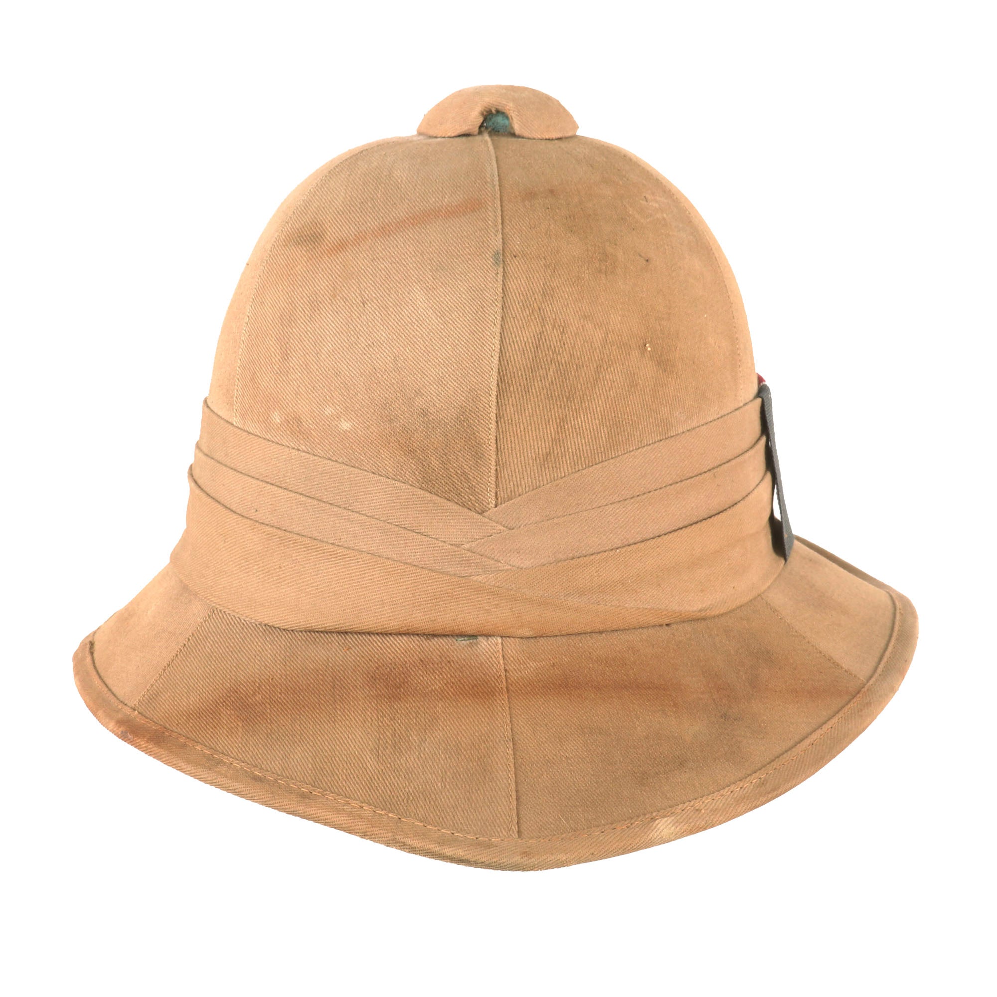 Original Item: Only One Available. The Wolseley pattern helmet is a distinctive British design developed and popularized in the late 19th and early 20th century. It was the official designation for the universal sun helmet worn by the British Army from 1899 to 1948 and described in the 1900 Dress Regulations as "the Wolseley pattern cork helmet". With its swept-back brim it provided greater protection from the sun than the old Colonial pattern helmet, and its use was soon widespread among British personnel serving overseas as well as some Canadian units.Offered in splendid original condition, this WWII Wolseley Pattern pith sun helmet features a Royal Air Force Flash on the left side of the pugaree. A pugaree is the cloth wrap which surrounds the base of the exterior of the helmet.The helmet is in lovely condition overall without any extensive damage to the exterior. The chinstrap is entirely absent, as is the sweatband. The original under-band is intact, as is the tin-colored inner wrap which is almost always missing in these.The helmet is roughly Size 7. Comes ready for further research and display.