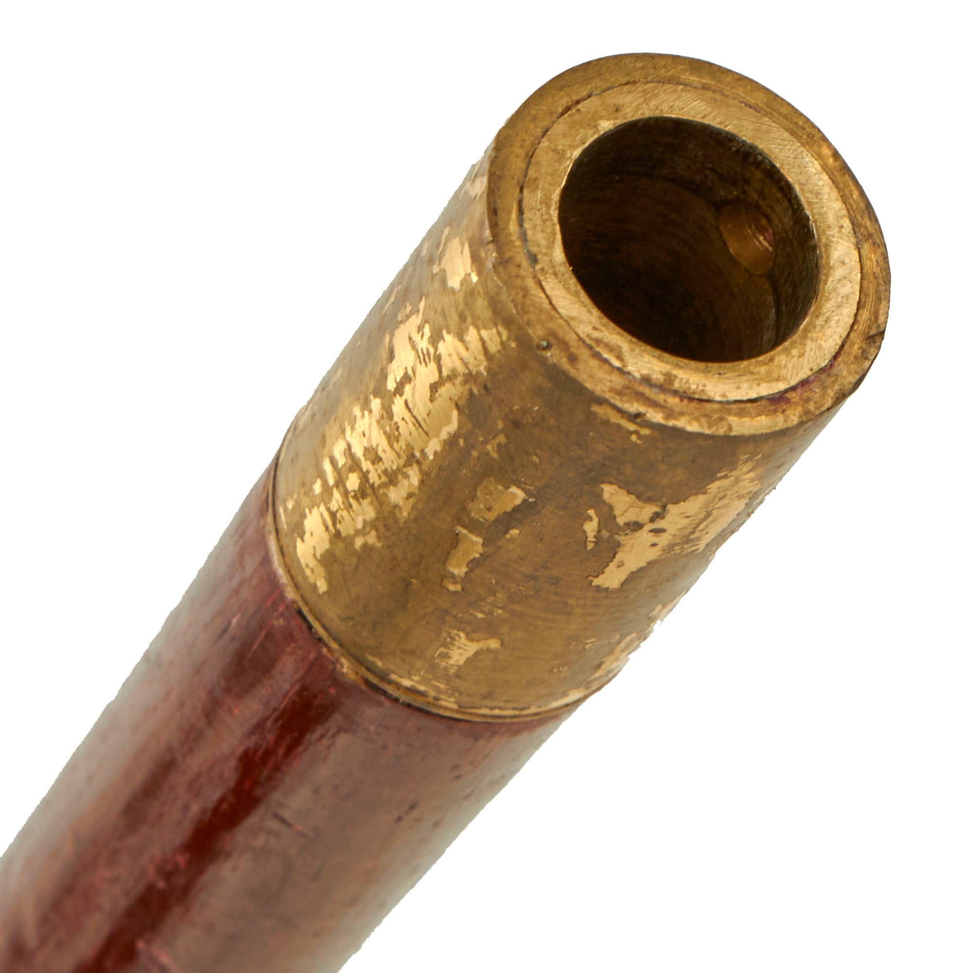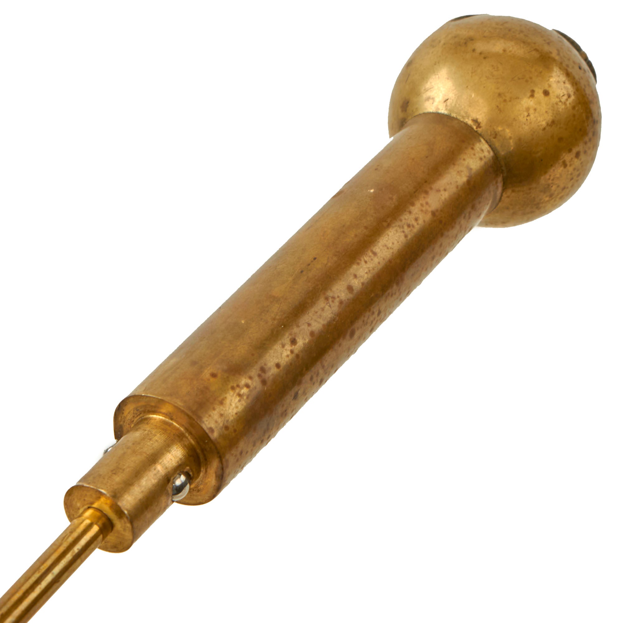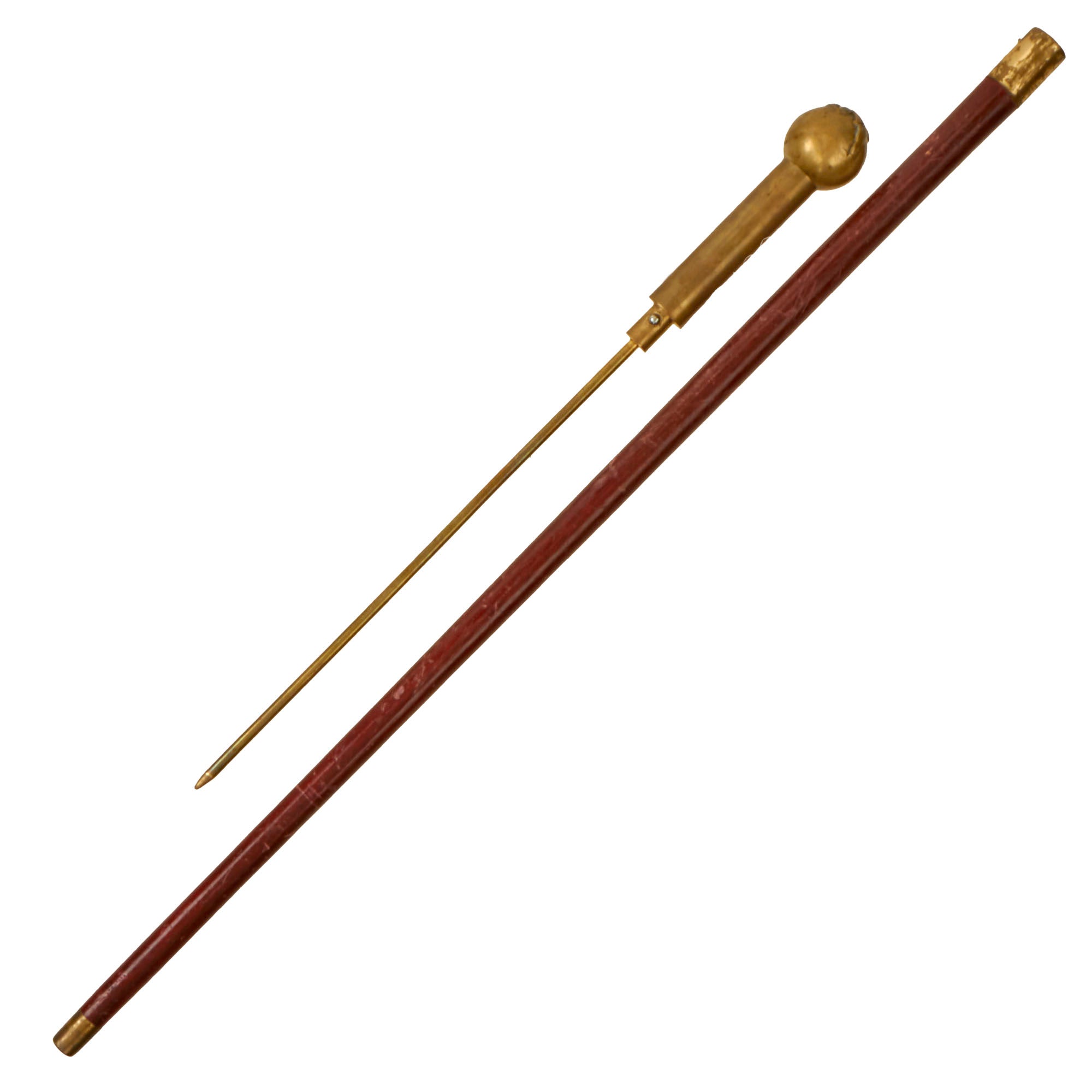 This example was certainly carried by an RAF officer during World War II, due to the Royal Air Force eagle badge attached to the heavy brass handle. This example measures 26½” overall and has a great 10” tapered & unscrewable “spike” blade. The handle also has two small beads that allow the stick to “lock” into place when sheathed.