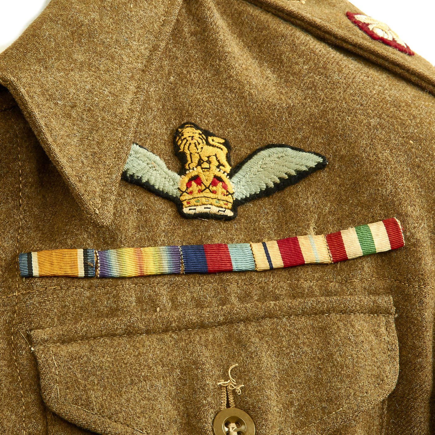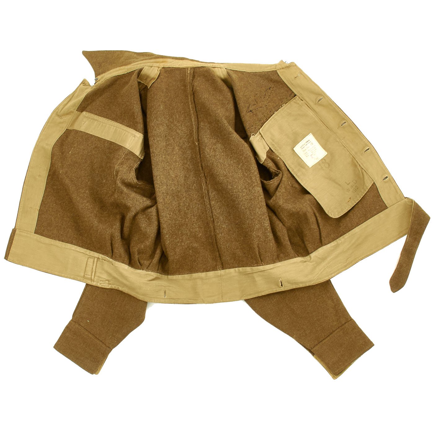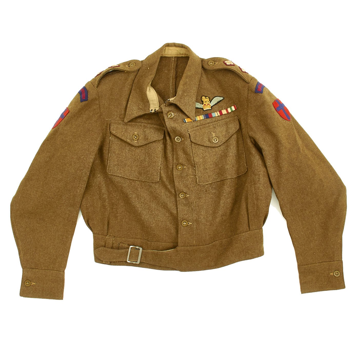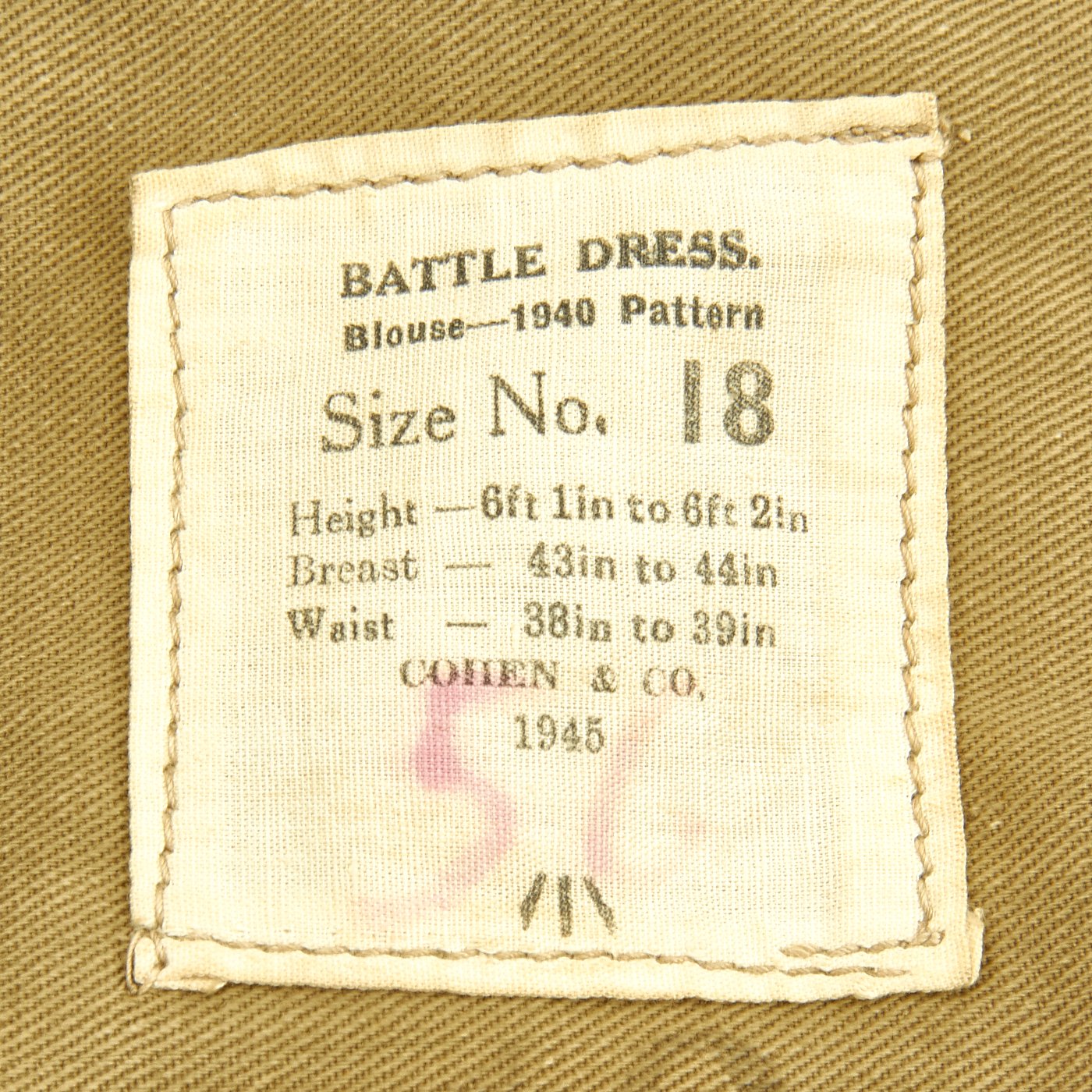 - WW2 British 1940 Pattern Battledress Blouse. It bears original data label to the interior is dated 1945 with Broad Arrow and manufactured by COHEN & CO. in Size No. 18. it is also stamped with a broad arrow by the war department. Features Royal Artillery Patches and 21st Army Group patches to both shoulders, a Glider Pilot patch to left chest along with multiple medal ribbons. The jacket is in very good condition. We cannot explain the Glider Pilot patch on the Artillery uniform so this could be a post war addition, but all patches do appear to be original.