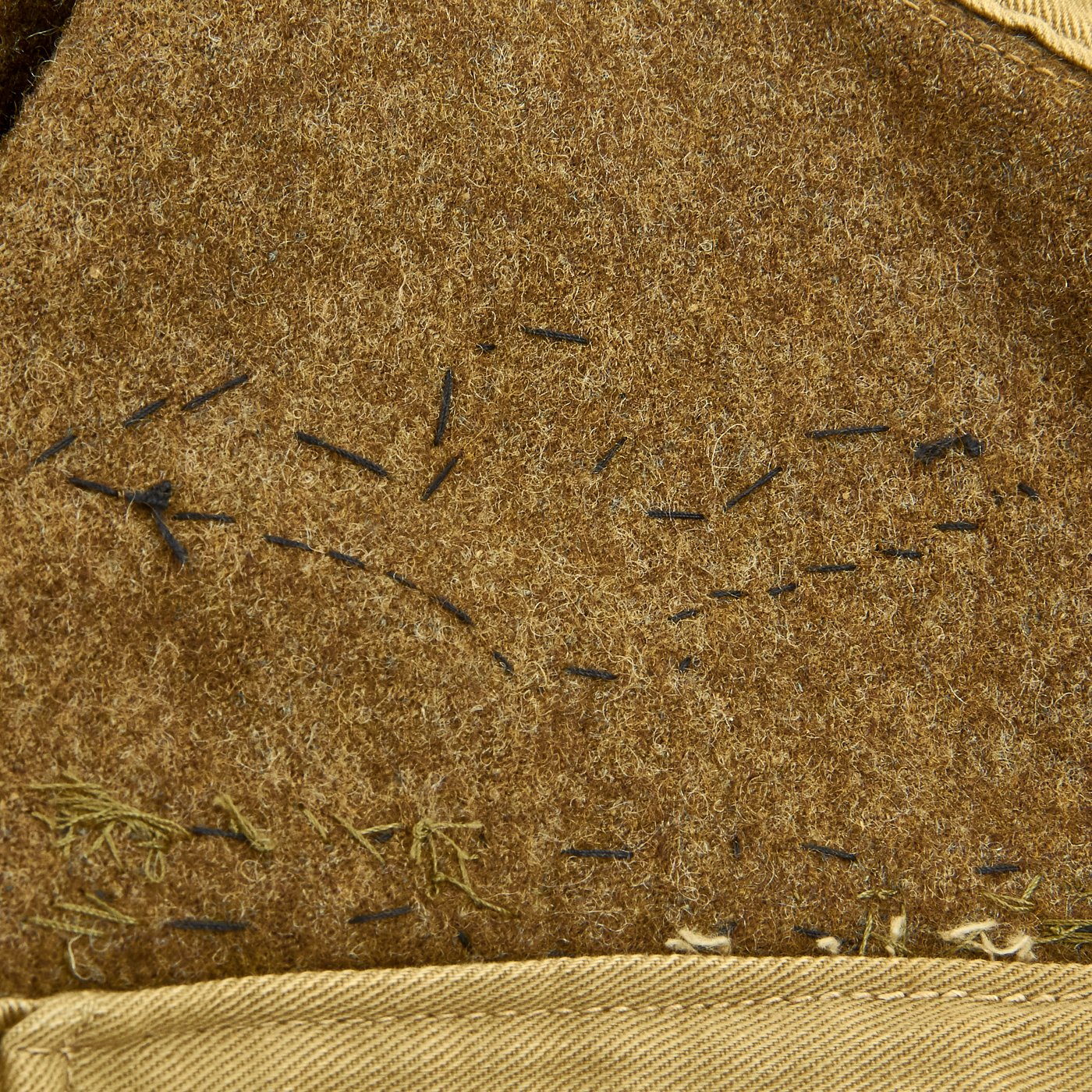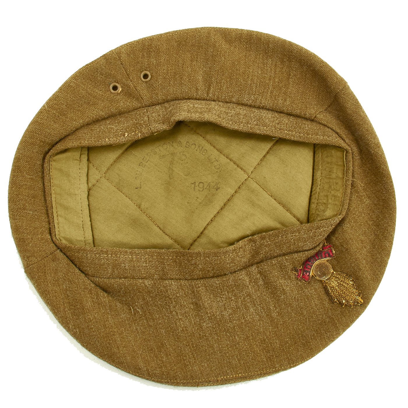 - WWII British Beret with Bullion embroidered Royal Artillery "flaming grenade" collar badge (worn because standard cap badge was often thought to be too large). The beret is nicely dated in the interior 1944 with maker information. Size is 7 5/8 and it is offered in very good condition.