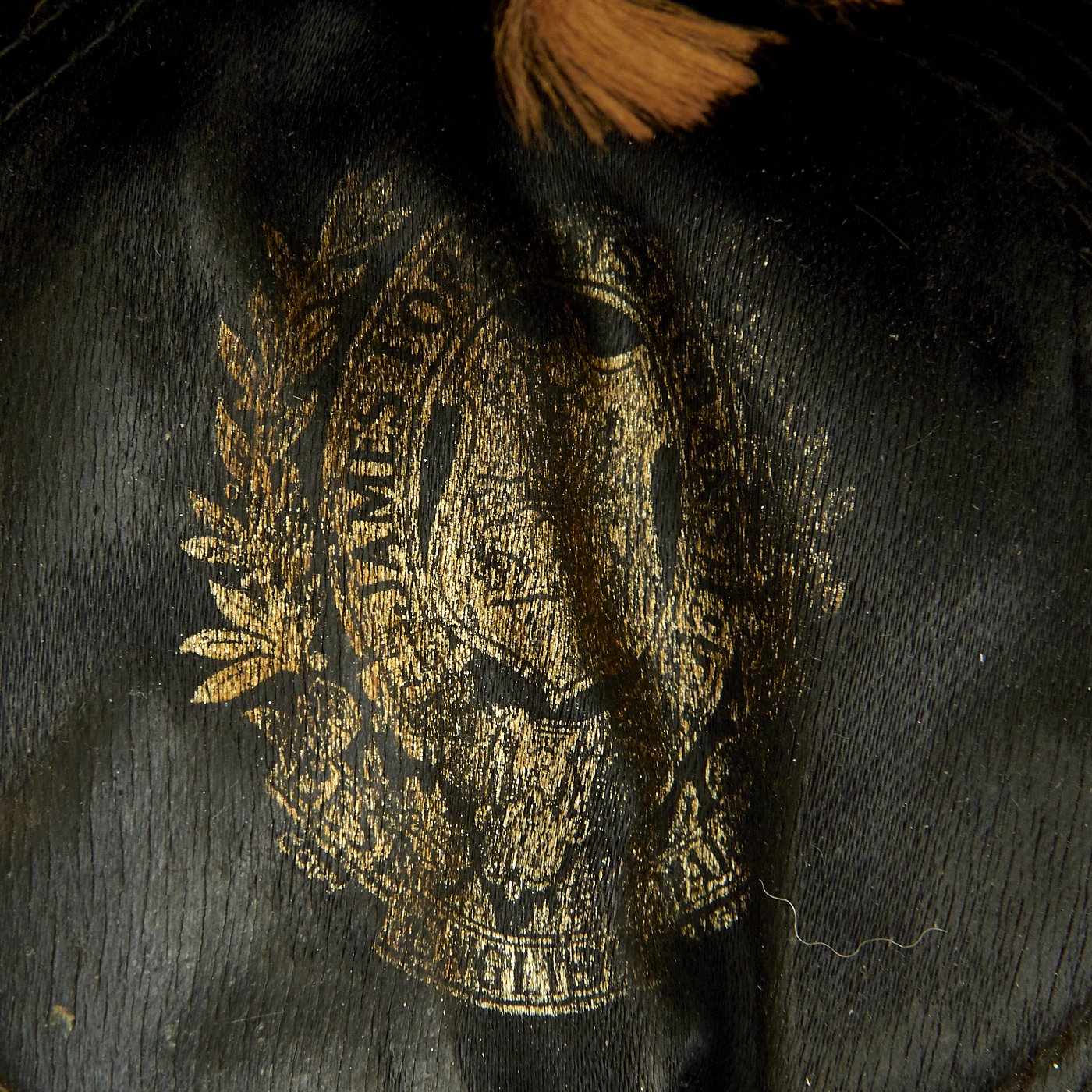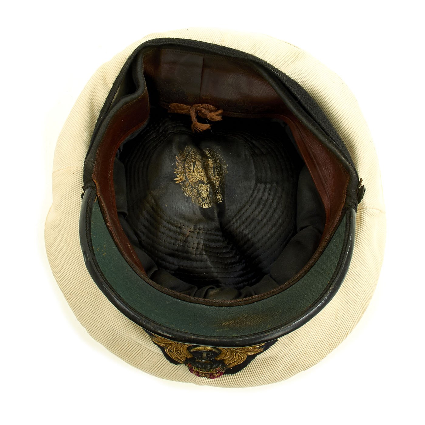 The interior crown of the cap has a faded gold makers mark that reads: