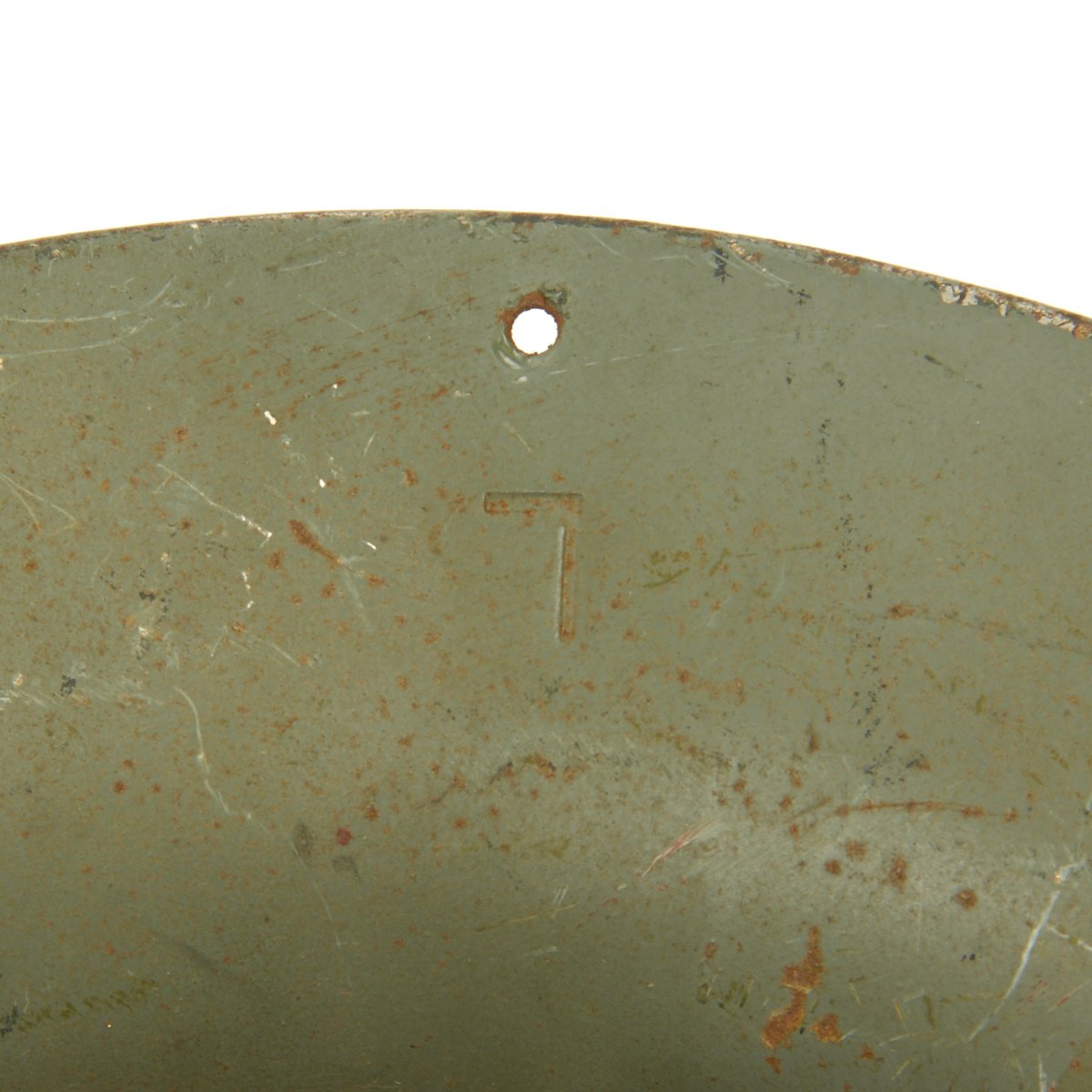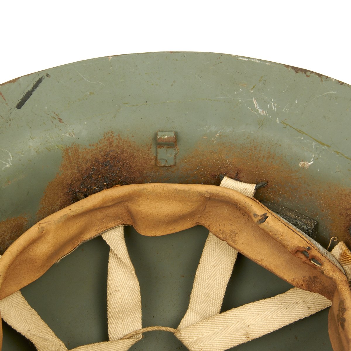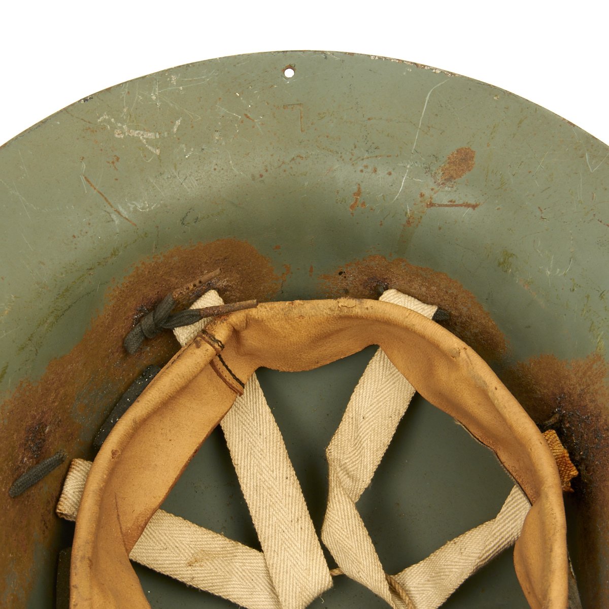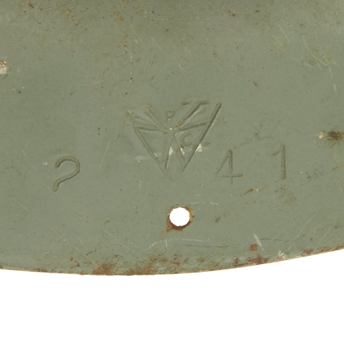 It is in good condition with original paint and liner. The liner and attachment cord are in decent condition, though the chin strap is unfortunately absent. The Liner is marked C.C. & S. LTD / SIZE 7 1/4 / 1941, and has had some of the rubber pads degrade over time. Also the liner attachment string has mostly rotted out due to moisture or a reaction with the steel. A nice example of home front headgear from the blitz!