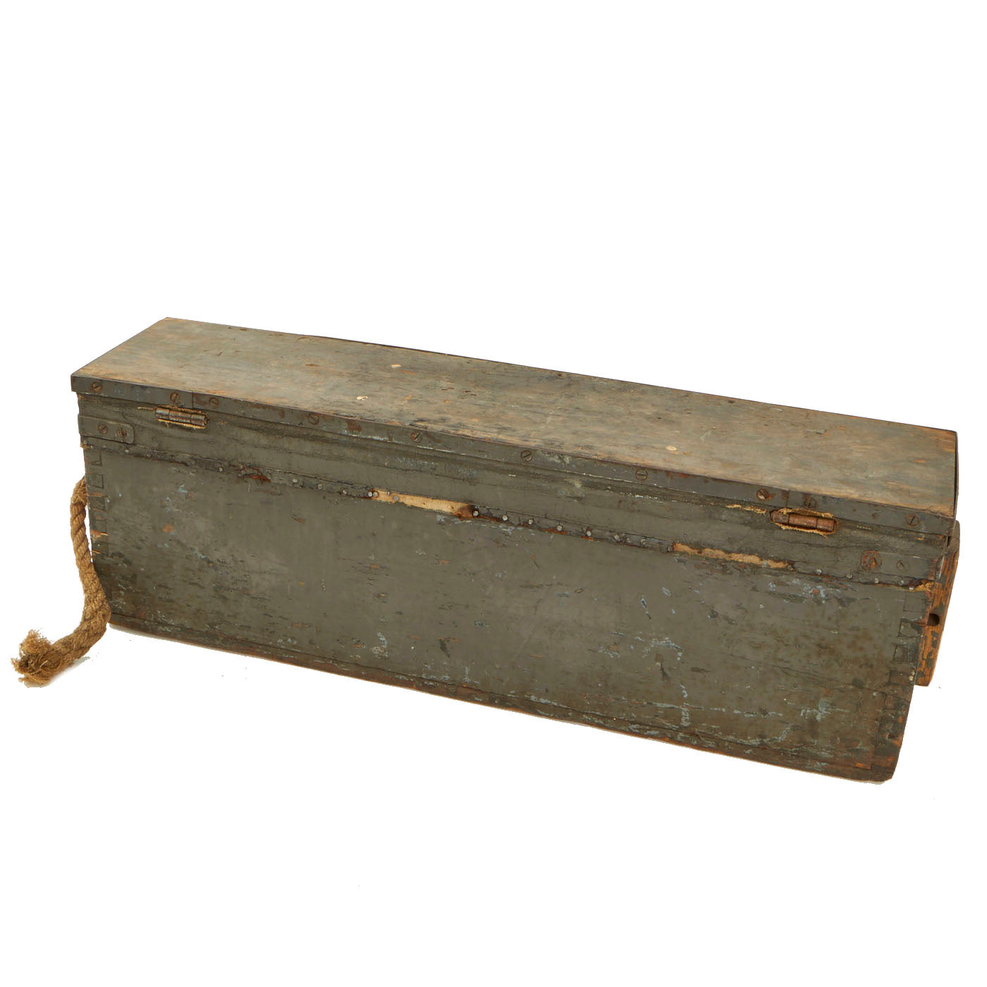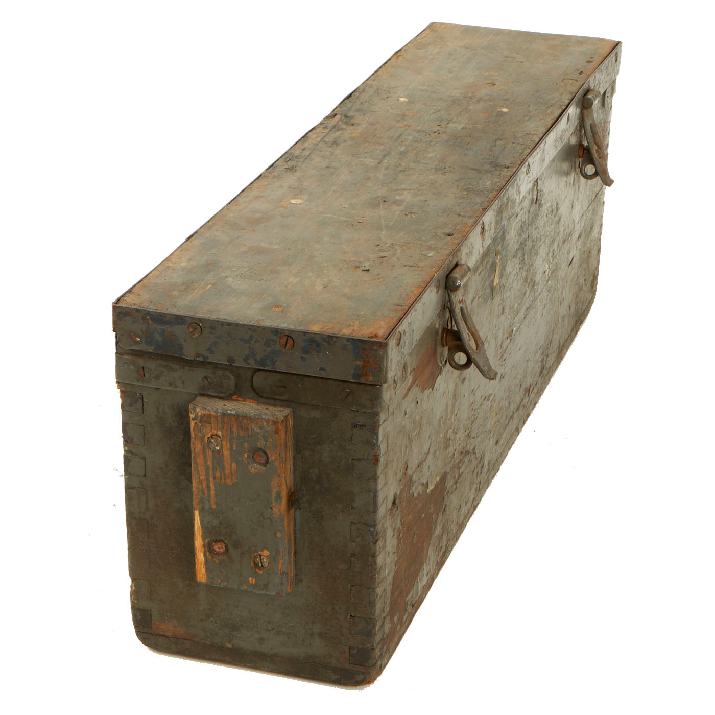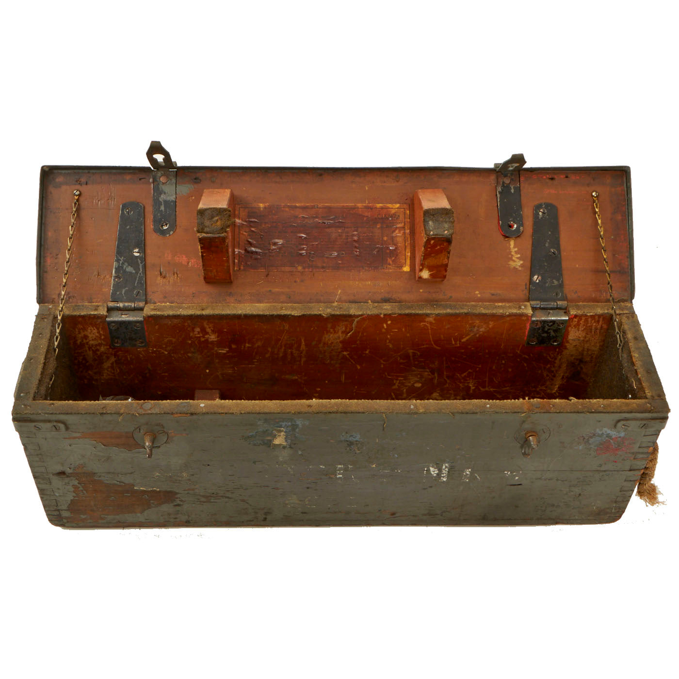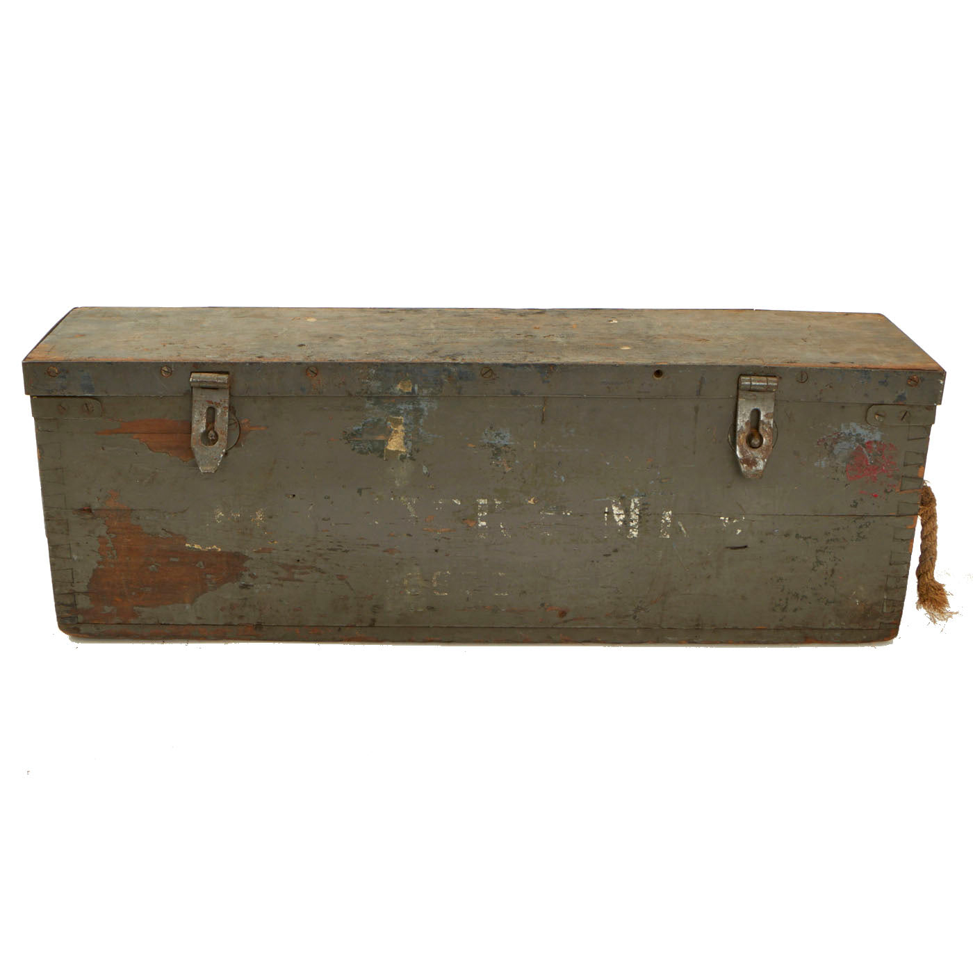 - Two Mortar Bomb Ammunition Chests. Both Dated 1943. Both retain their original paint, with stenciled markings in yellow. Original paper labels are still affixed to either box as well. Both boxes were intended to carry eighteen mortar bombs in cardboard tubes.
