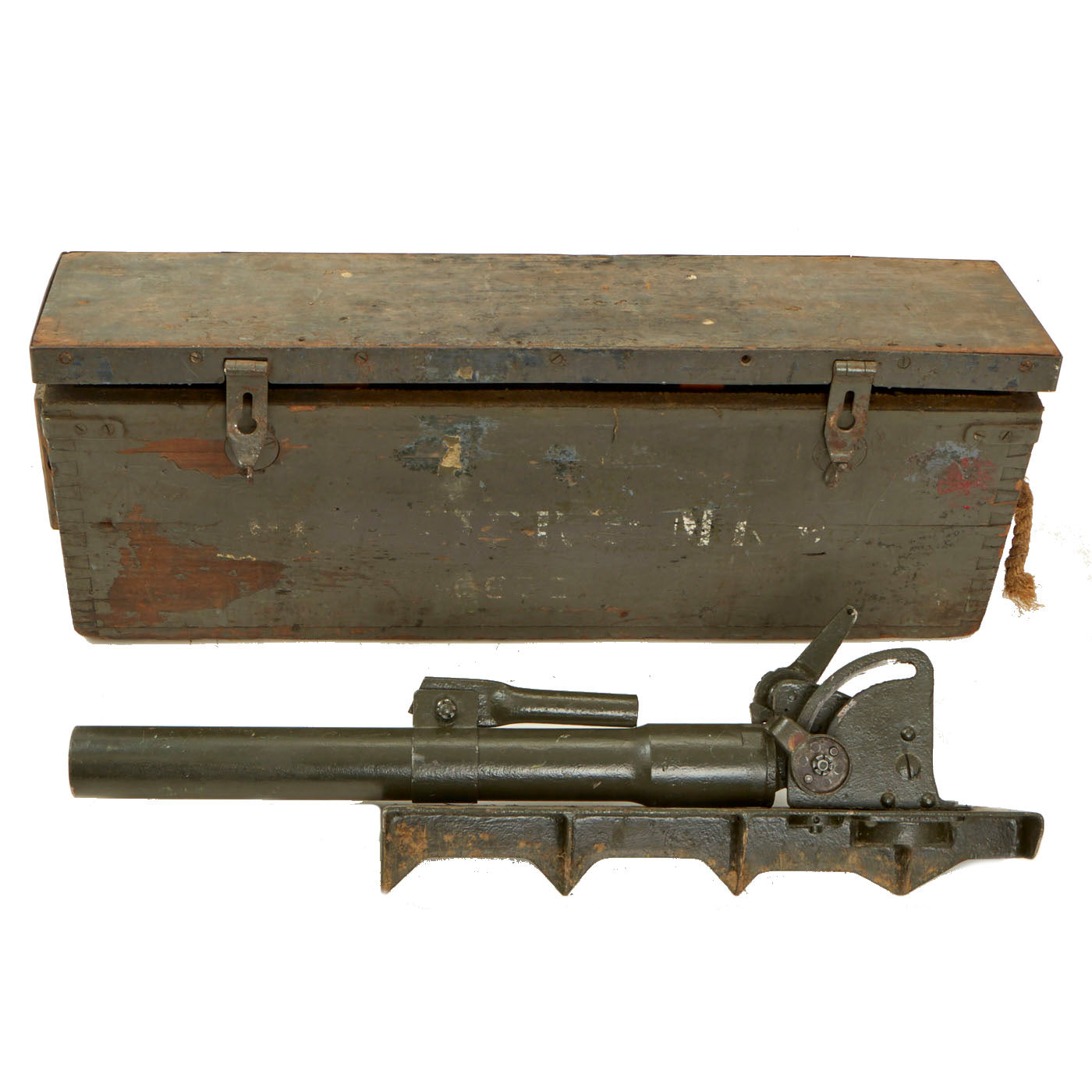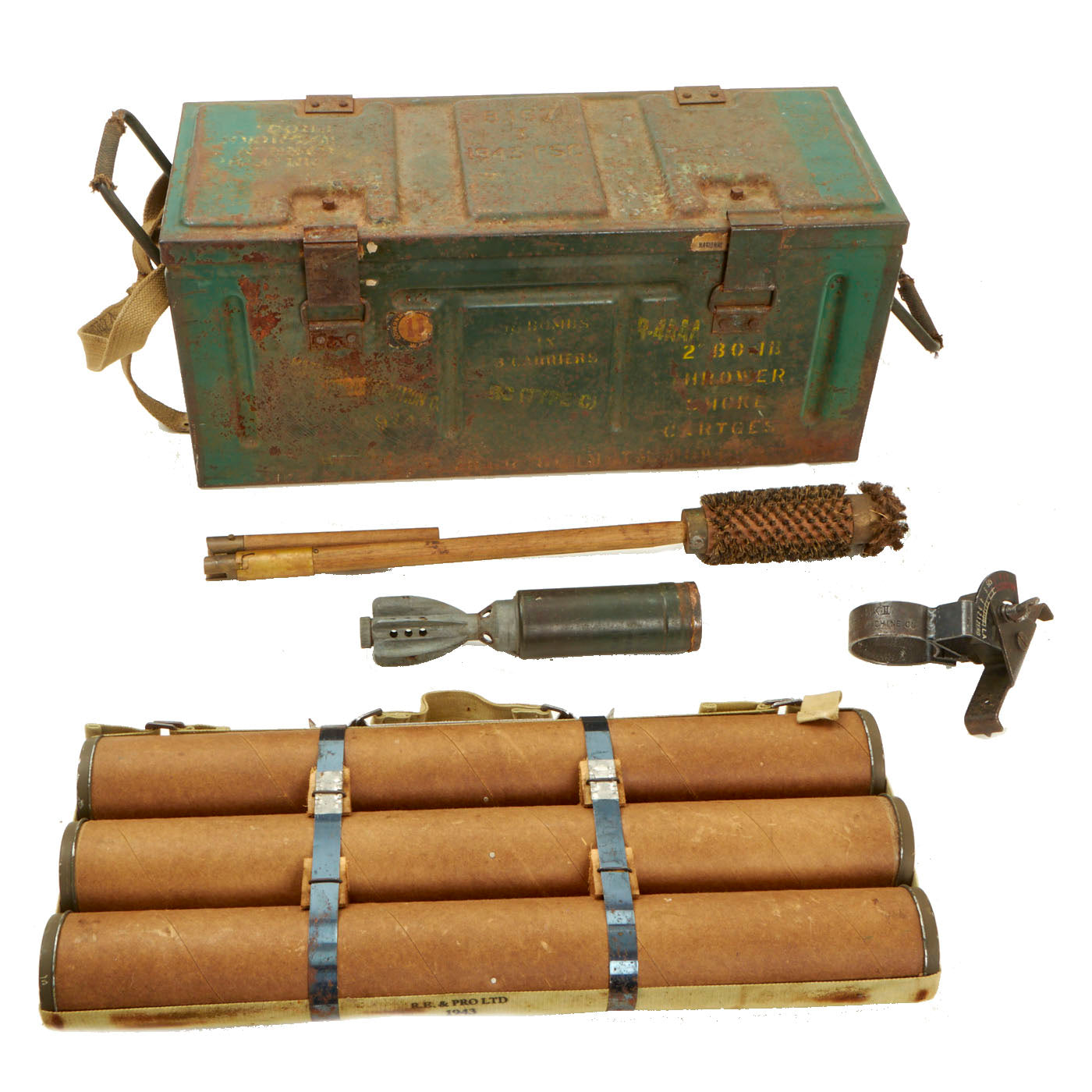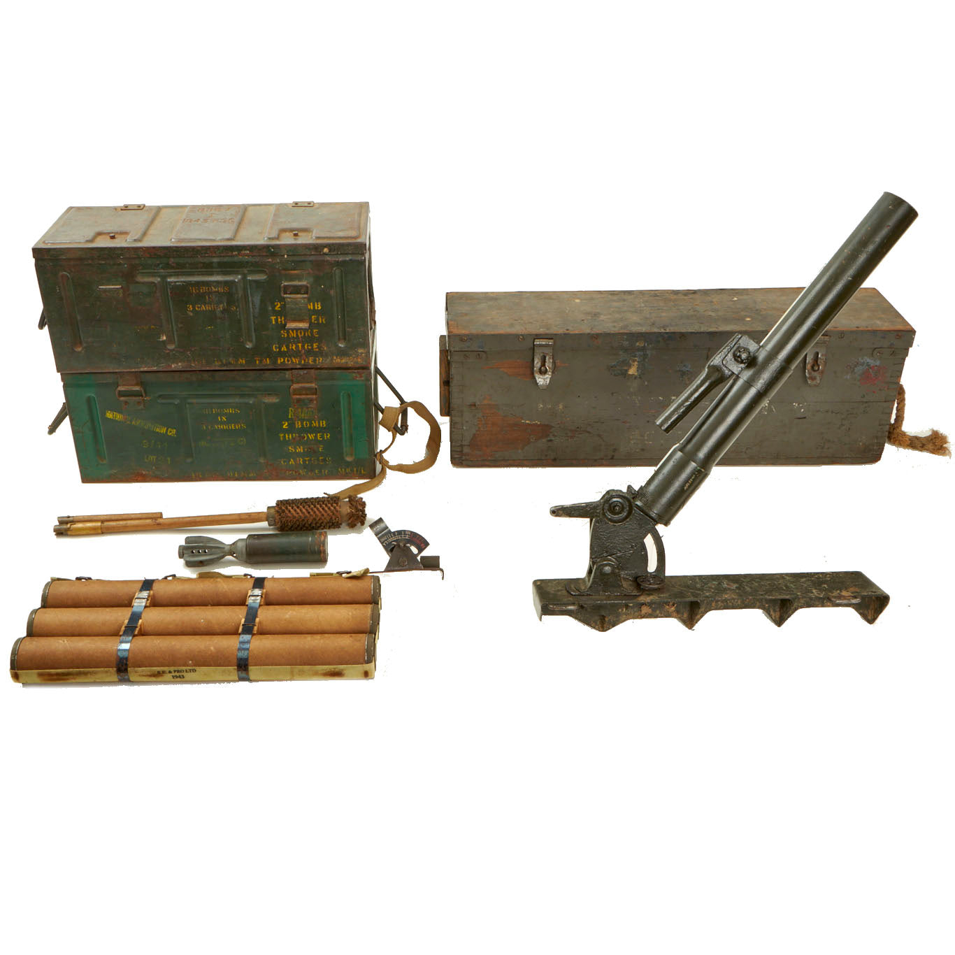 Original Items: Only Ones Available. An outstanding WWII British Mark II 2-Inch Mortar with a plethora of Original wartime accessories! This is the first 2-Inch Mortar of this particular type we have had the pleasure of offering!