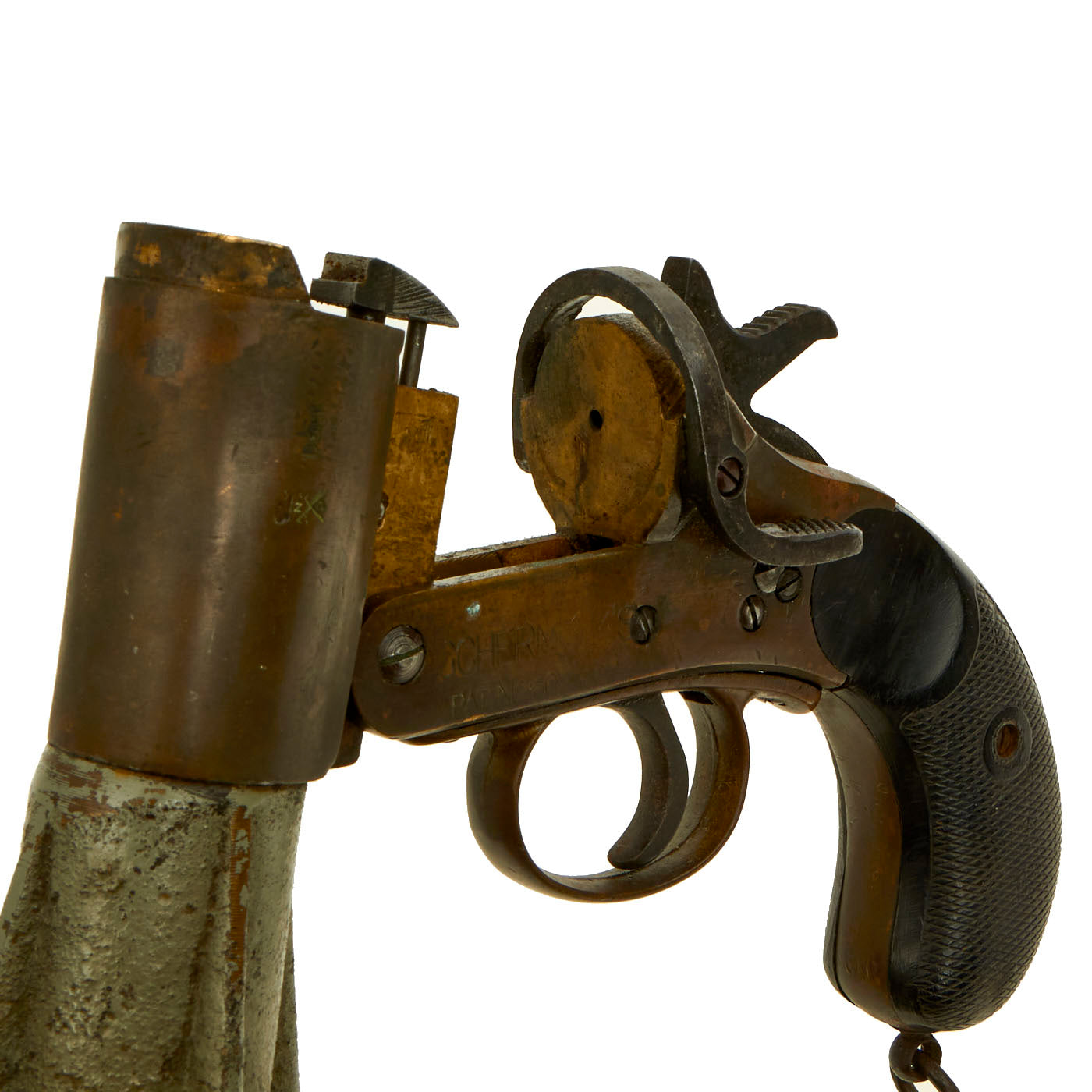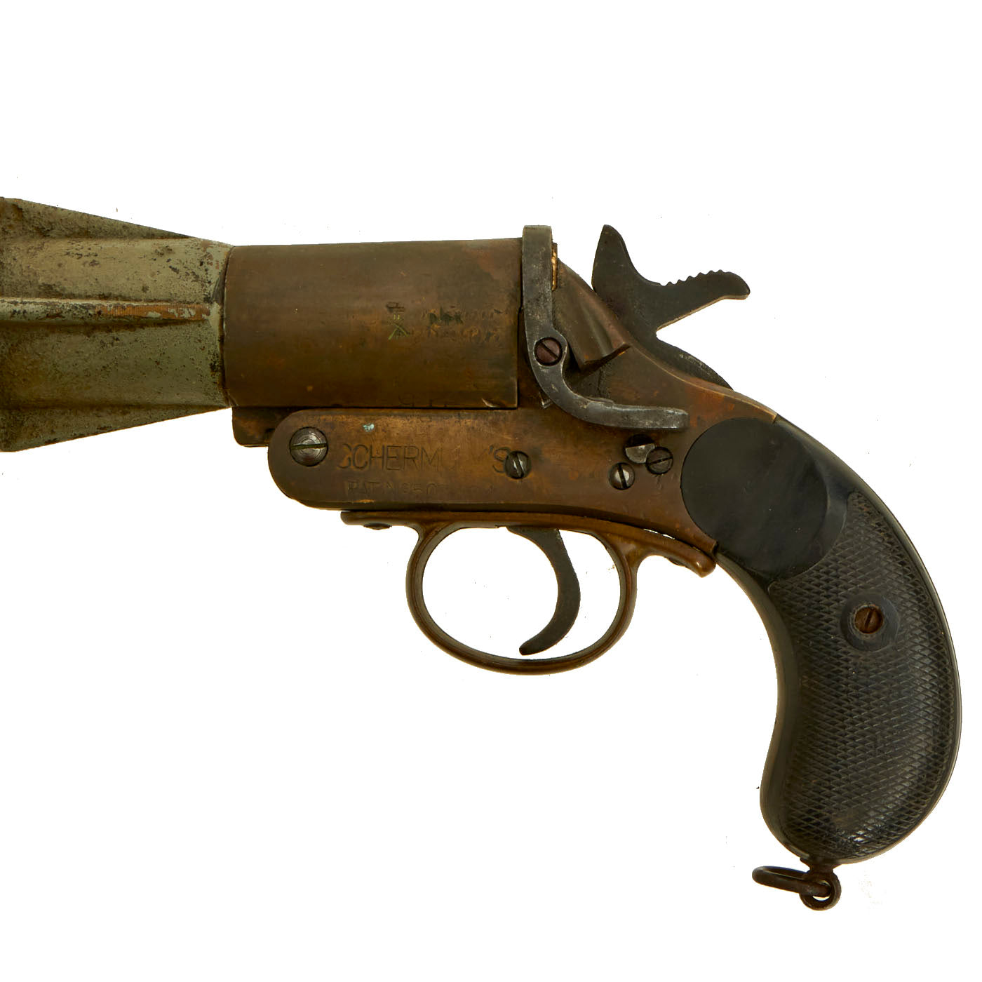 Original Items: Only one set available. William Schermuly 1857-1929 was one of the fathers of modern rocketry. He had served aboard vessels at sea and knew of how many lives were lost each year due to shipwrecks. He invented several different line throwing devices, some of which were used in WWI for such things as throwing telephone lines from trench to trench while under fire. But, the British Admiralty still didn’t see a need for his line throwers. Finally, he came up with a design that was small, easily aimed and fired, accurate and simple to use – the Schermuly Rocket Pistol Apparatus. In 1929, just 19 days before he died, the Admiralty made it compulsory for all vessels over 500 tons to carry line throwers. It was so successful that in 1938, a new act made it a requirement for all ships over 80 tons or 50 feet in length.