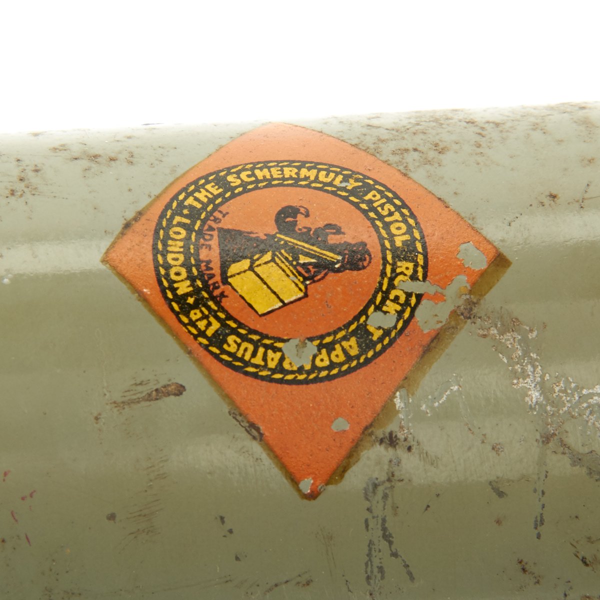 Original Items: Only one set available. William Schermuly 1857-1929 was one of fathers of modern rocketry. He had served aboard vessels at sea and knew of how many lives were lost each year due to shipwrecks. He invented several different line throwing devices, some of which were used in WWI for such things as throwing telephone lines from trench to trench while under fire. But, the British Admiralty still didn’t see a need for his line throwers. Finally, he came up with a design that was small, easily aimed and fired, accurate and simple to use – the Schermuly Rocket Pistol Apparatus. In 1929, just 19 days before he died, the Admiralty made it compulsory for all vessels over 500 tons to carry line throwers. It was so successful that in 1938, a new act made it a requirement for all ships over 80 tons or 50 feet in length.