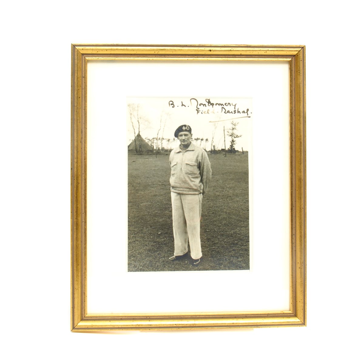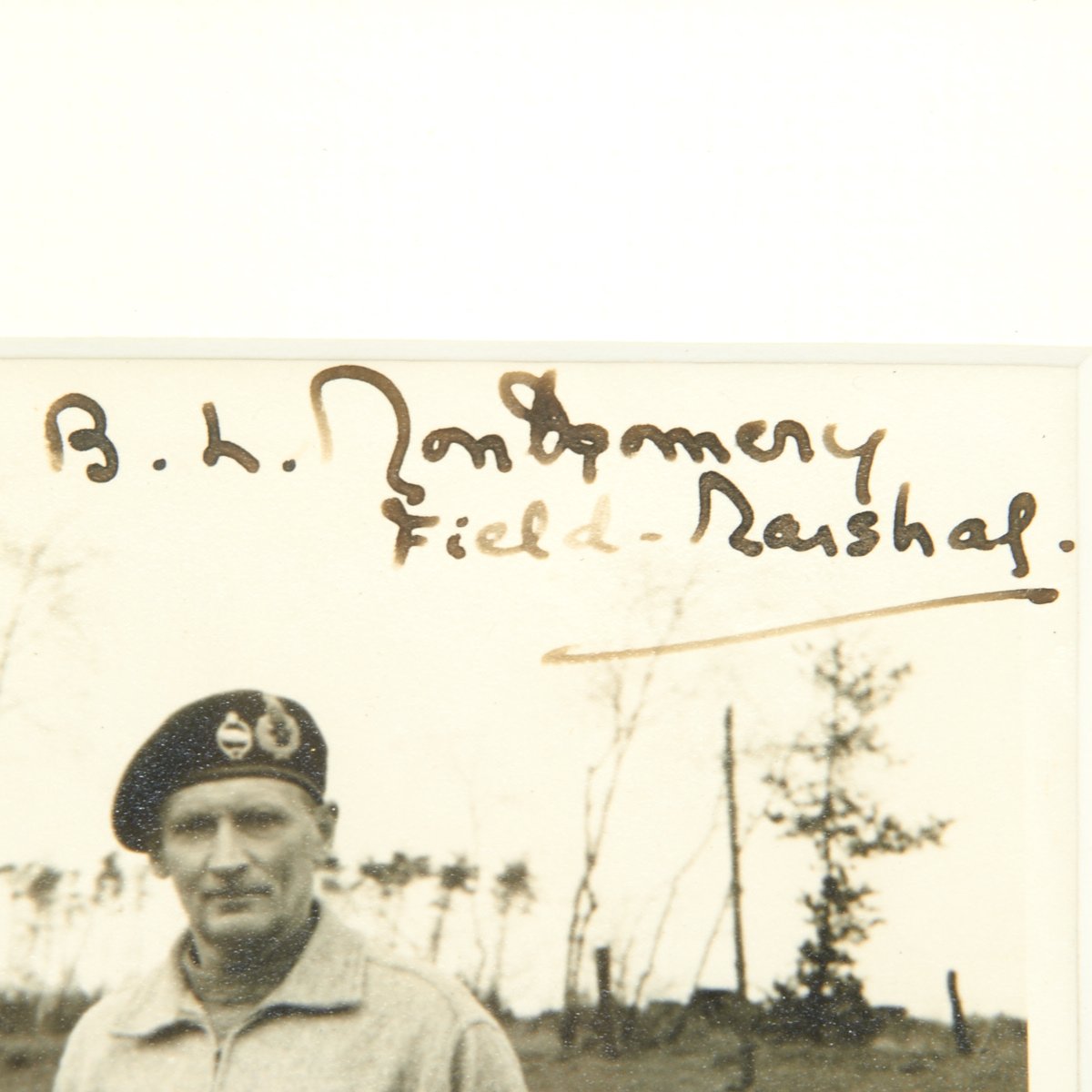 Original item: One of a Kind. This is a WW2 photograph of the great British Field Marshal BERNARD LAW MONTGOMERY, perhaps Great Britain's most loved Army Commander of World War Two. The photograph itself measures 6 1/4" tall by 4 1/4" wide, and is mounted in a 10" by 8" glazed gold frame. The upper right corner is signed in ink: B. L. Montgomery / Field. Marshal..