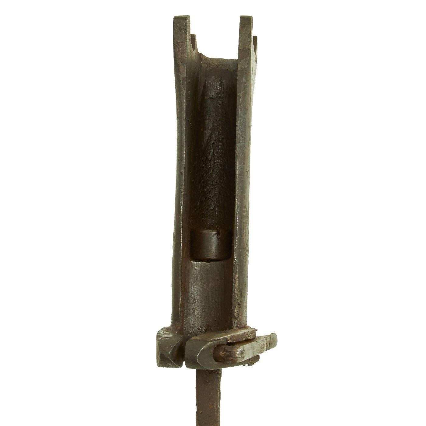 Most all were made with cast BRASS hilts but this example is made from 100% STEEL. Please see WATTS & WHITE THE BAYONET BOOK, Page 396 items 827 and 828. THIS IS NOT A REPLICA OR REPRODUCTION and is totally ORIGINAL, the first we have seen in some time.