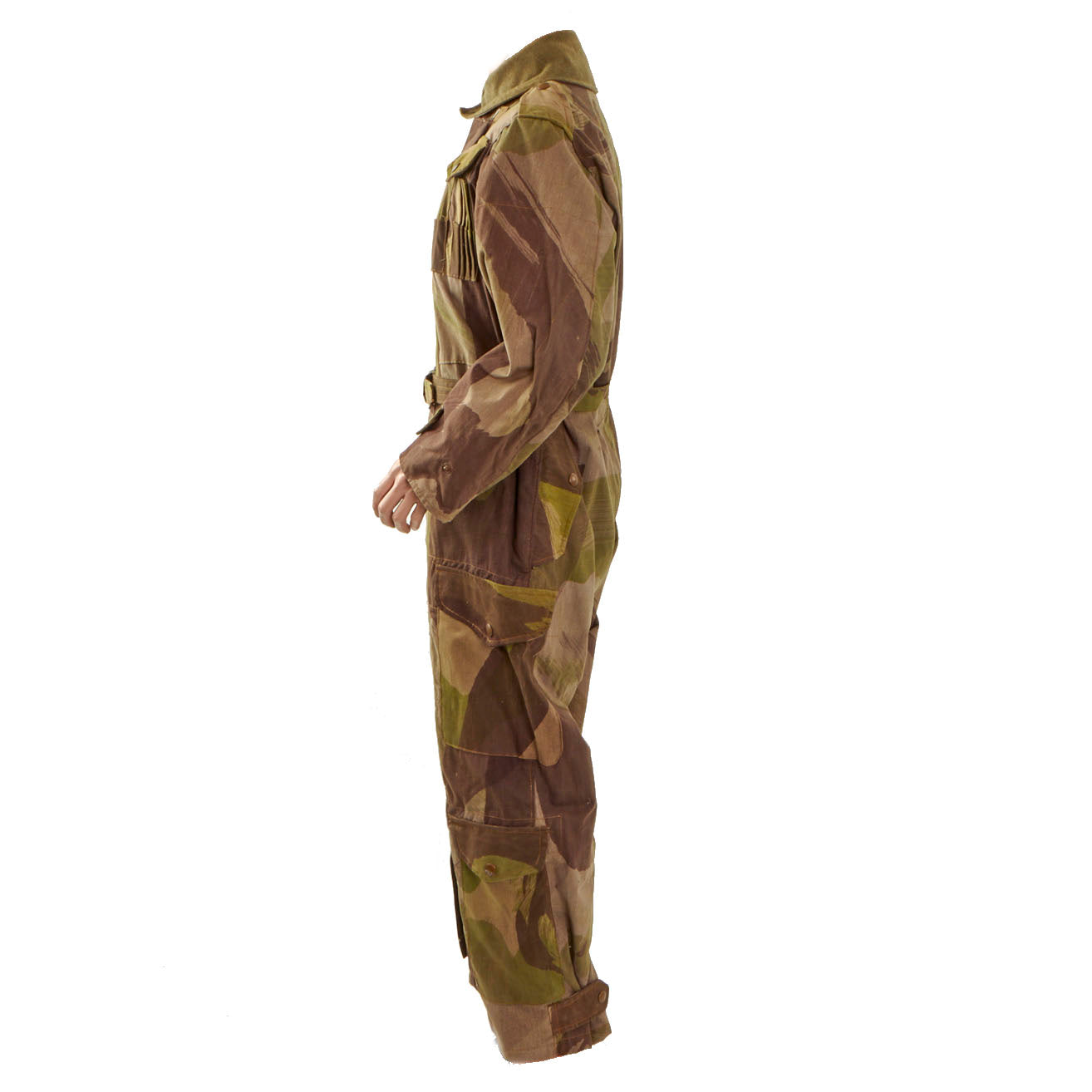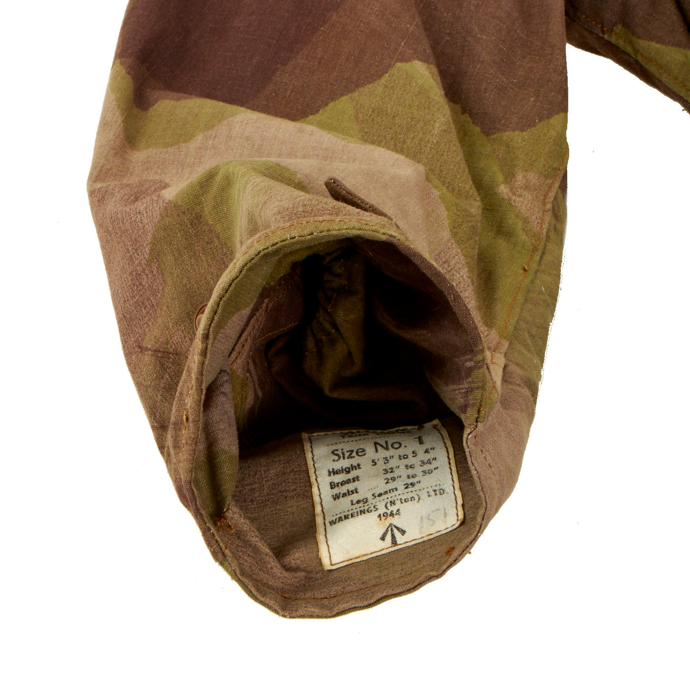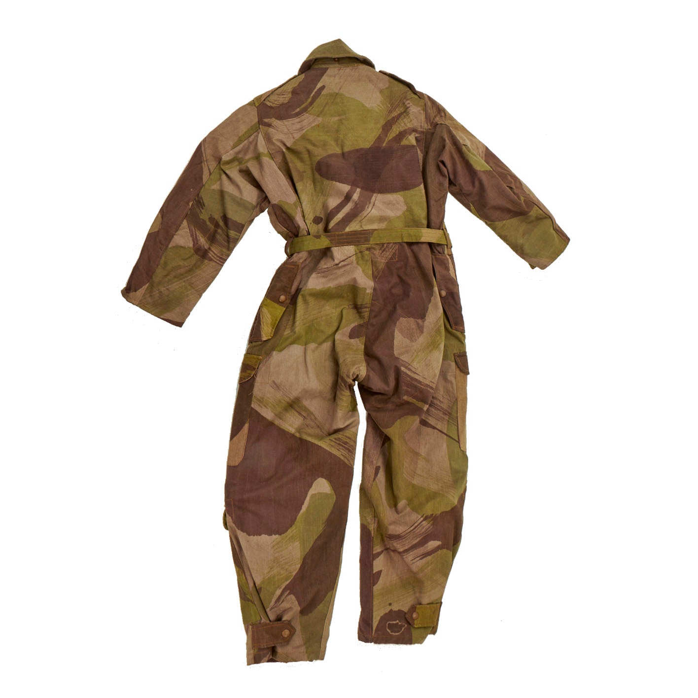 Original Item: Only One Available. This is an genuine 1944 Dated WWII British Tankers set of camouflage coveralls. This suit is in unbelievable condition and is 100% complete and without damage. It would appear that the suit was never even issued out. The right inside cuff has a data label with maker name (WAERINGS), broad arrow and 1944 date. Size 1.