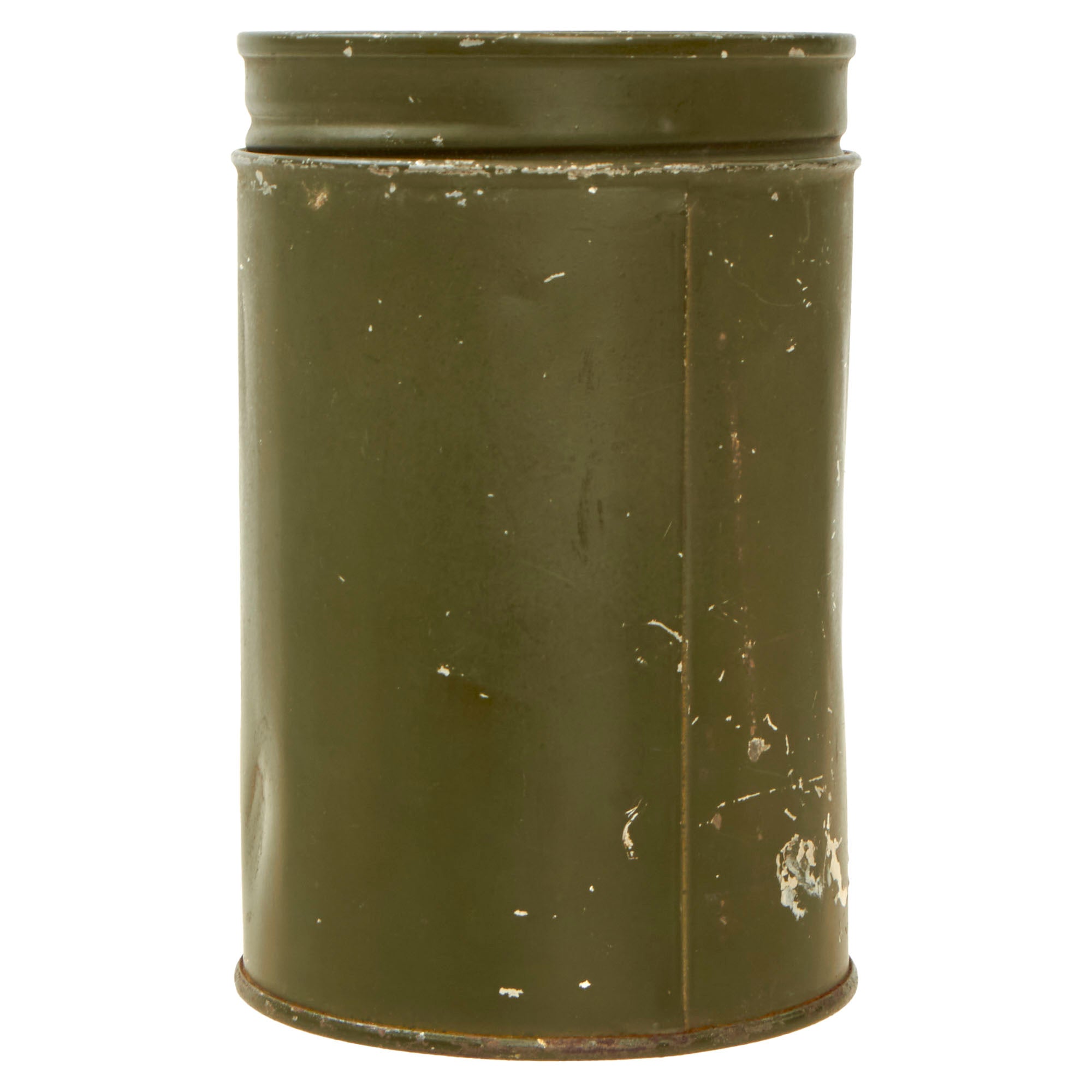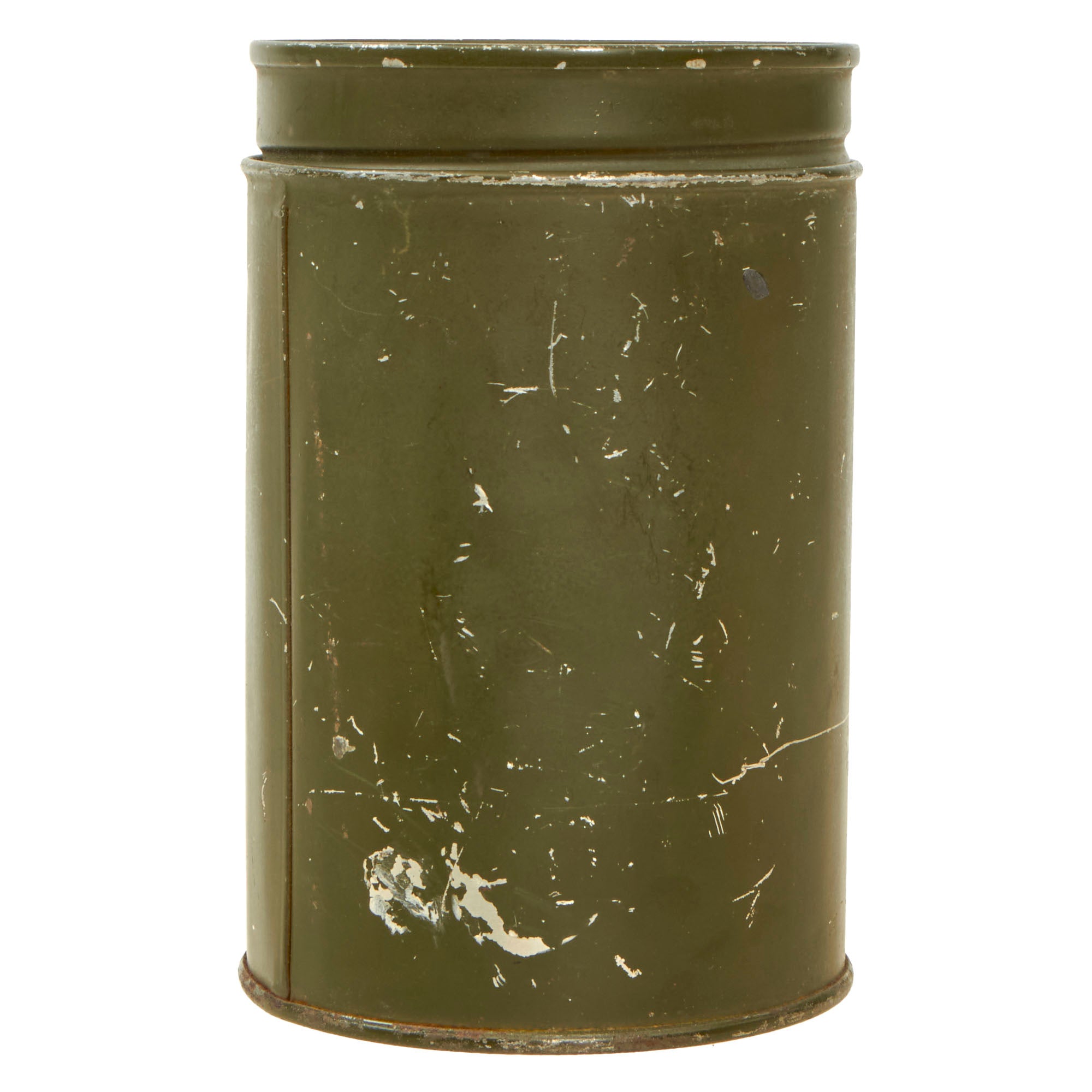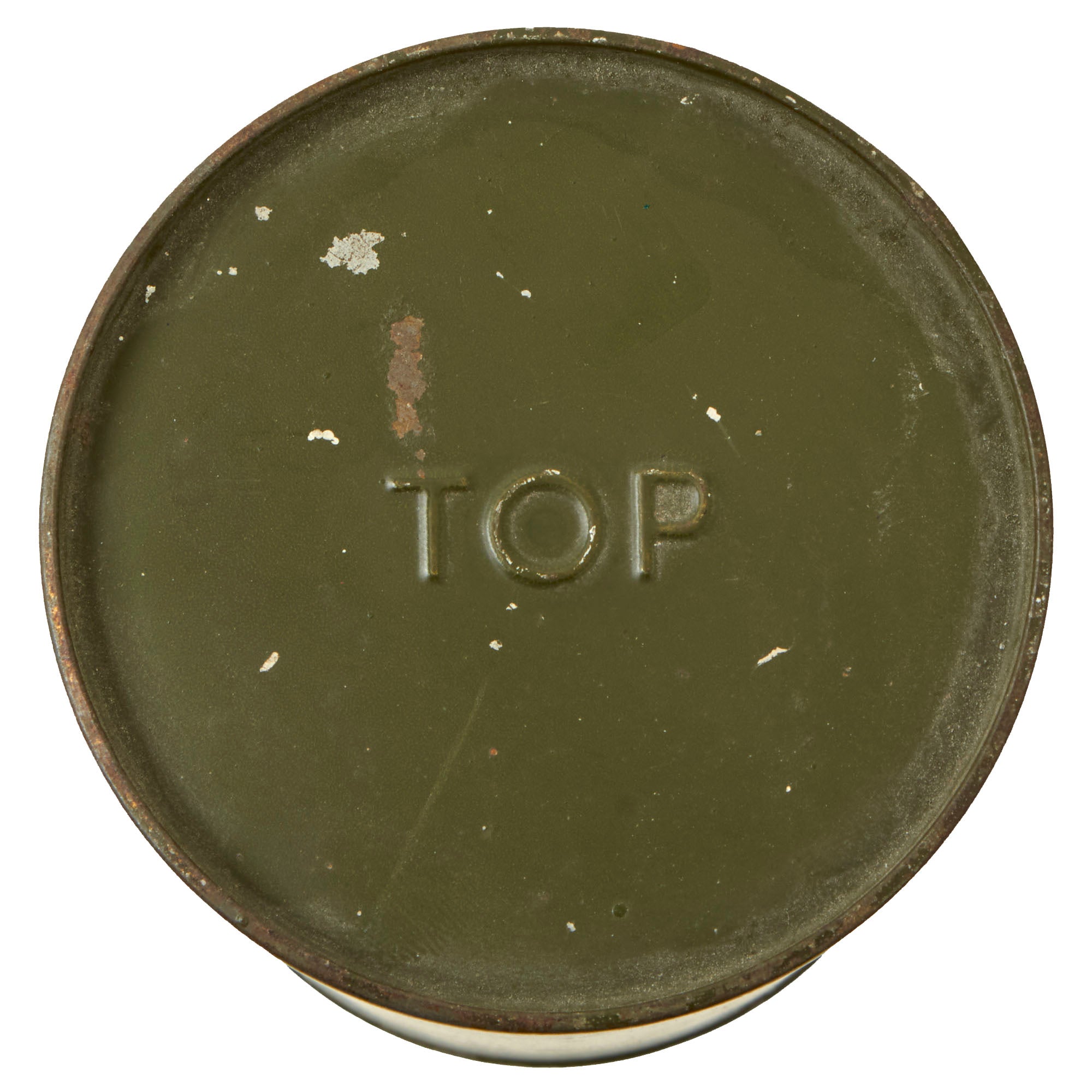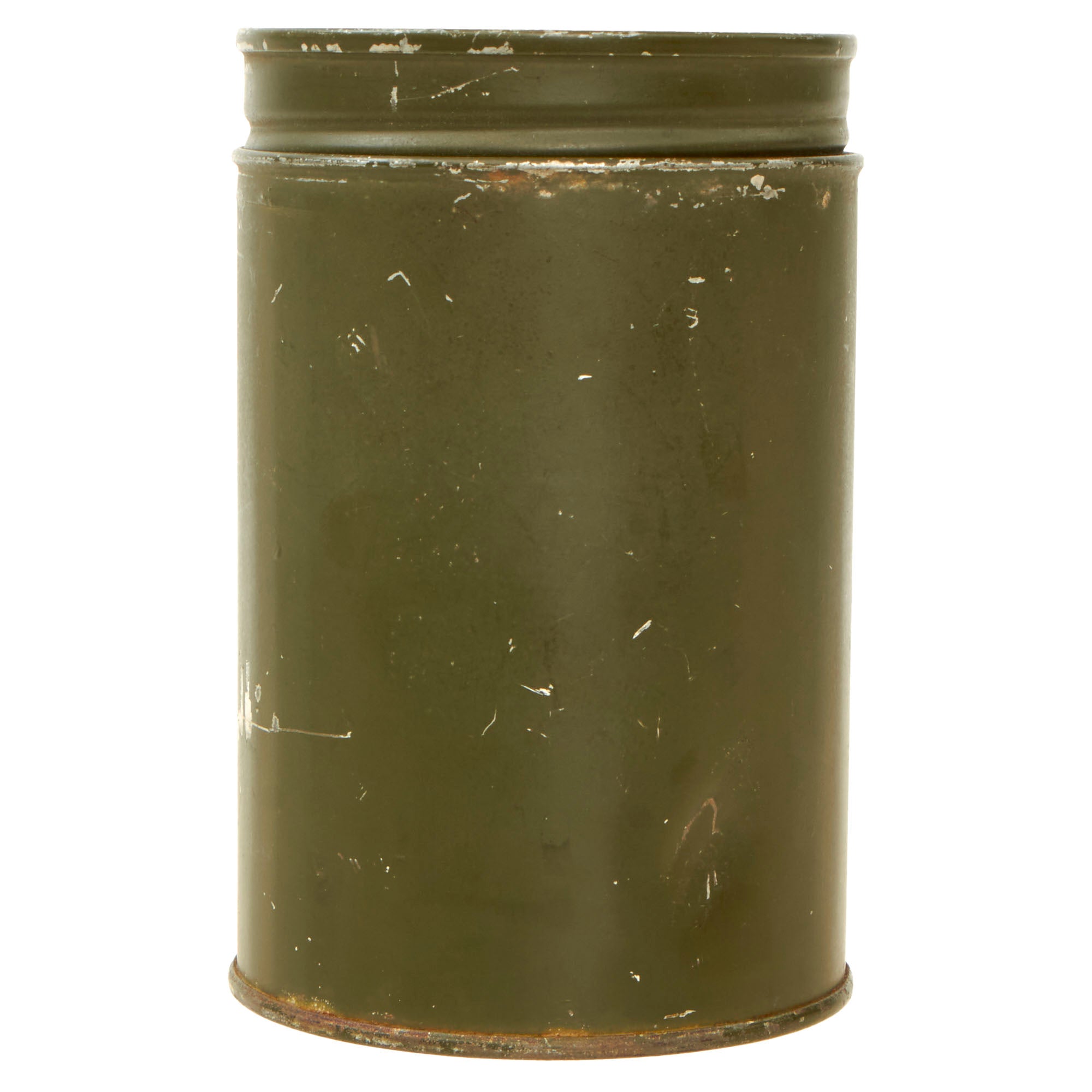 Original Item. Only One Available. A very niche piece of British WWII militaria, this is a “tent heater” dated 1945, a very portable heater with a mesh cover for the wick. The top of the can is marked, no doubt, so that it would be stored upright to prevent loss of the Parafin used to light it.
