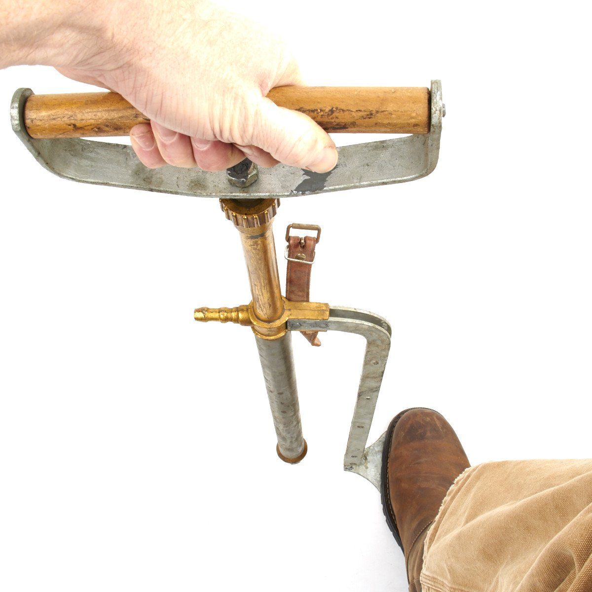 Simply constructed using the principal of a bicycle pump one only hopes these did some good during those trying times. Made from Wood, Steel, Brass and Rubber (some of which shows signs of perishing) these old pumps survived the blitz.