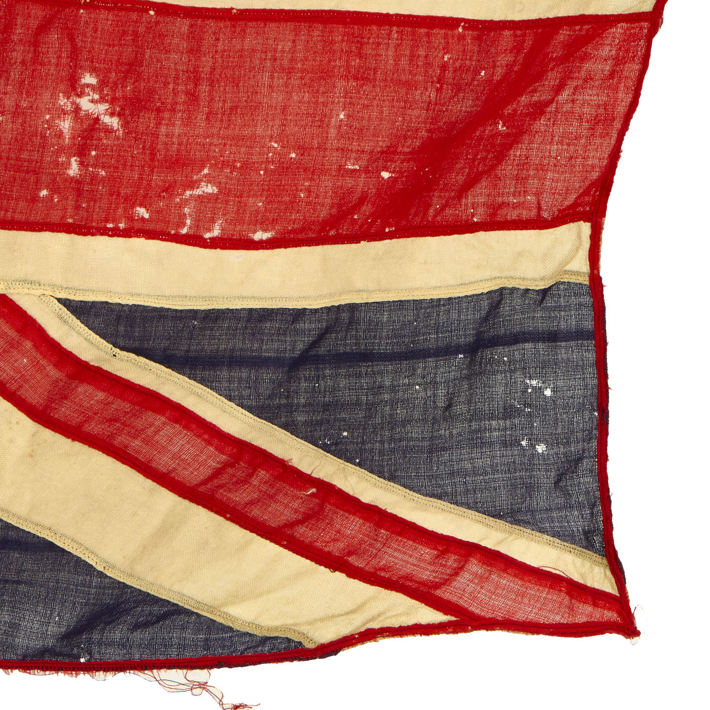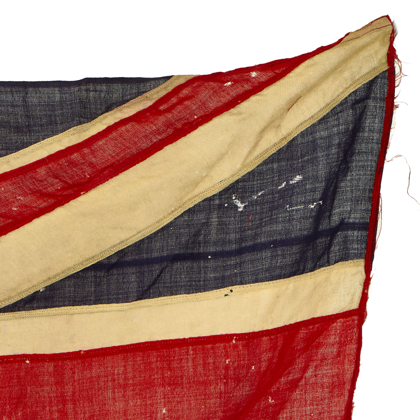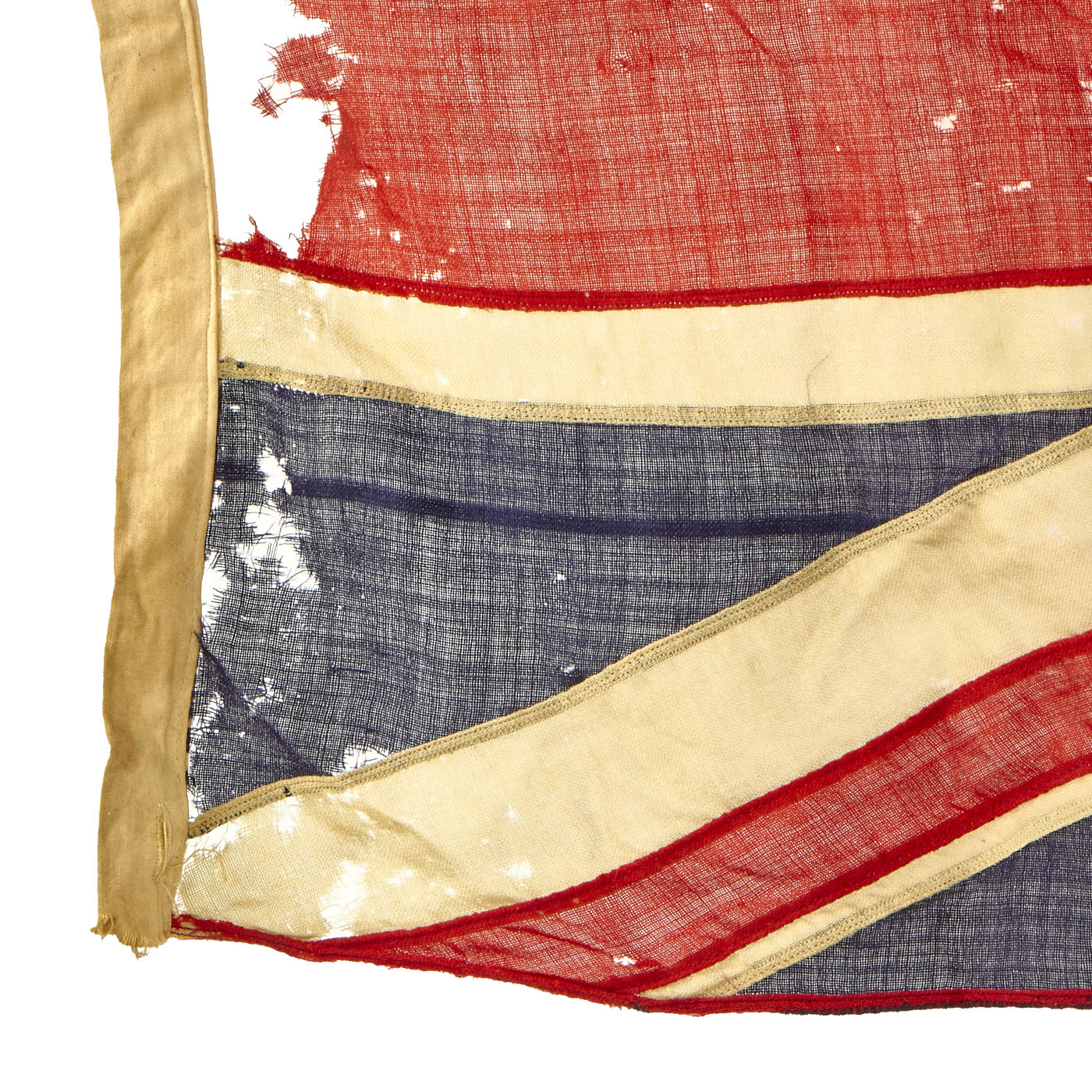 Original Item: Only One Available. This is a very nice Original British World War Two Union Jack Flag, measuring approximately 56" X 23 ½”. The flag header is marked, but this flag seems to have seen long service, so it was probably washed several times, which probably removed and faded the markings.