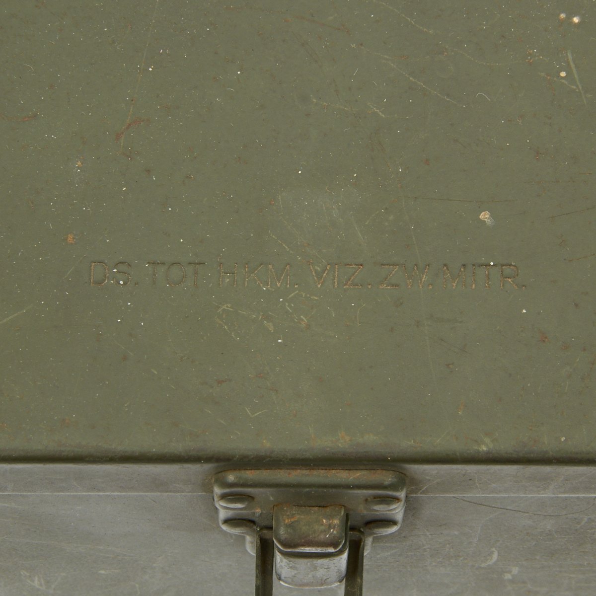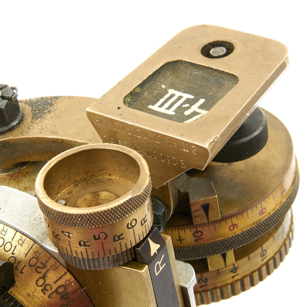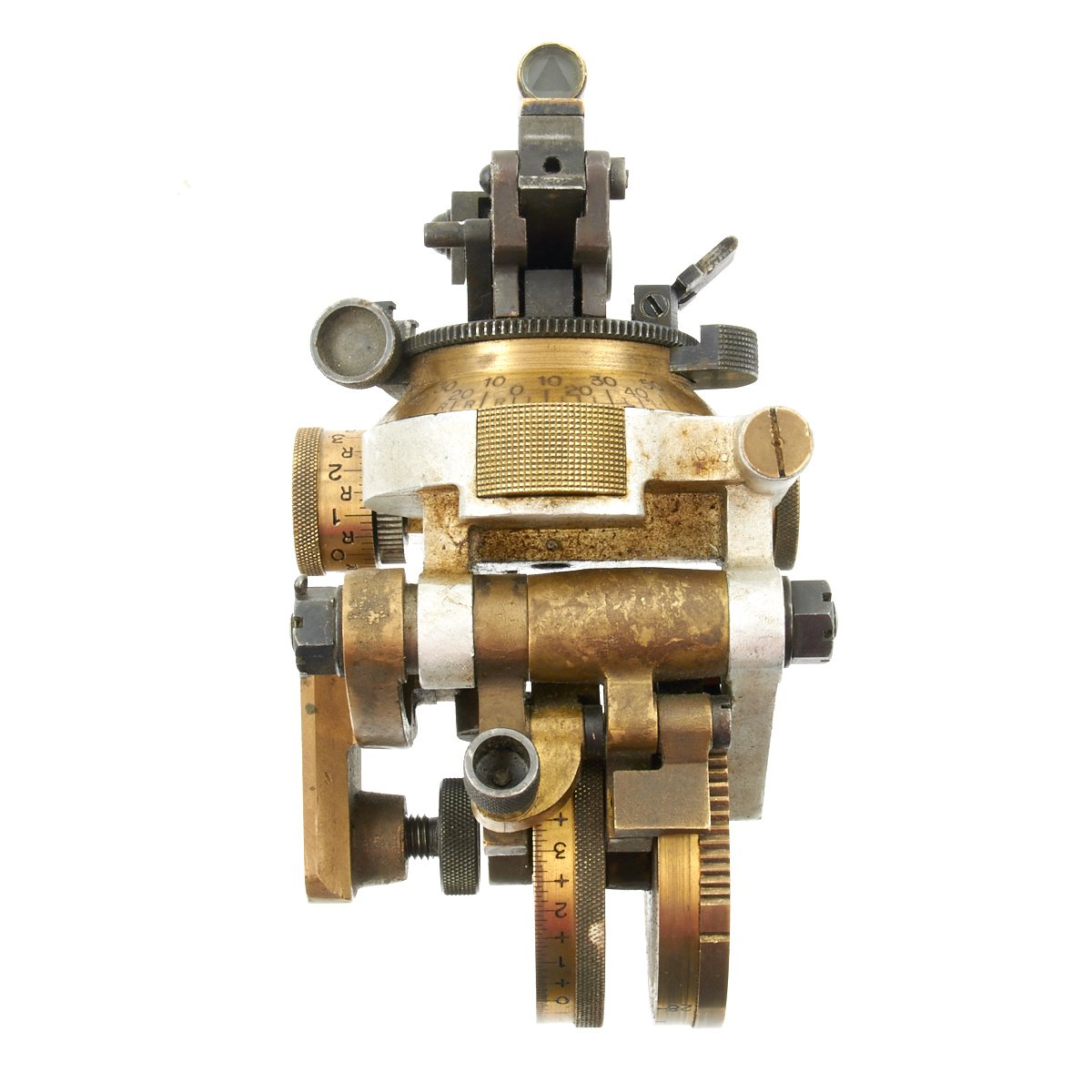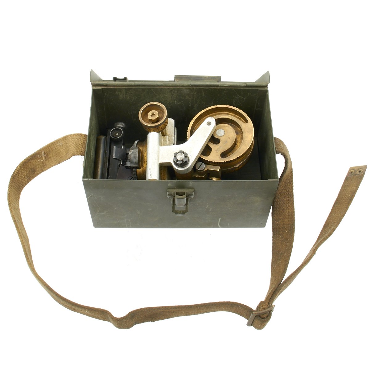 Original Item: Only One Available. Both officially adopted on April 4th. 1939 the Vickers Dial Sight Mark 1 and Mark 2 only differed in the material used in construction. The Mark 1 had a bronze dial and the Mark 2 a lighter Aluminum dial. This was considered the most versatile MG sight to date and each one was issued with an emergency level together with the sight itself in custom made steel transit chest.