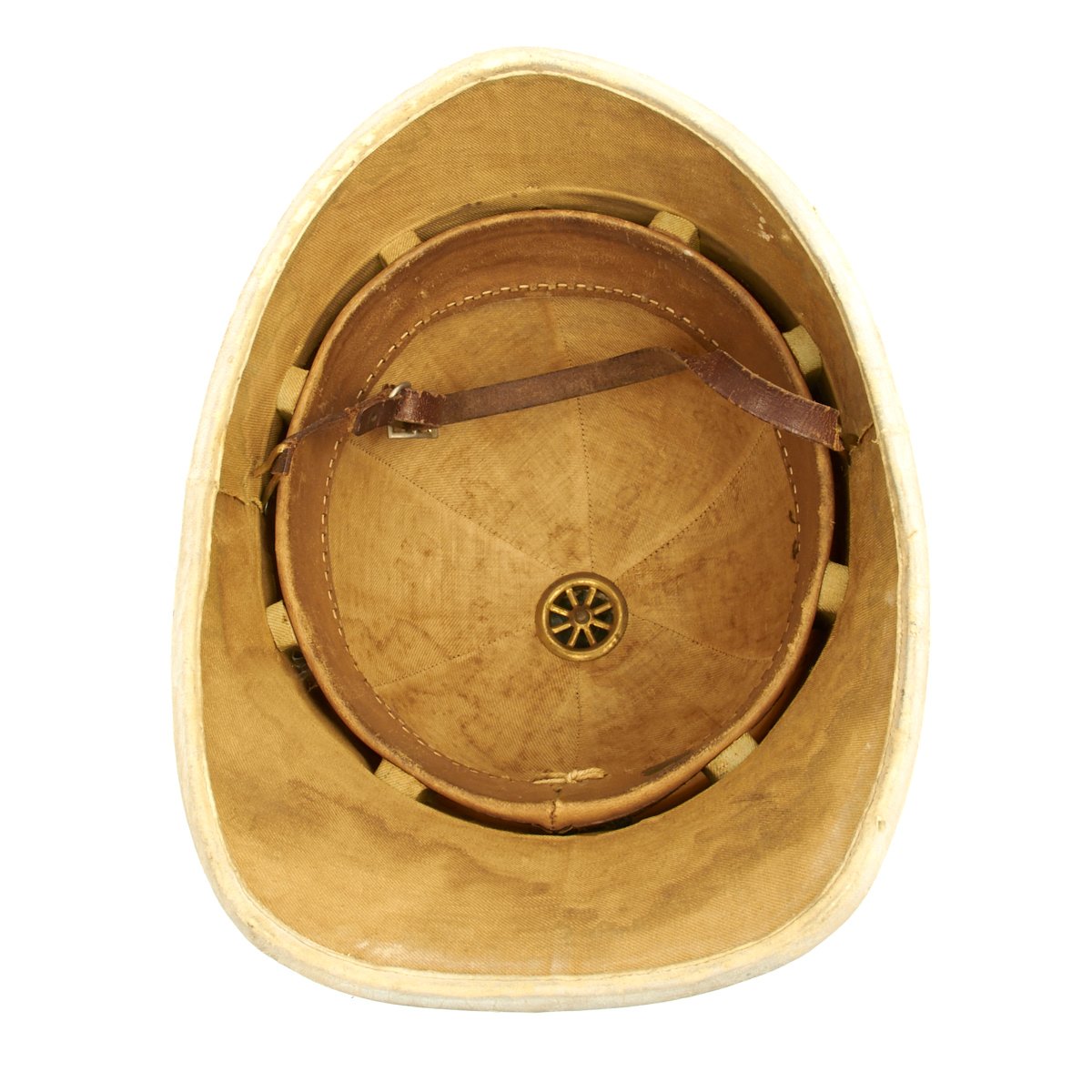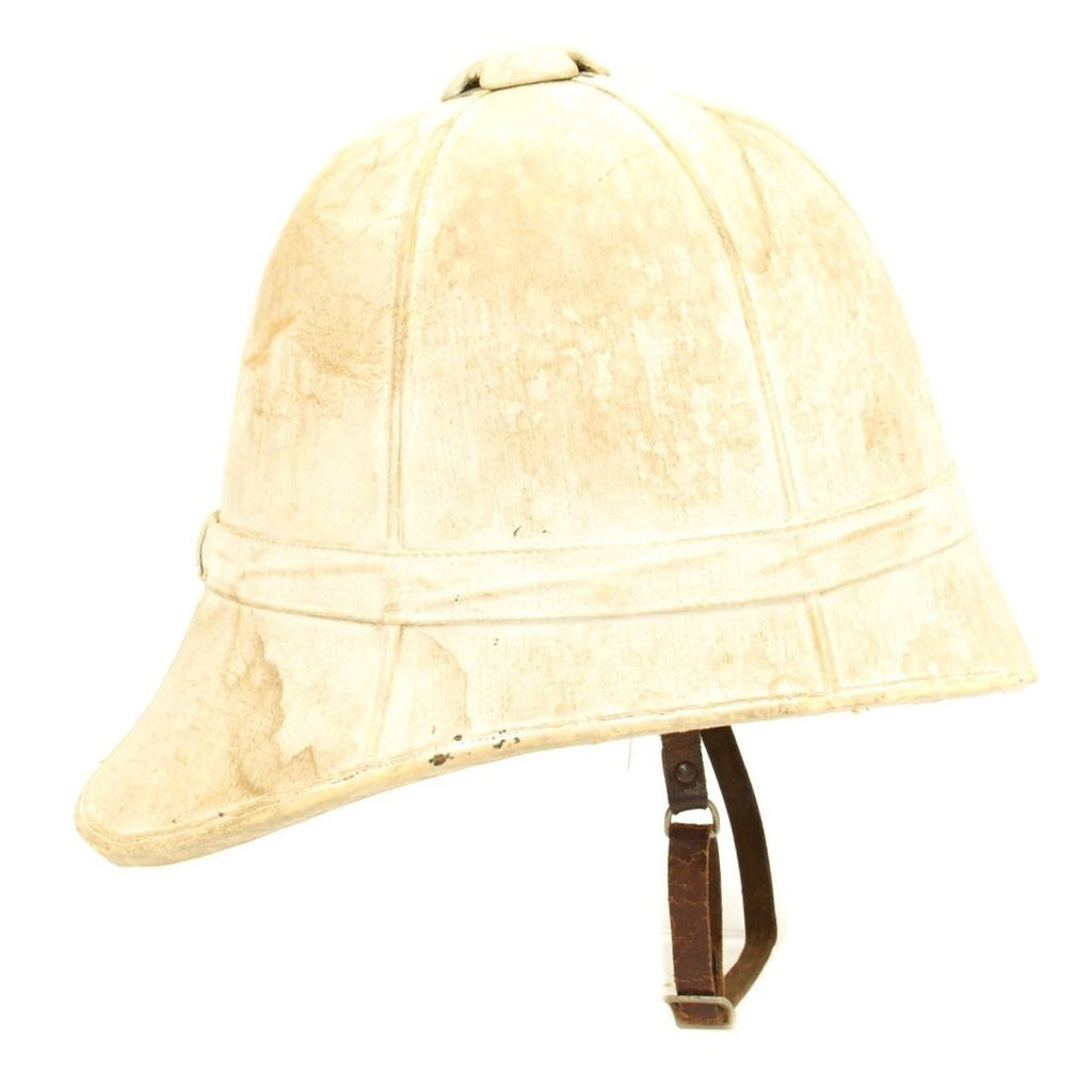Original Item: Only One Available. This is the "classic" pattern of British sun helmet of the latter decades of the 19th century. The sun - or "pith" - helmet originated in India around the time of the Mutiny, but was only officially adopted in 1877 for general use by the British Army for use by all ranks serving in tropical locations including India and Africa. Known as the Foreign Service Helmet the helmet was made of cork and covered in white cloth.